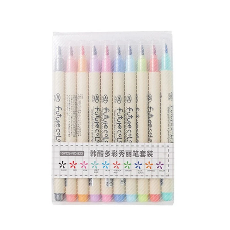 Comprar Juego de rotuladores de colores de pincel suave para dibujar letras, caligrafía, pintura, papelería, escuela, hogar, suministros de arte DIY, 10 piezas, A6805