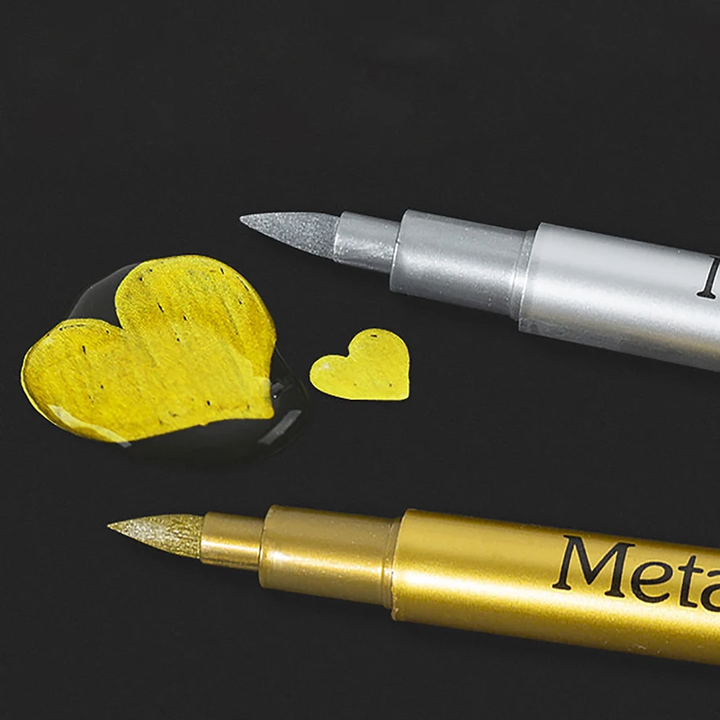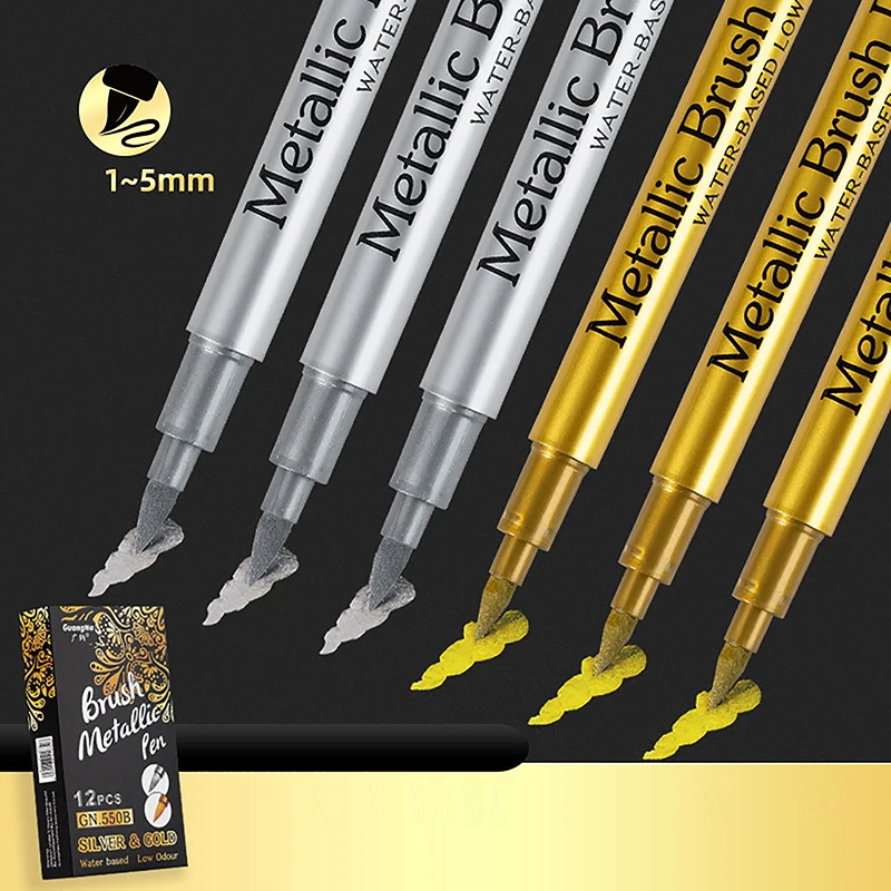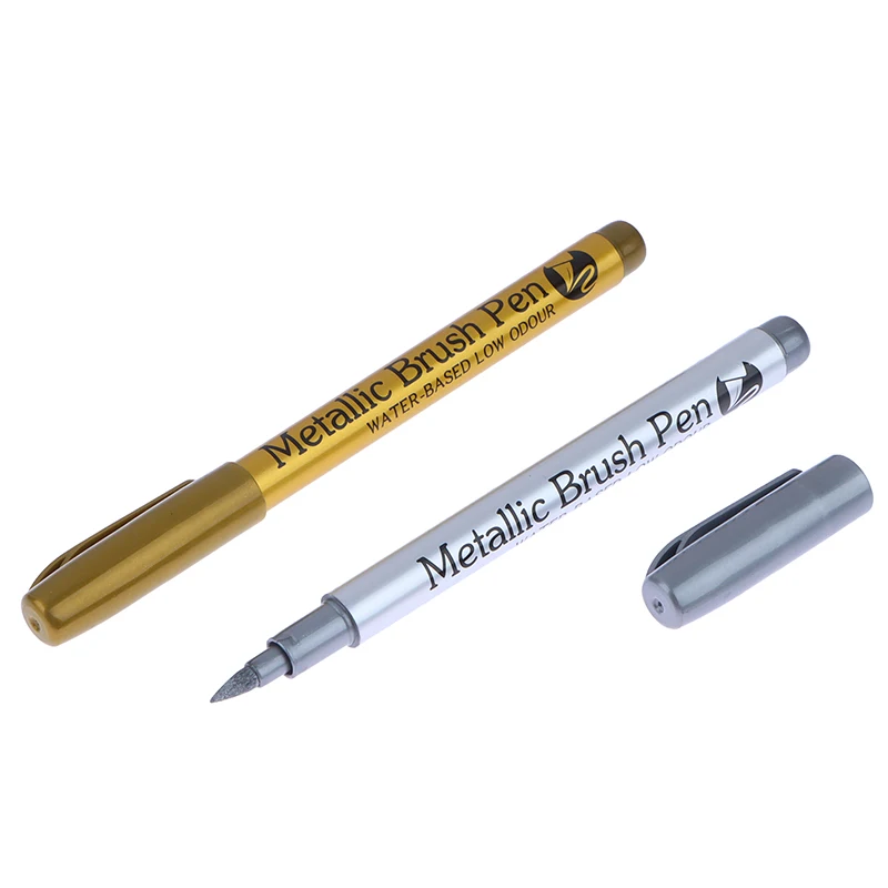 Comprar Juego de rotuladores metálicos de pincel, marcadores de arte permanentes dorados y plateados para ilustración de artista, manualidades, tela para álbum de recortes