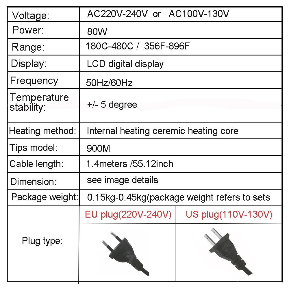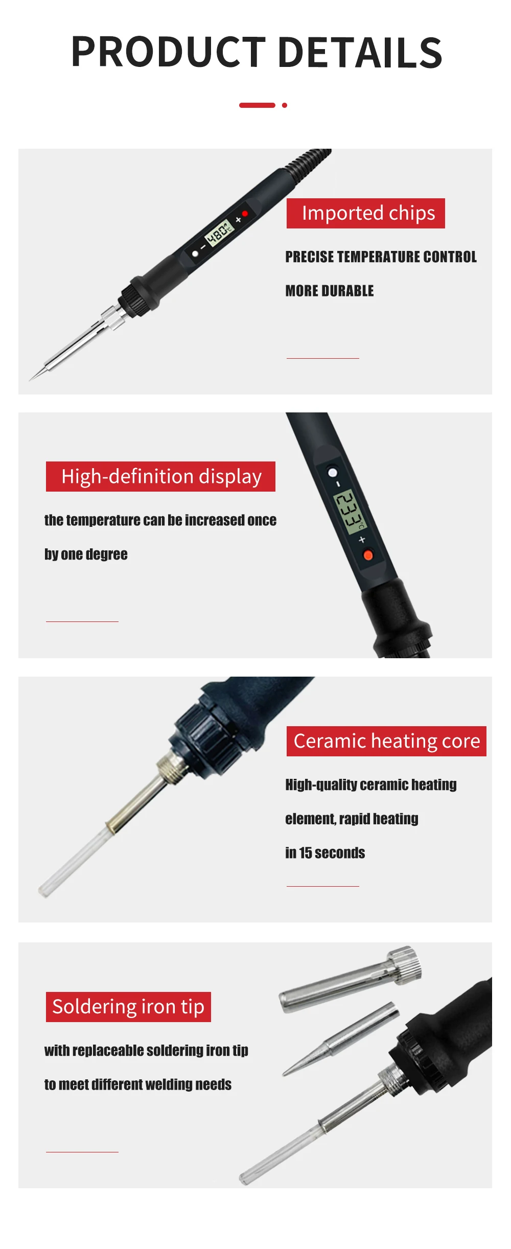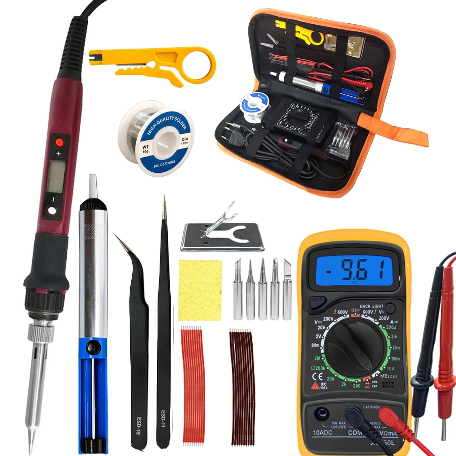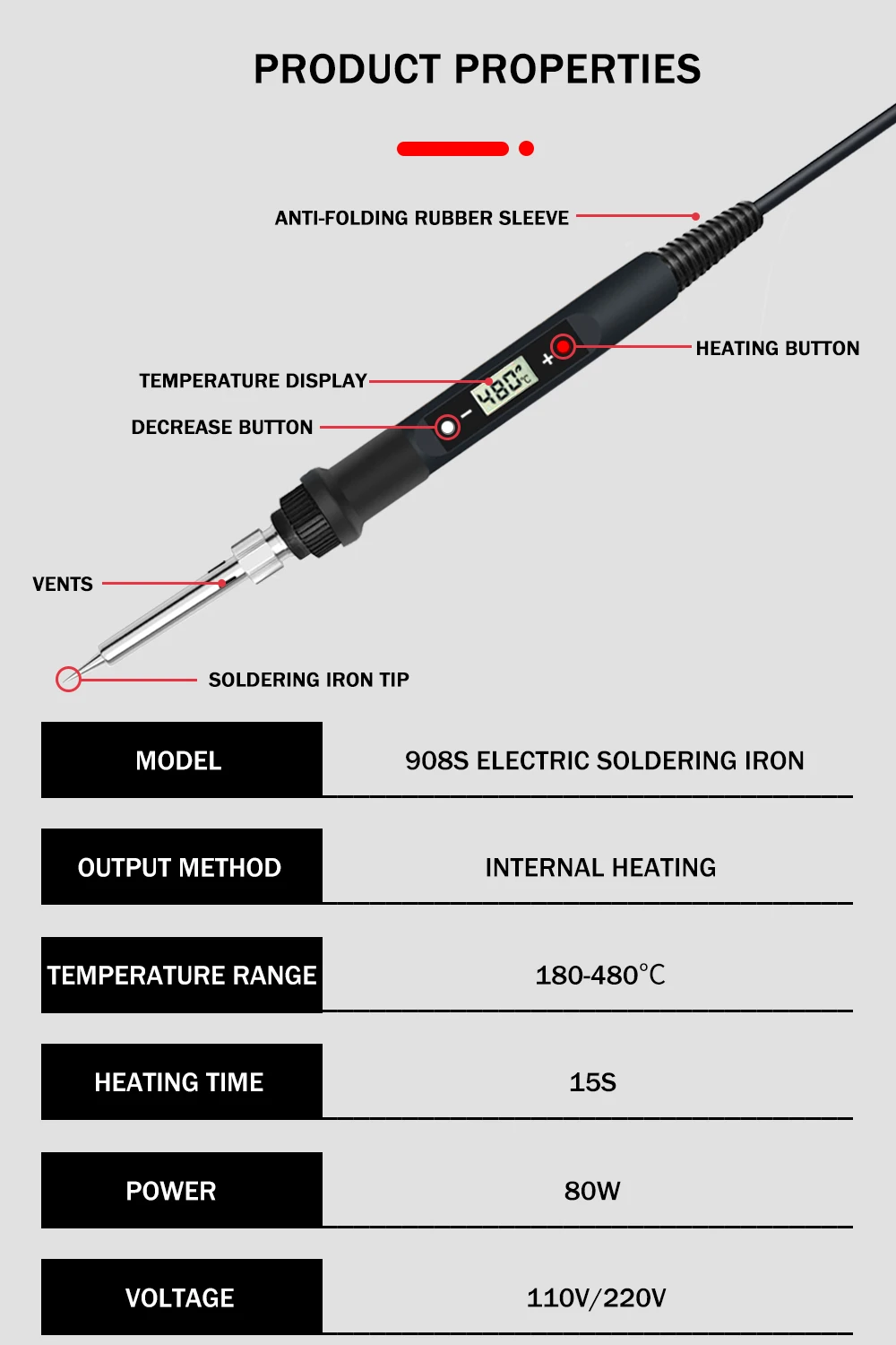 Soldador eléctrico Digital de 80W, 220V, 110V, pantalla LCD ajustable con temperatura, Kit de herramientas de soldador de soldadura, puntas de 60W/80W