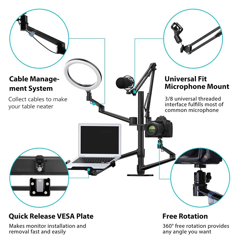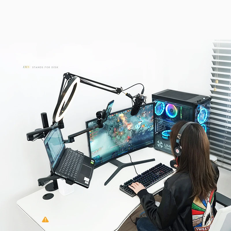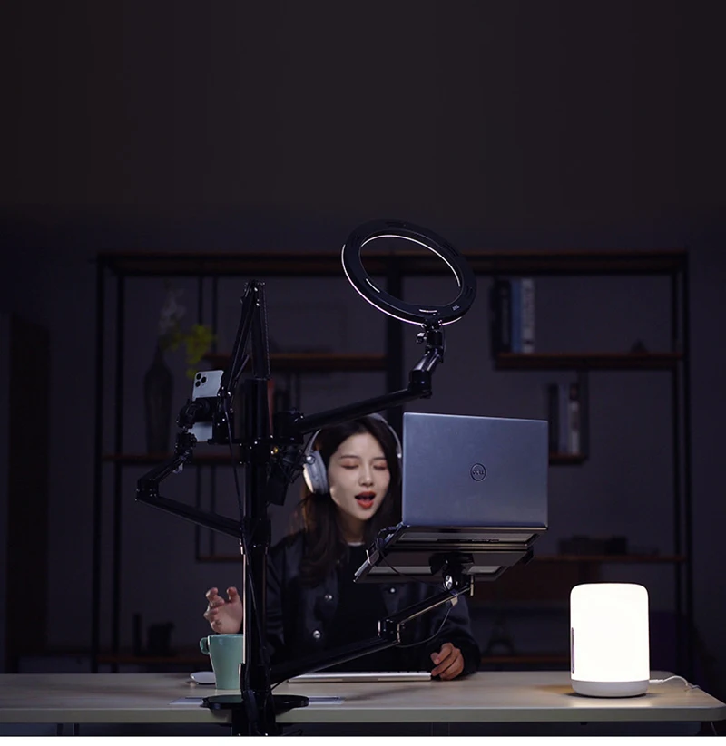 Comprar Juego de soporte en vivo de escritorio 6 en 1 con anillo de luz LED de 10 ", soporte para Monitor, soporte para computadora portátil para Youtube, maquillaje, Video