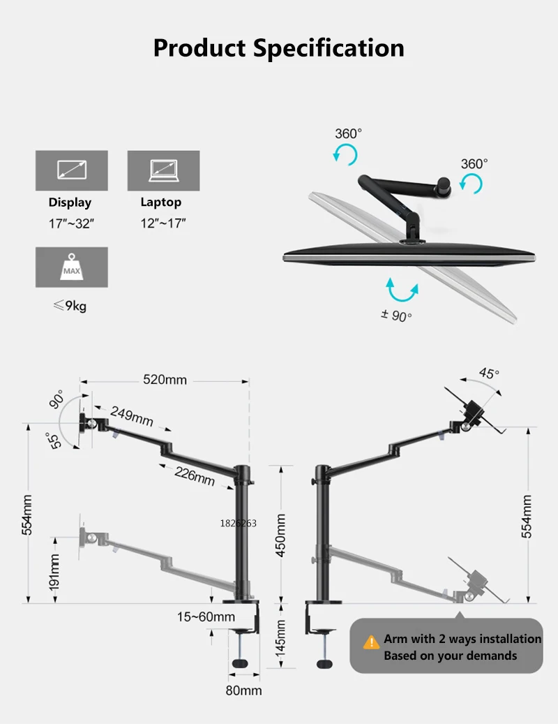 Cabezal giratorio del monitor: + 180 °/-180 °