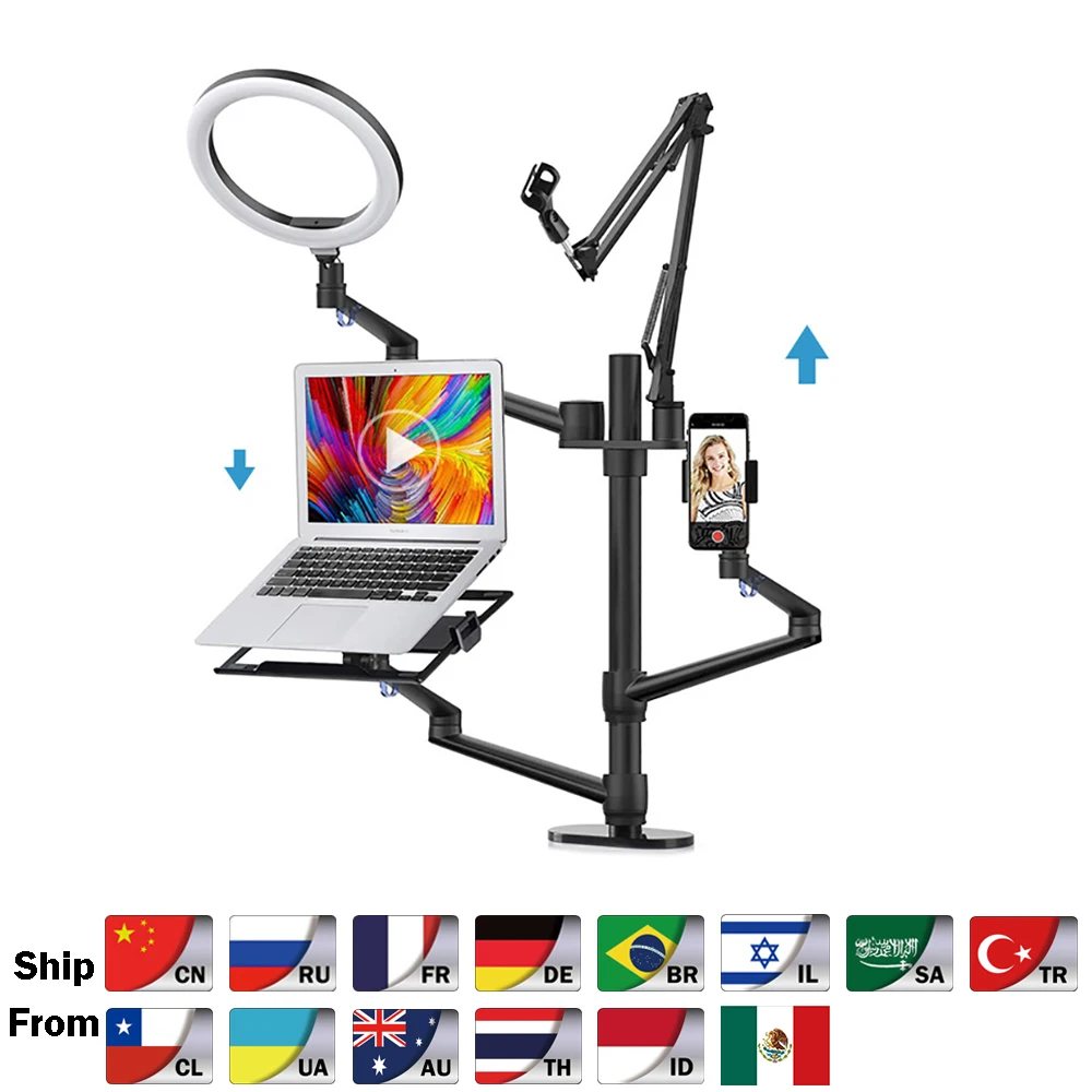 Comprar Juego de soporte en vivo de escritorio 6 en 1 con anillo de luz LED de 10 ", soporte para Monitor, soporte para computadora portátil para Youtube, maquillaje, Video