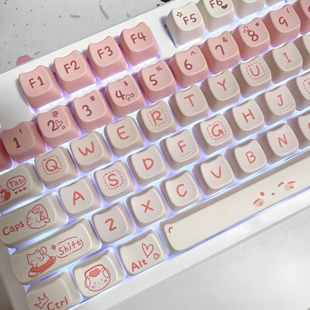 Comprar Juego de tapas de teclas PBT, 135 teclas MAO Party Kitten/Gatinito de sal marina, bonita tapa de tecla para teclado mecánico para juegos 60/84/98/108, perfil de piel