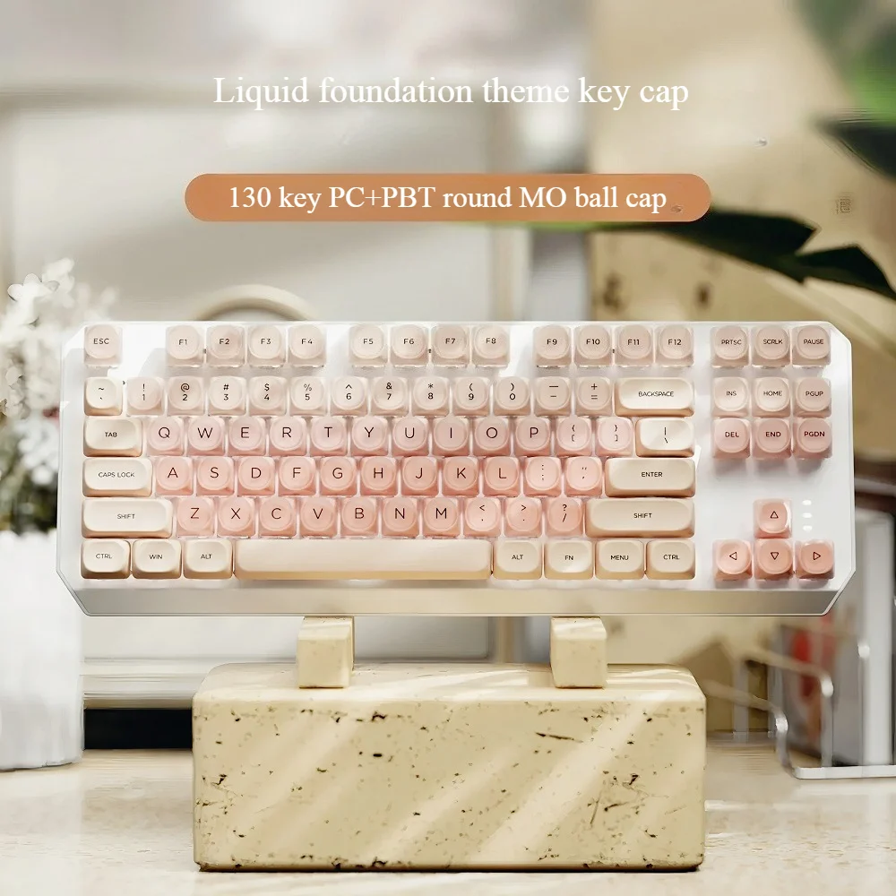 Comprar Juego de tapas de teclas con tema de base líquida, polvo exfoliante de 130 teclas, PC de doble capa + tapa de tecla PBT MO para teclado mecánico 61/68/75/104/108