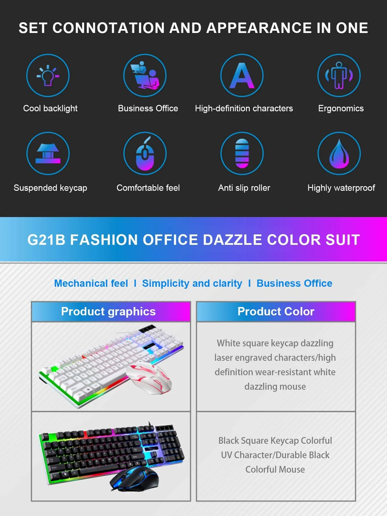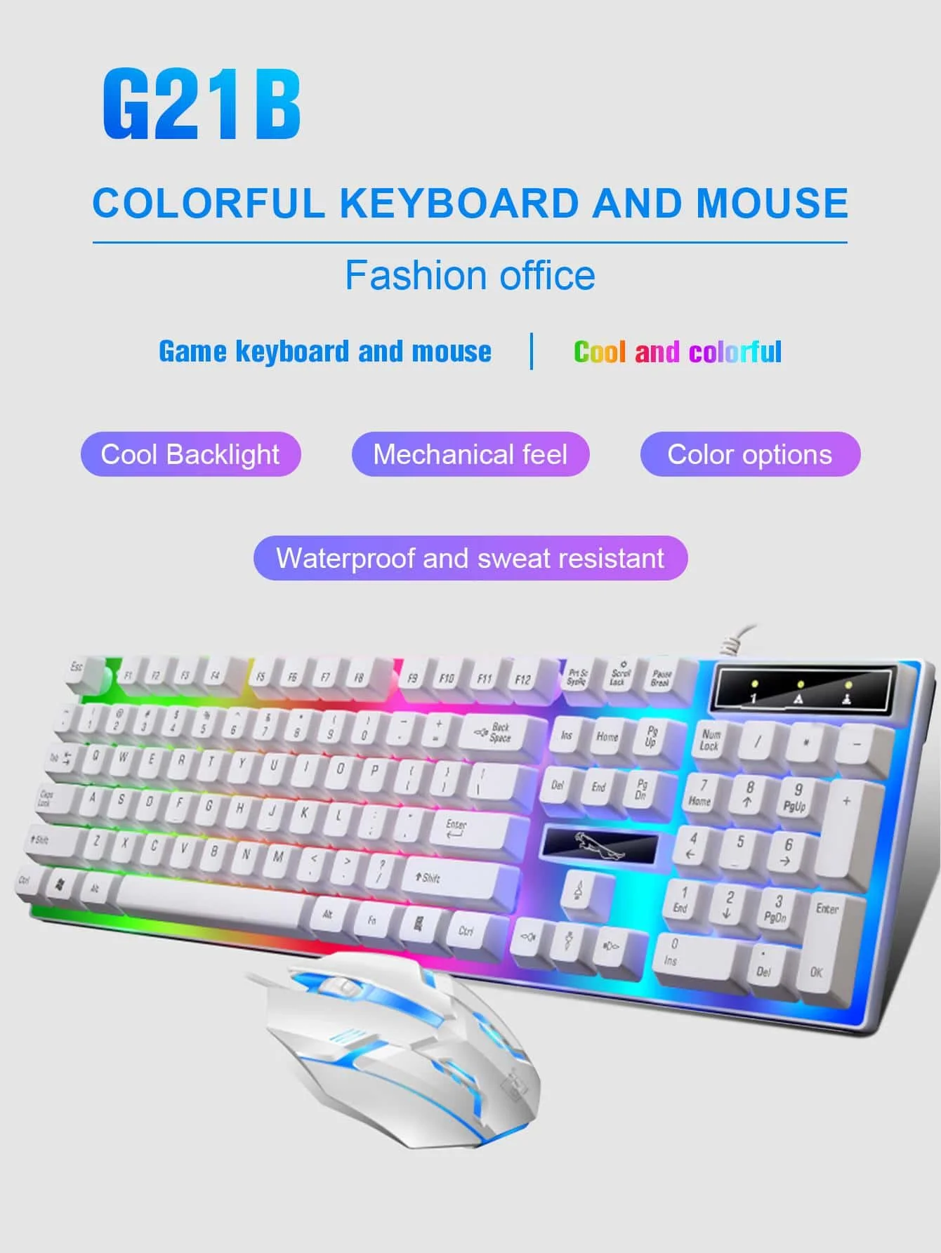 Comprar Juego de teclado y mouse con cable Glow Mechanic Feel, diseño ergonómico, adecuado tanto para juegos como uso en la oficina