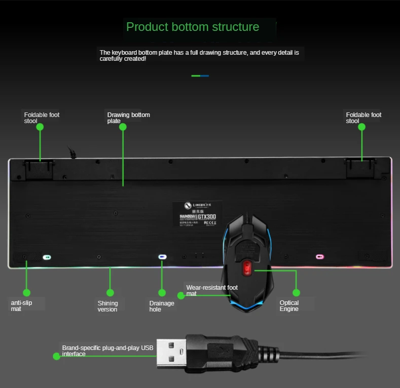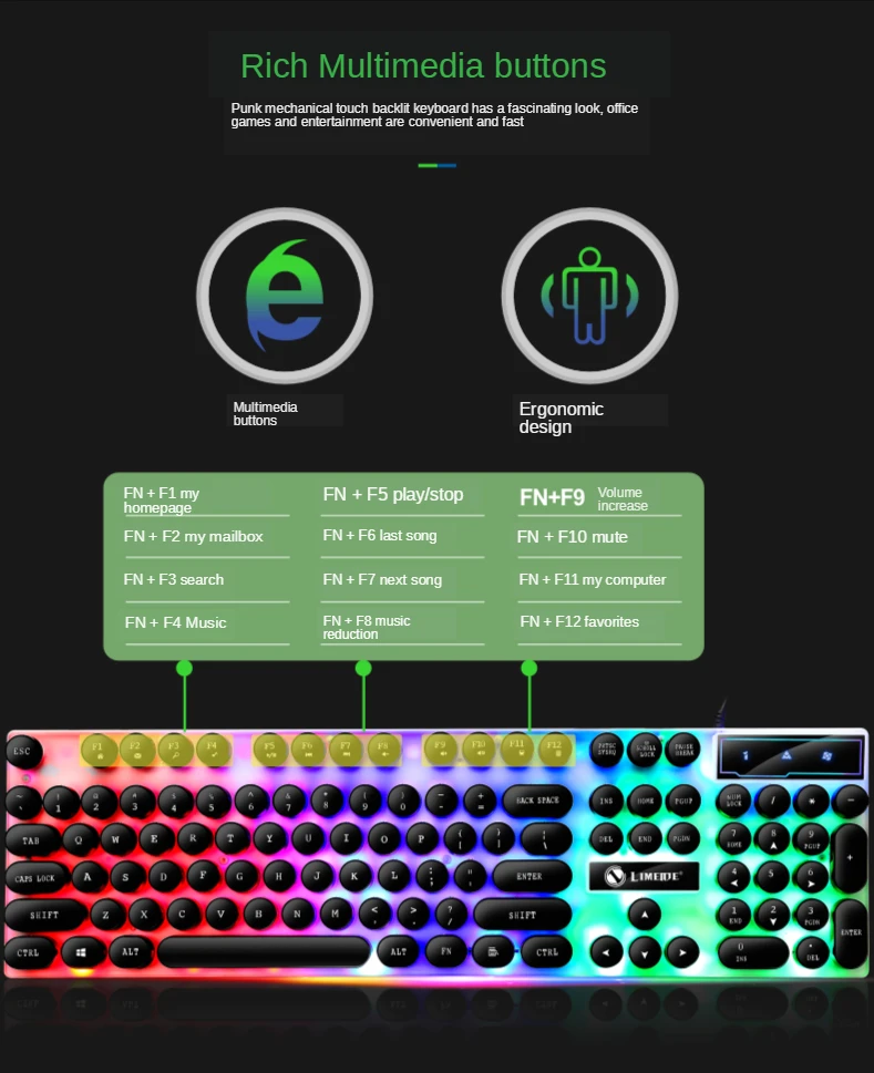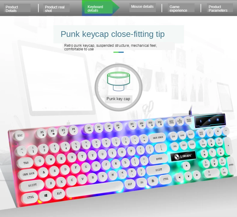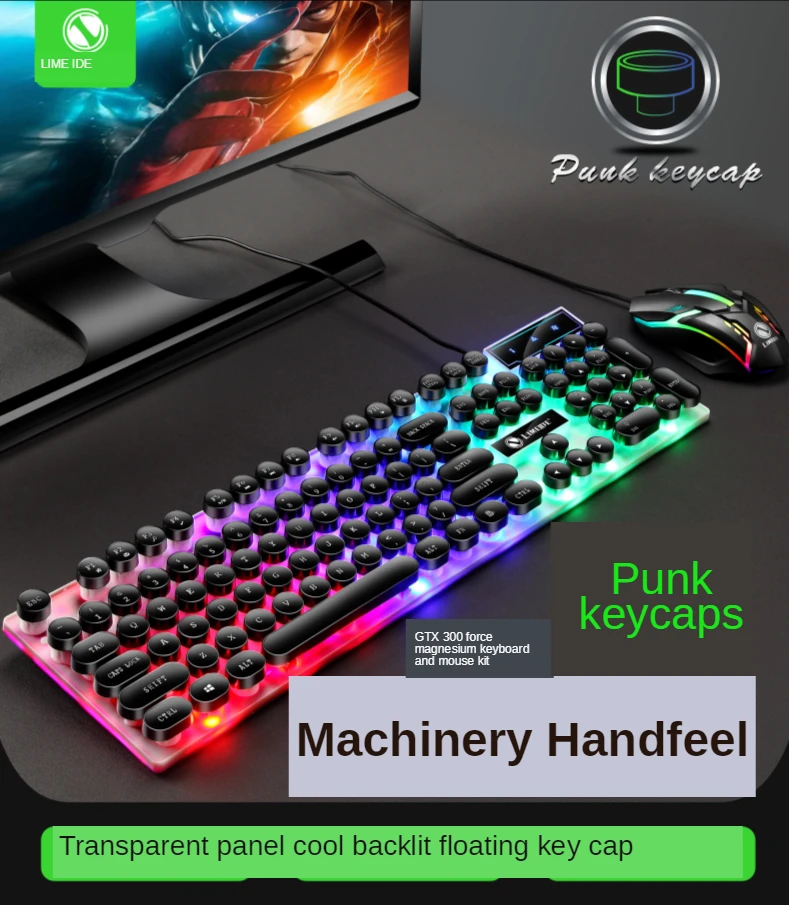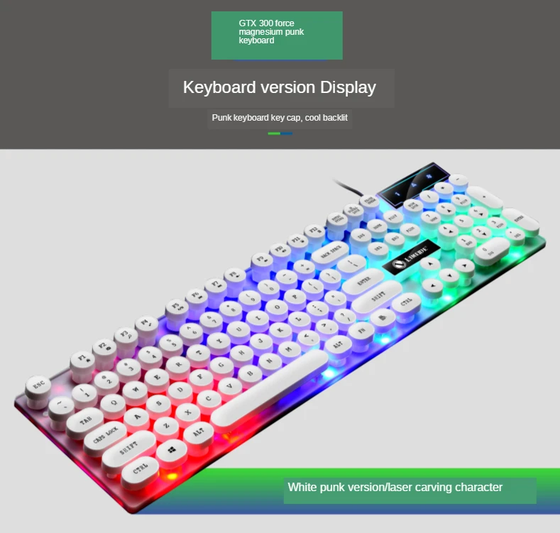 Comprar Juego de teclado y ratón de máquina de escribir GTX300, juego Retro Punk, retroiluminado, con cable USB, para PC y Escritorio
