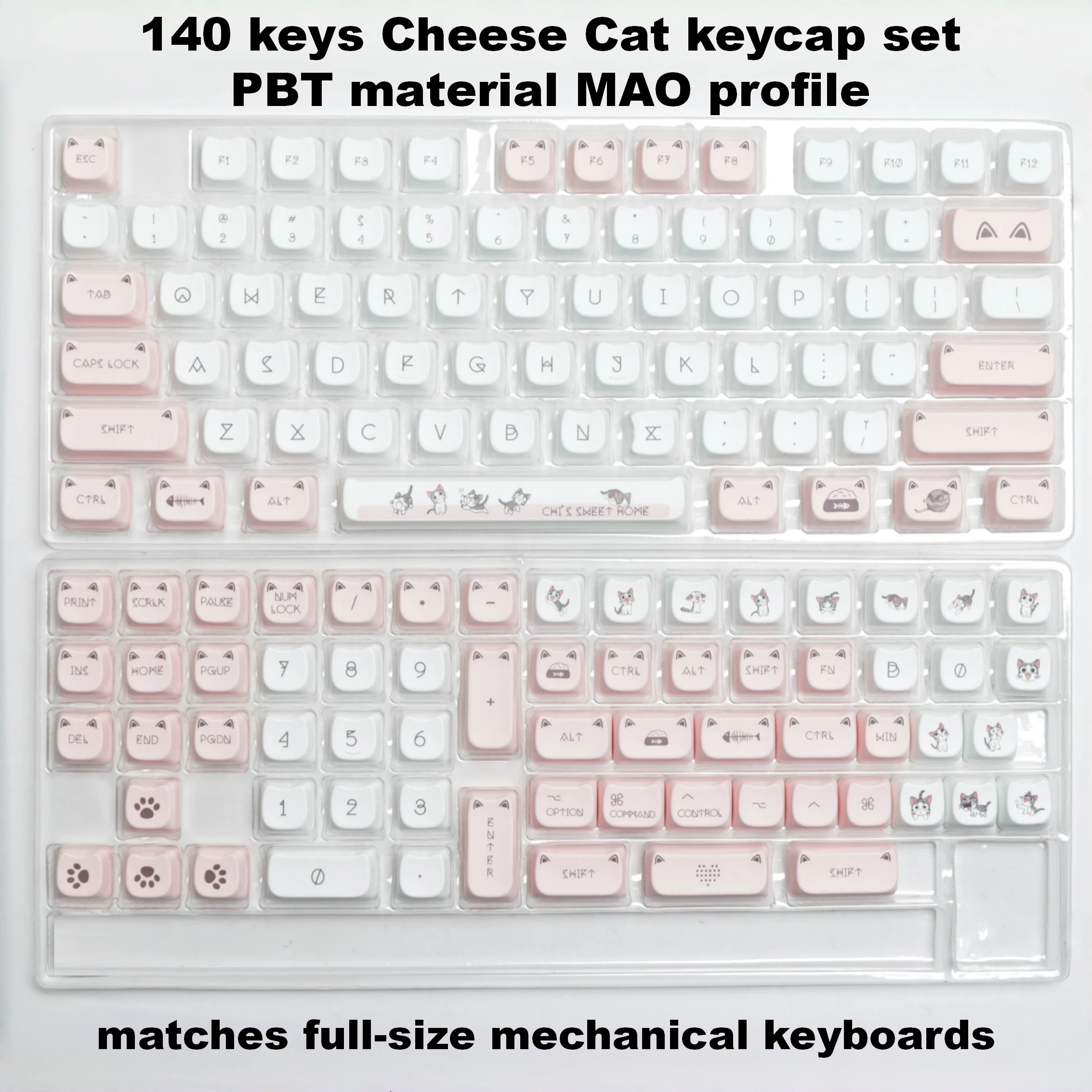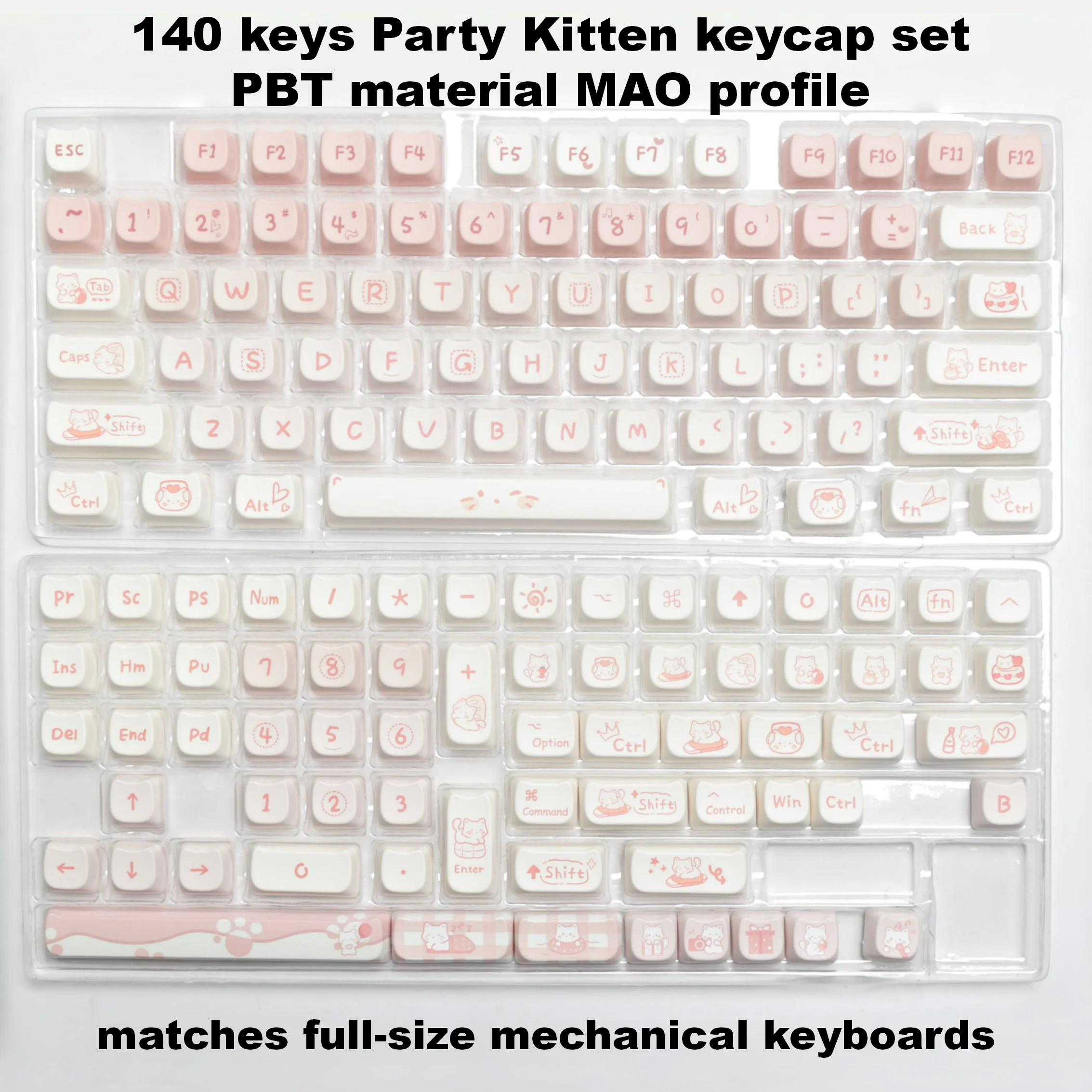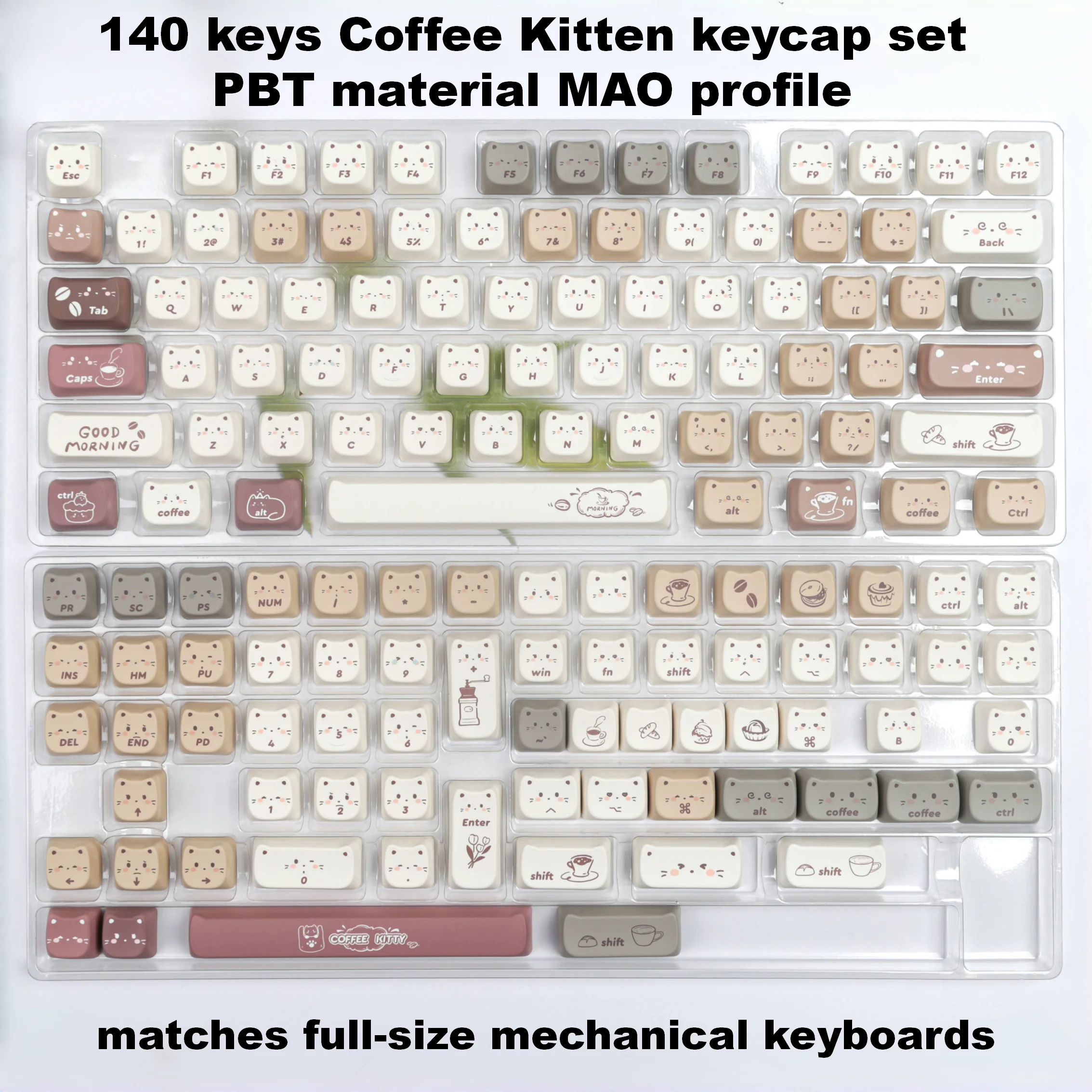Comprar Juego de teclas de 140 teclas Sea Salt Cat PBT, perfil MAO, sublimado por tinte para Mx Cherry Gateron Switch, Kit de teclado mecánico