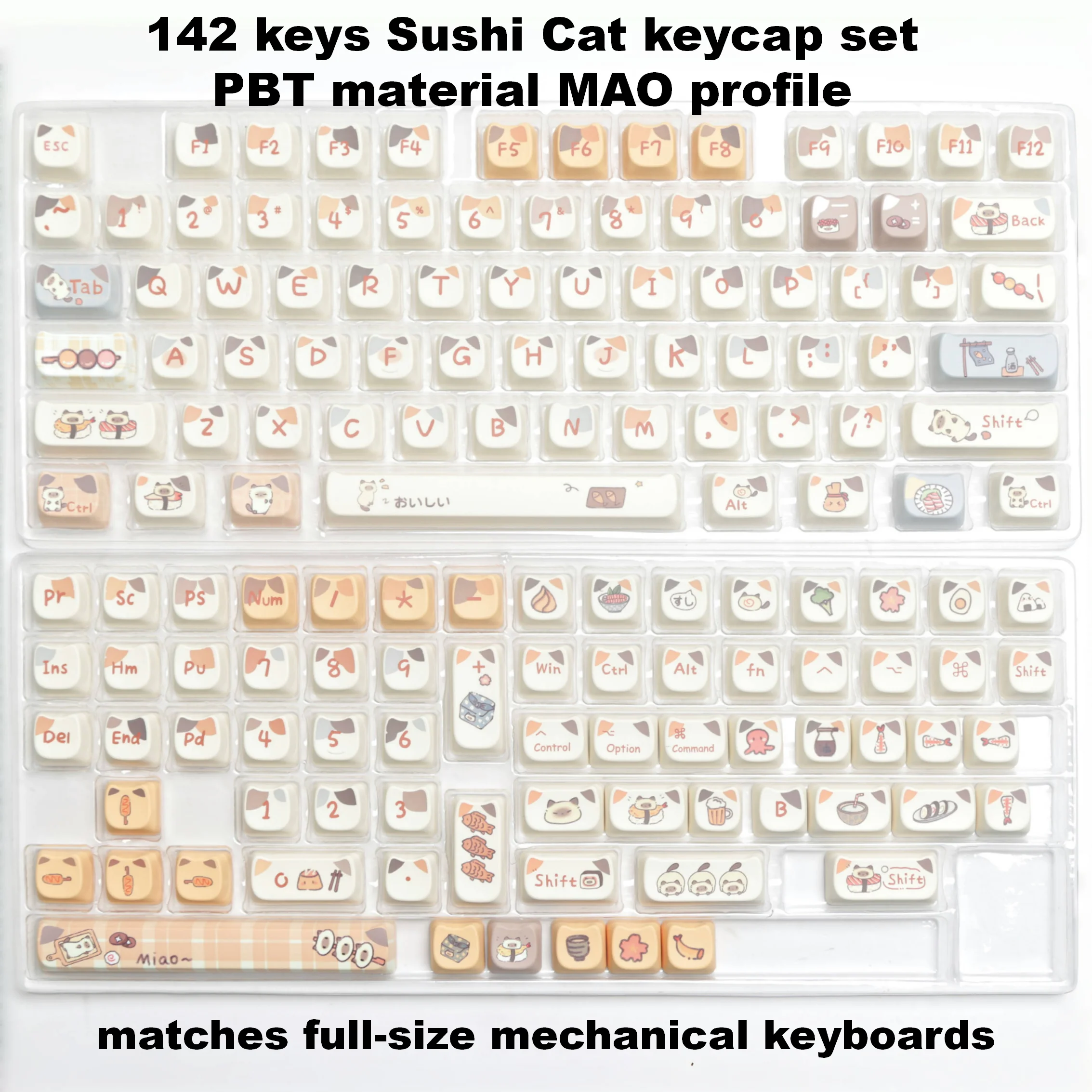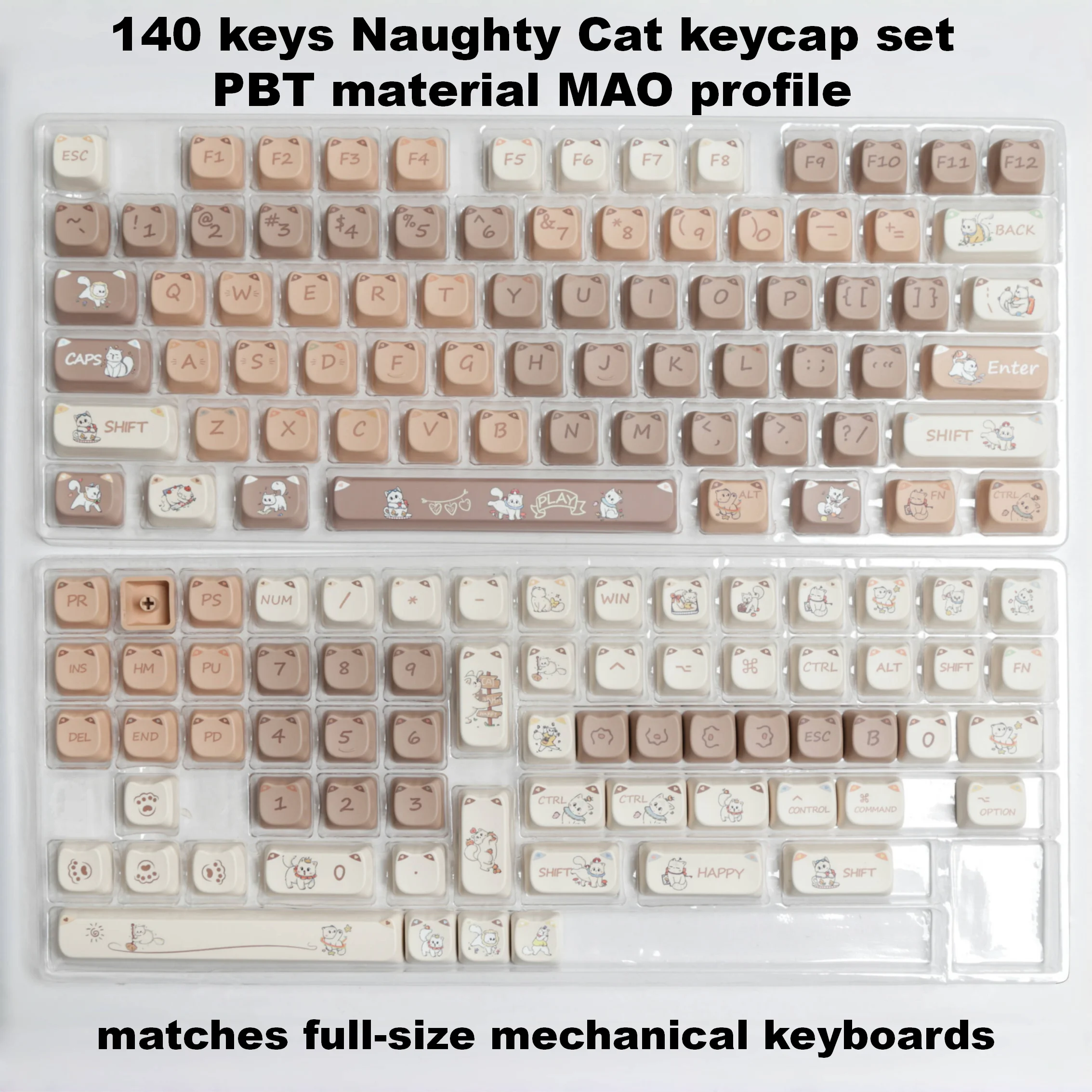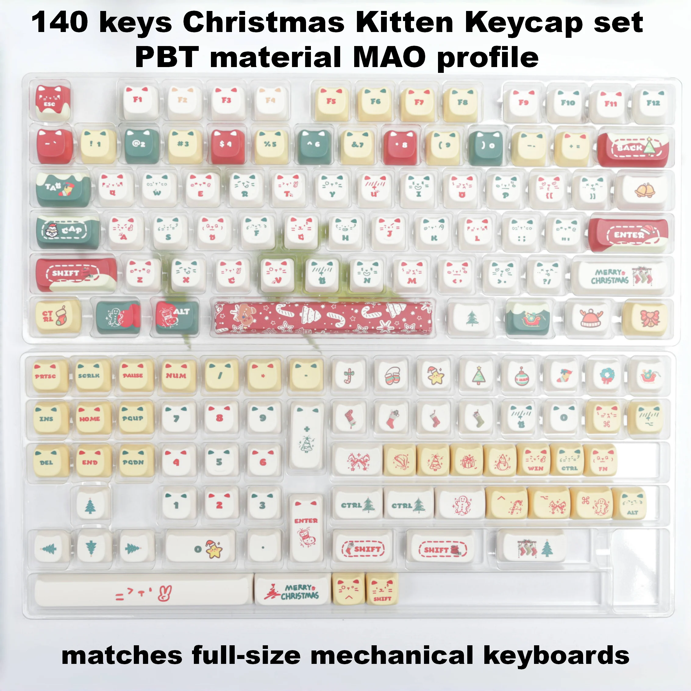 Comprar Juego de teclas de 140 teclas Sea Salt Cat PBT, perfil MAO, sublimado por tinte para Mx Cherry Gateron Switch, Kit de teclado mecánico