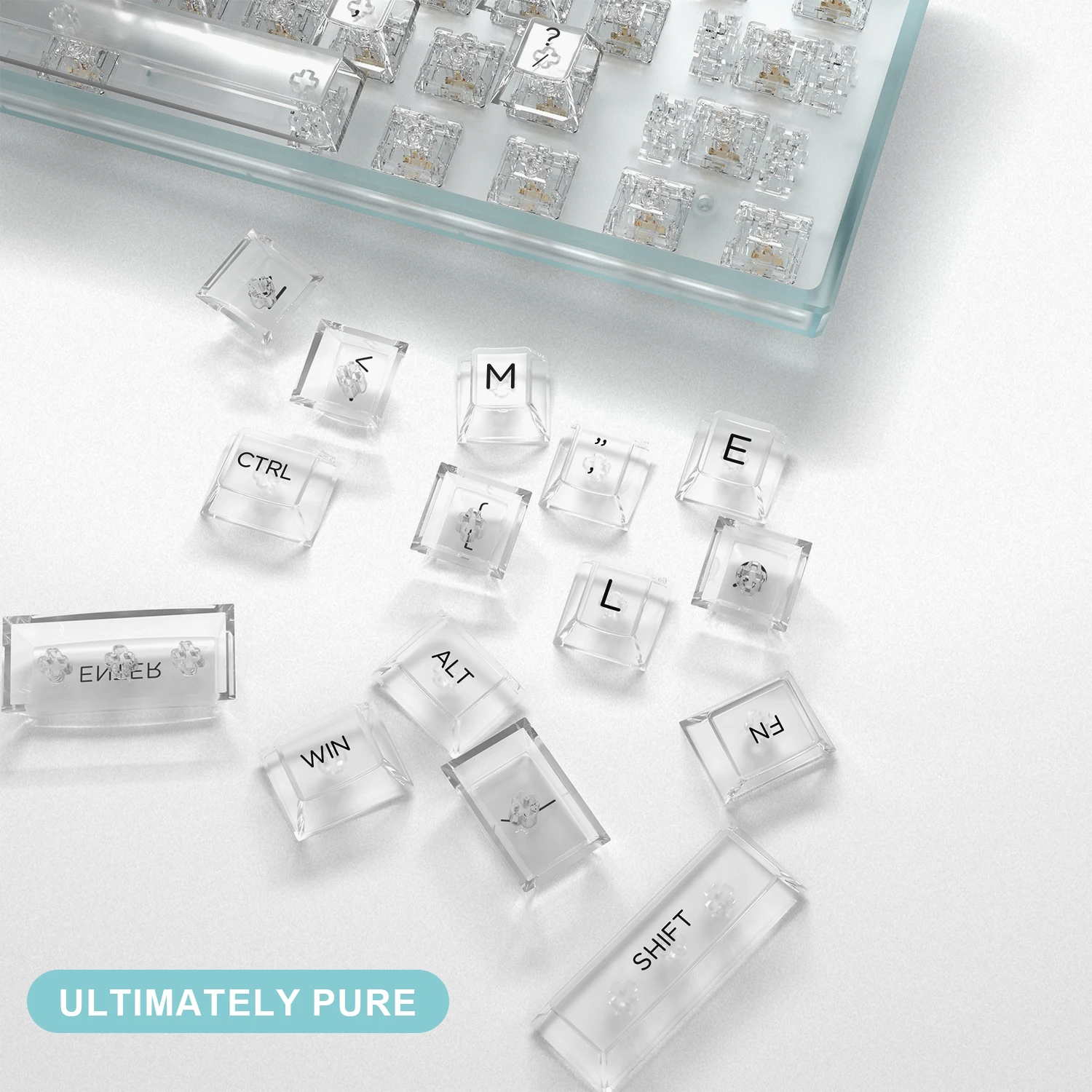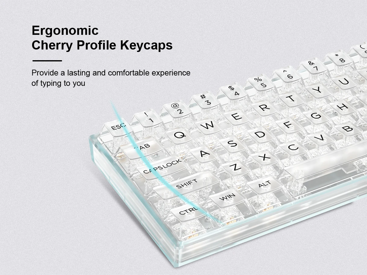 Comprar Juego de teclas de altura de cereza transparentes de 124 teclas para consola de juegos MX, Teclado mecánico, Compatible con PC, RGB personalizable