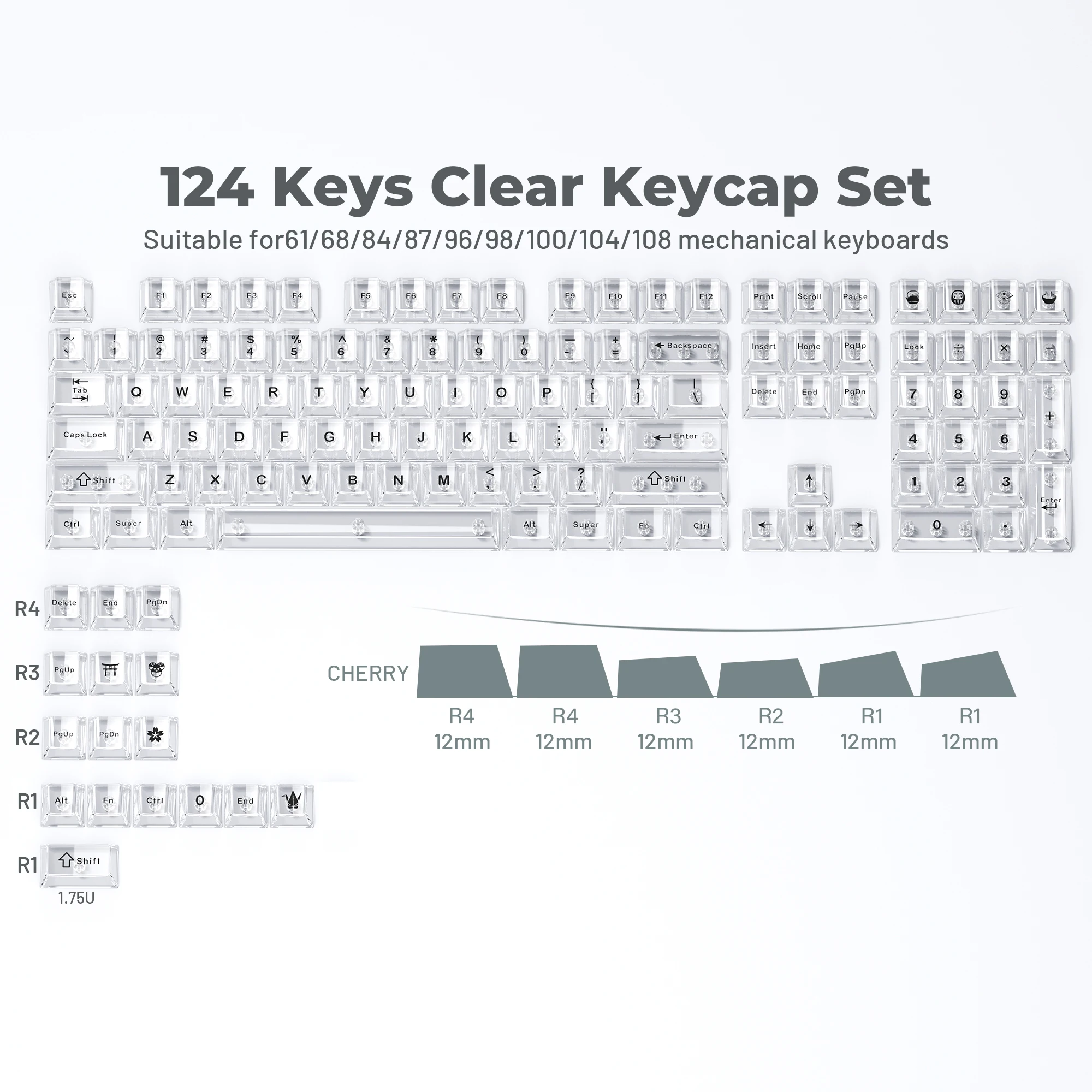 [Amplia selección de teclas] Totalmente compatible con la mayoría de teclados 61/64/66/68/84/87/96/98/100/104/108 teclas 60%, 65%, 75 y 100% mecánicos.