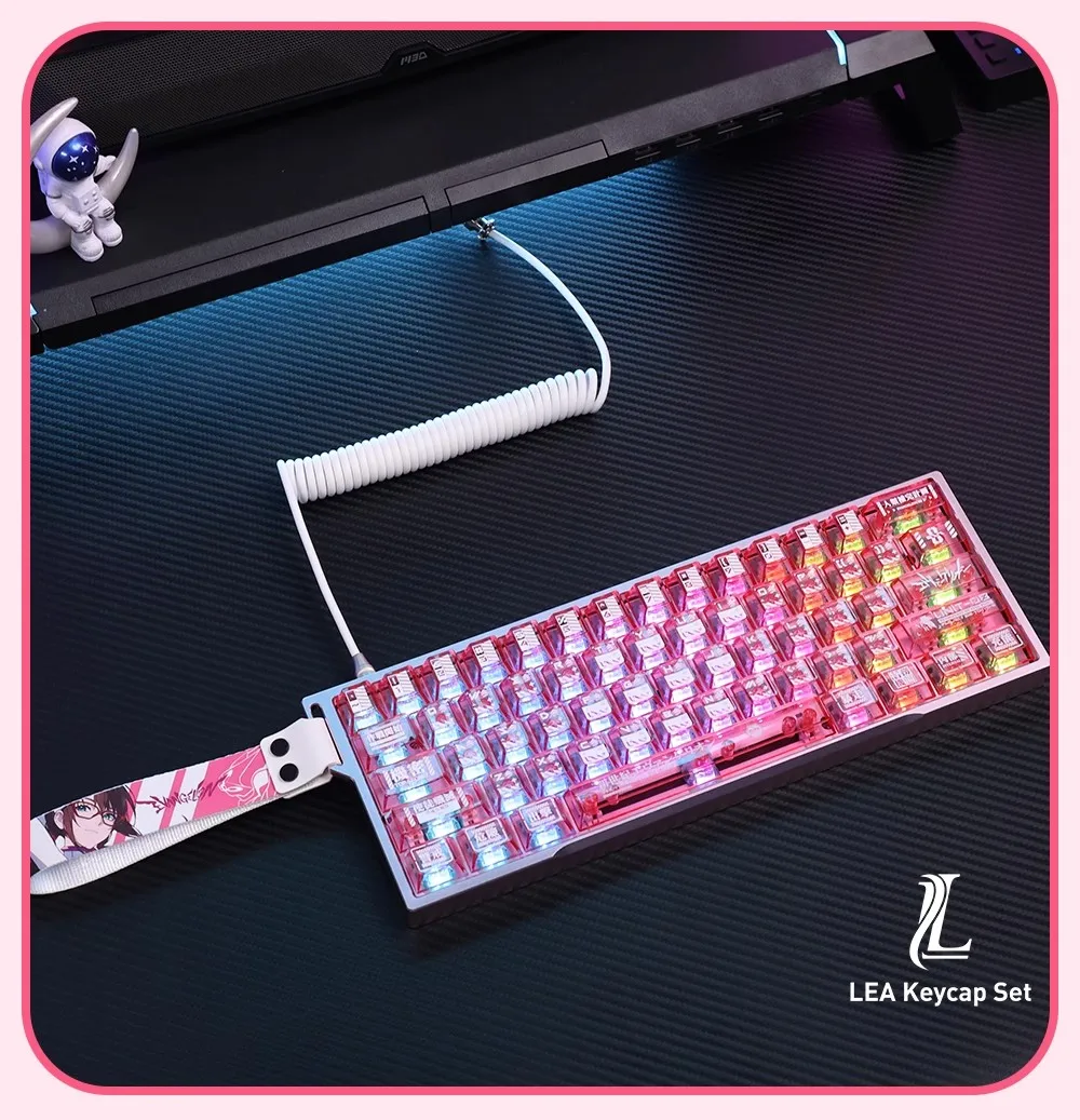 Juego de teclas de Anime transparentes de color rosa, teclas de teclado de PC de 121 teclas, teclas de perfil de cereza personalizadas para accesorios de teclado mecánico