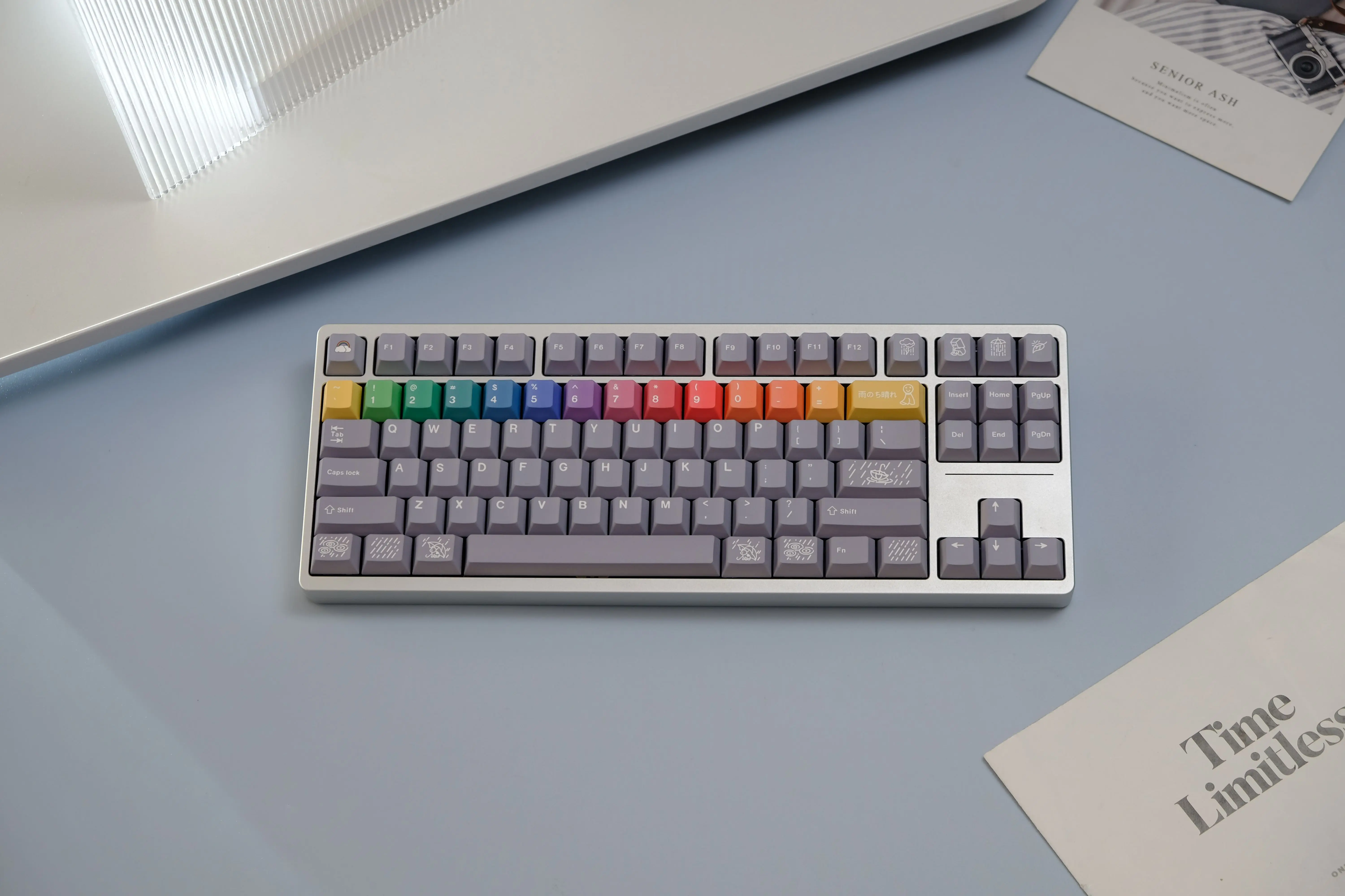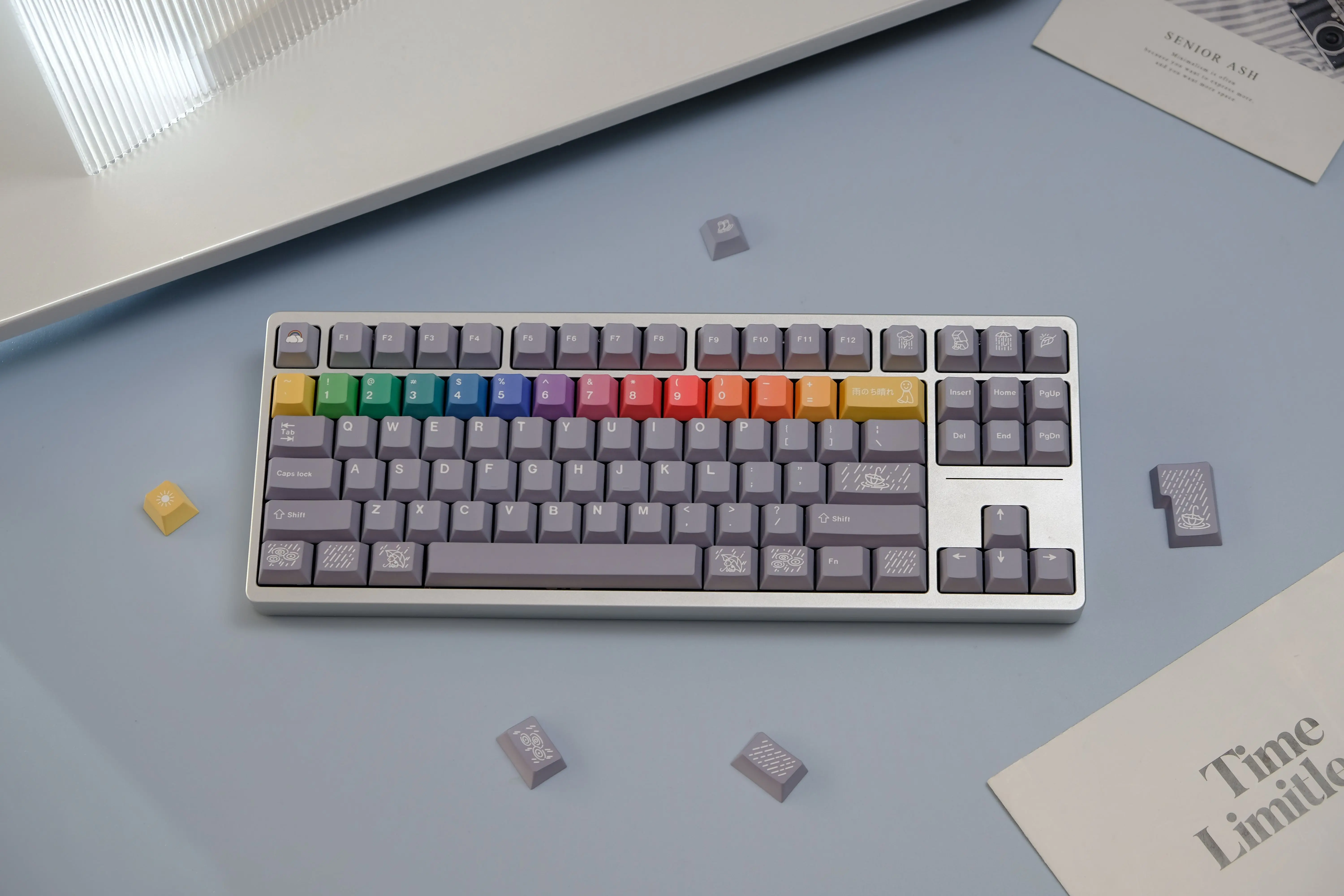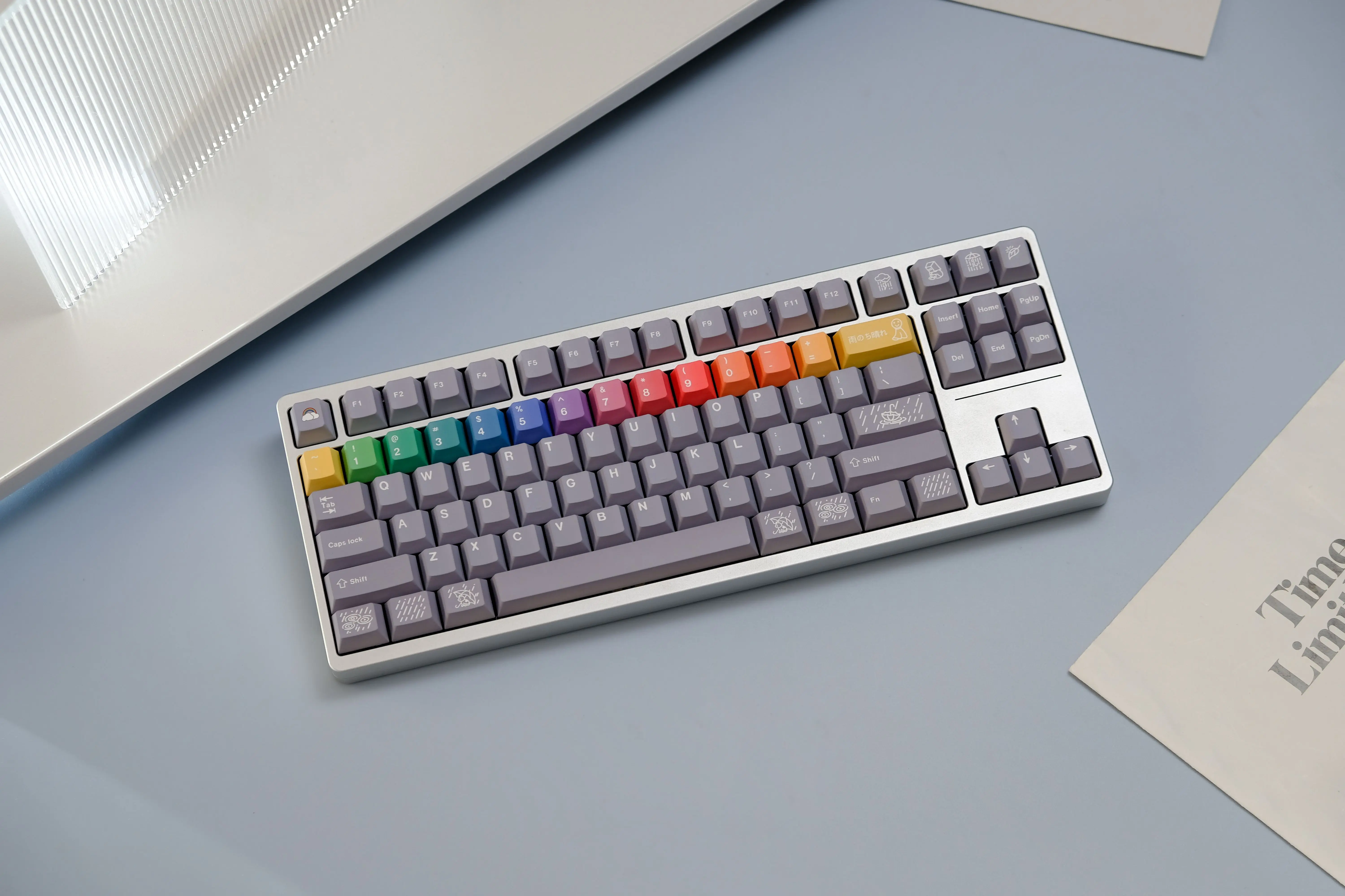 Comprar Juego de teclas de arcoíris gris después de la lluvia, 126 teclas, perfil Cherry/MOA, sublimación de tinte PBT, accesorios para teclado mecánico MX