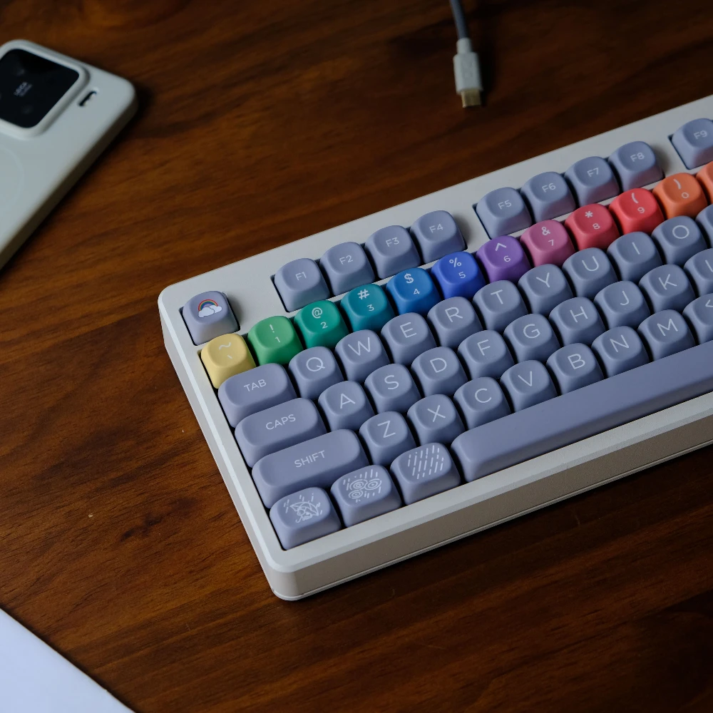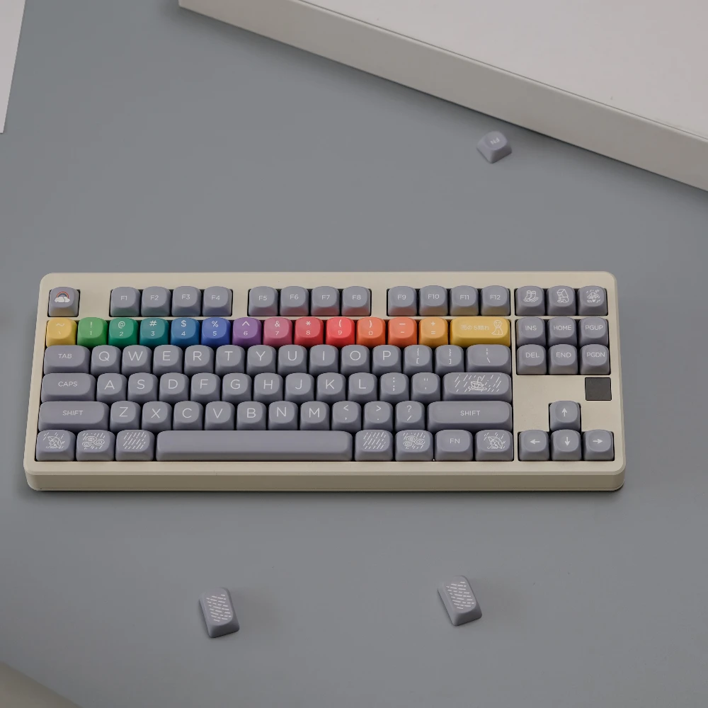 Comprar Juego de teclas de arcoíris gris después de la lluvia, 126 teclas, perfil Cherry/MOA, sublimación de tinte PBT, accesorios para teclado mecánico MX