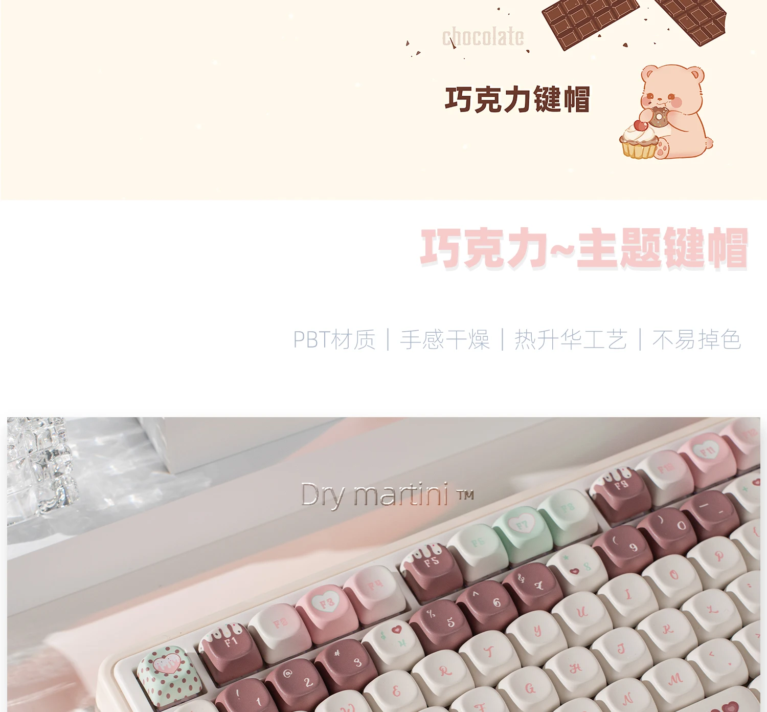 Comprar Juego de teclas bonitas Chocolate MOA, 131 teclas, coloridas, adecuadas para teclado mecánico, diseño 61/64/68/75/84/87/96