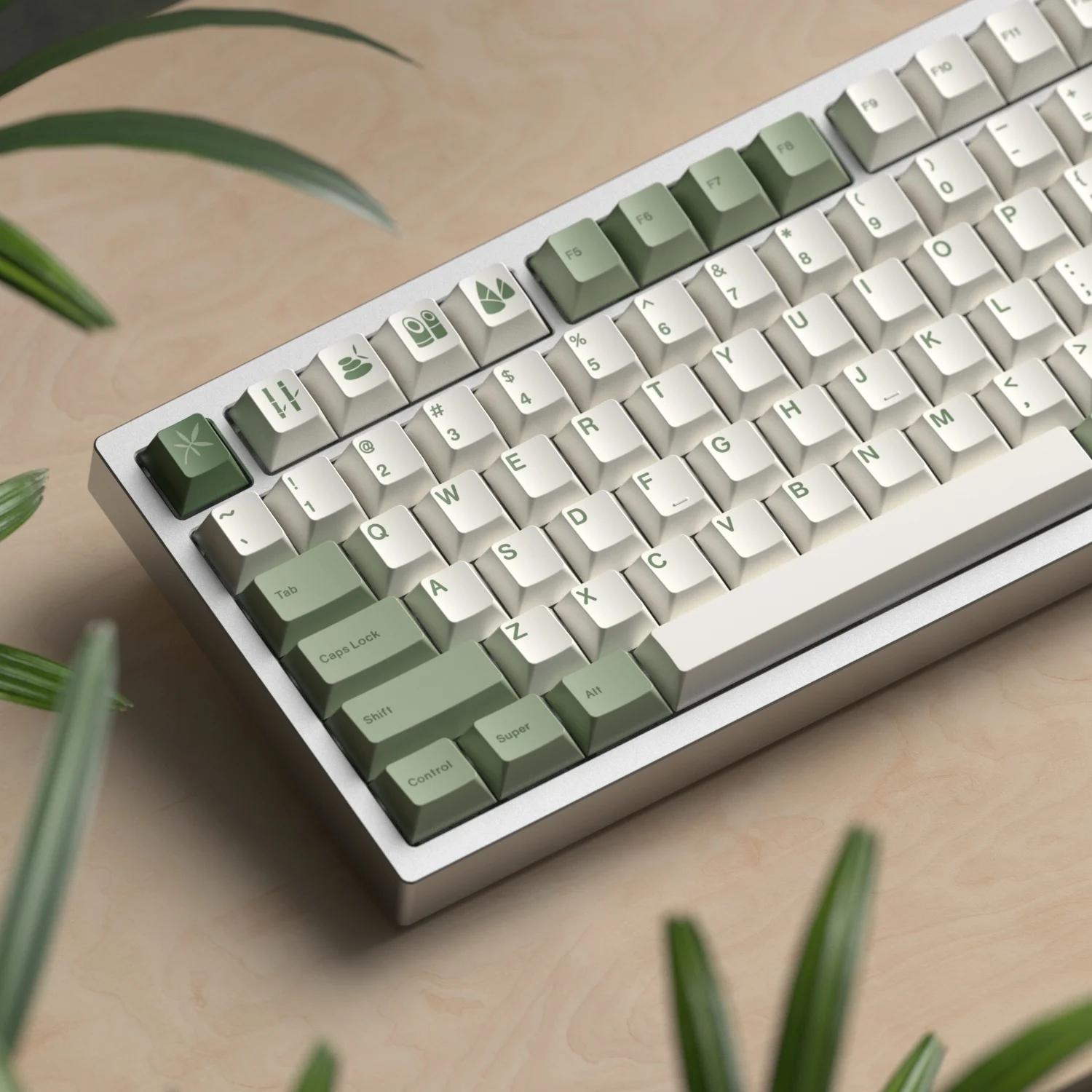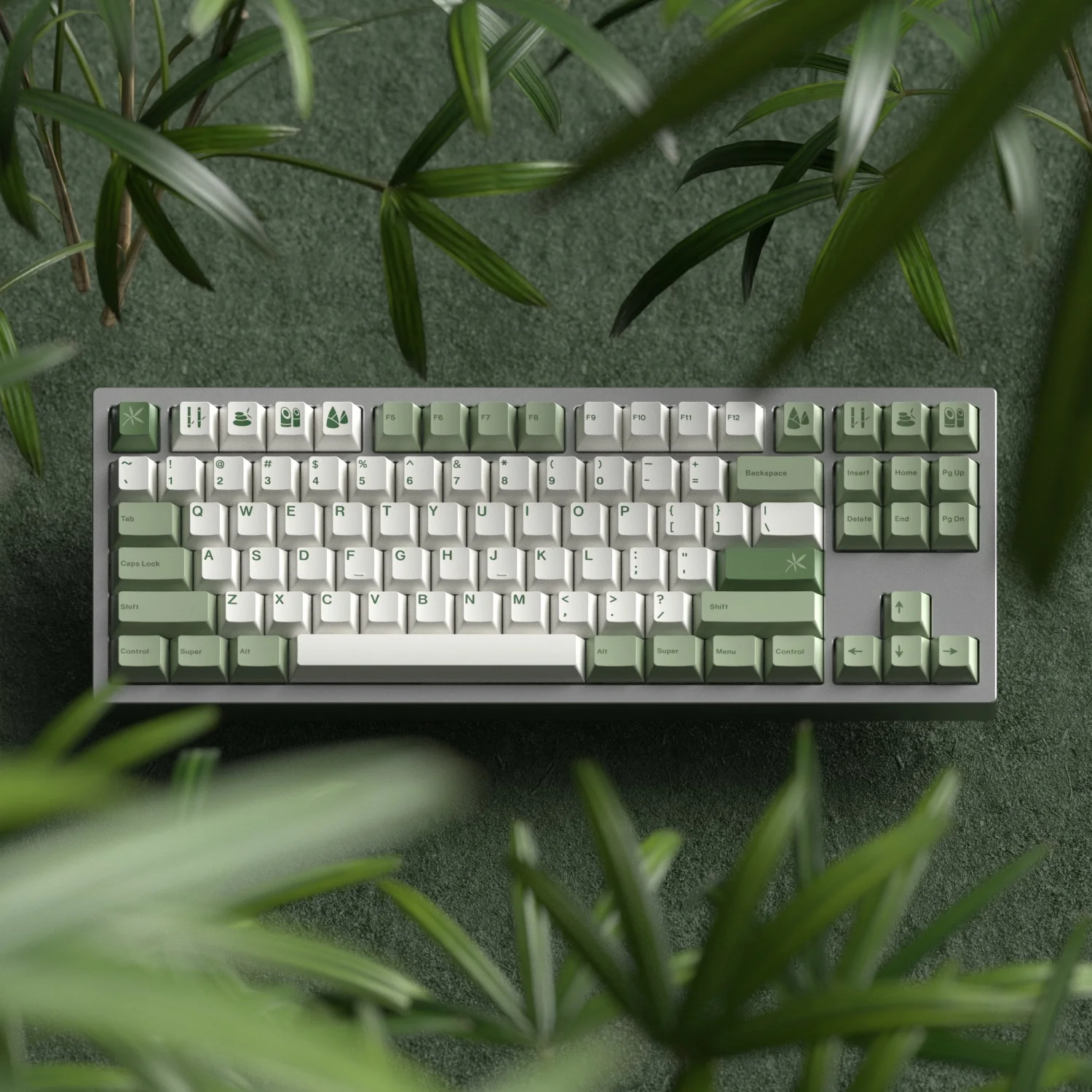 Comprar Juego de teclas de bosque de bambú, teclas de subcama de tinte PBT, perfil de cereza, teclas blancas cálidas para 61, 64, 68, 980, 75, 87 HHKB GMK Botanical, 1 juego
