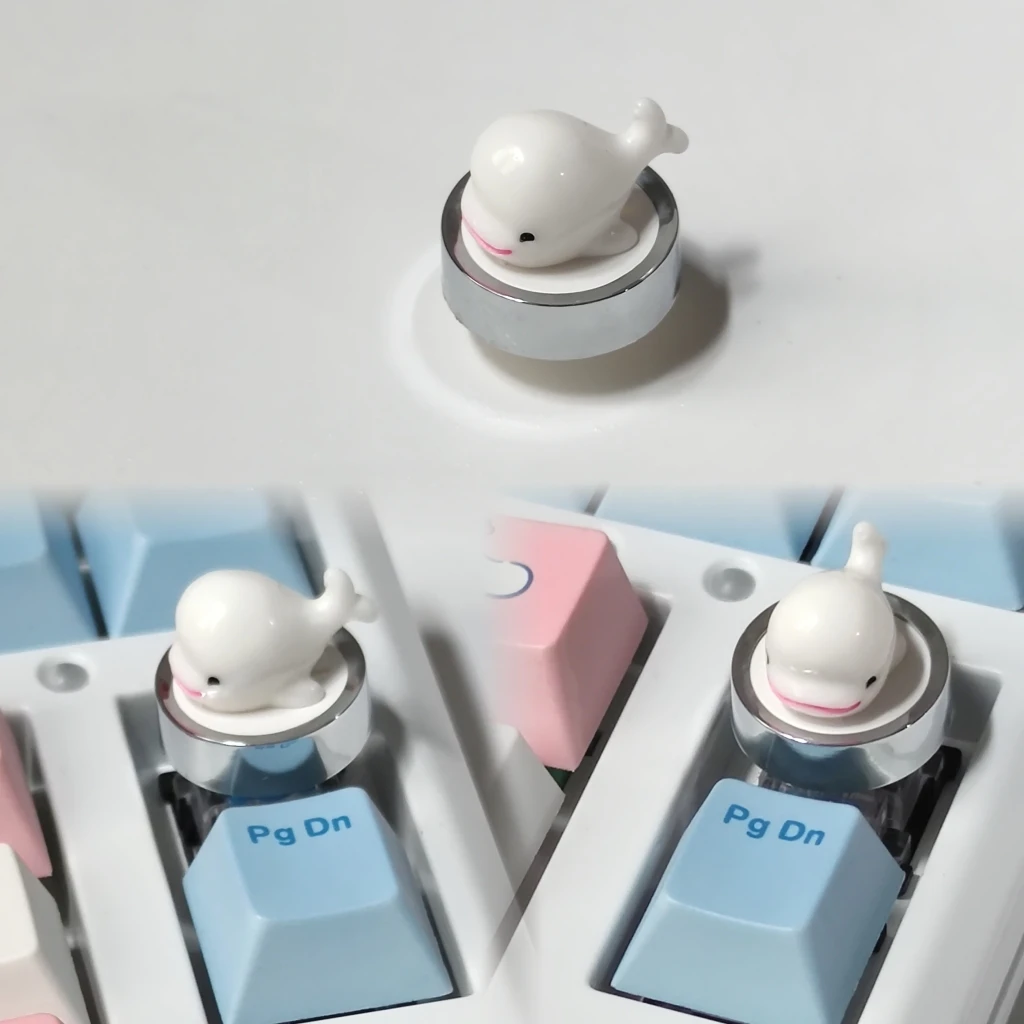 Juego de teclas circulares con tema de ballena blanca, teclas ABS 3D, teclas originales hechas a mano personalizadas para accesorios de teclado mecánico, regalo