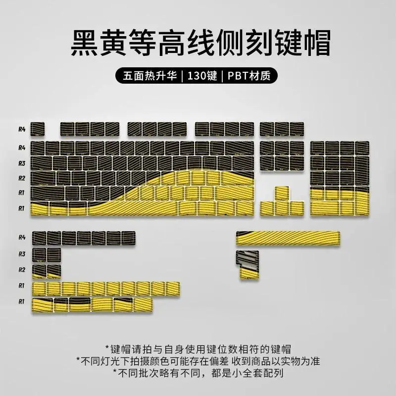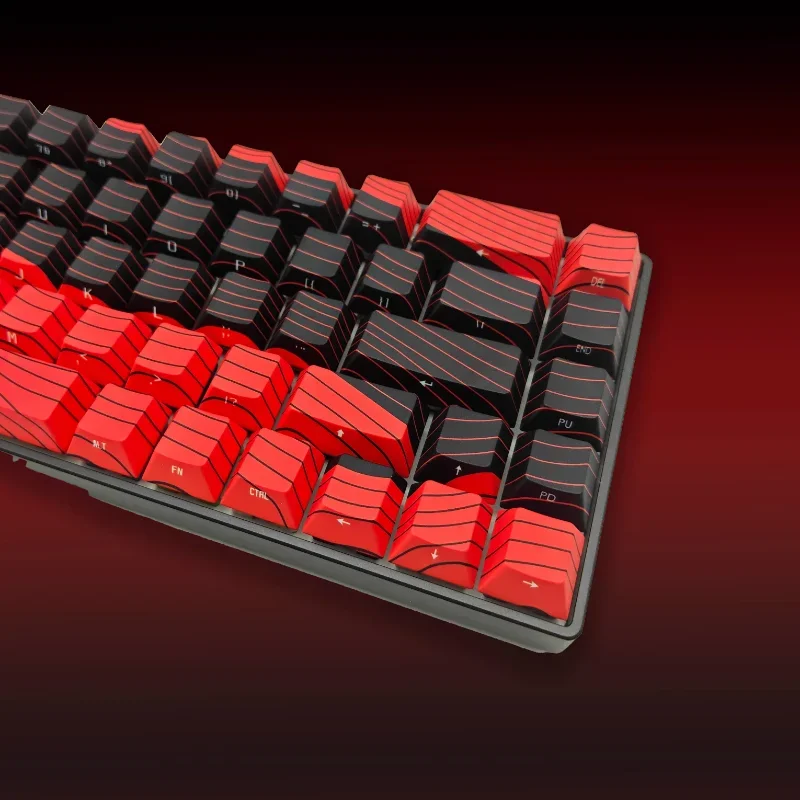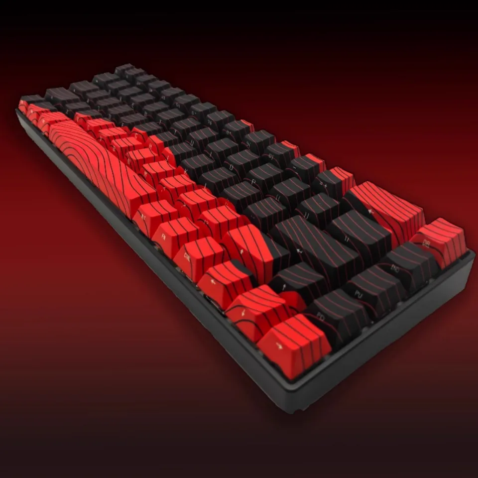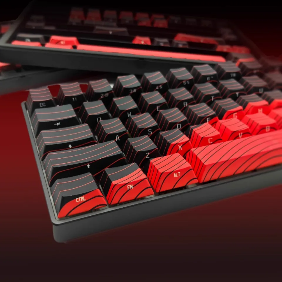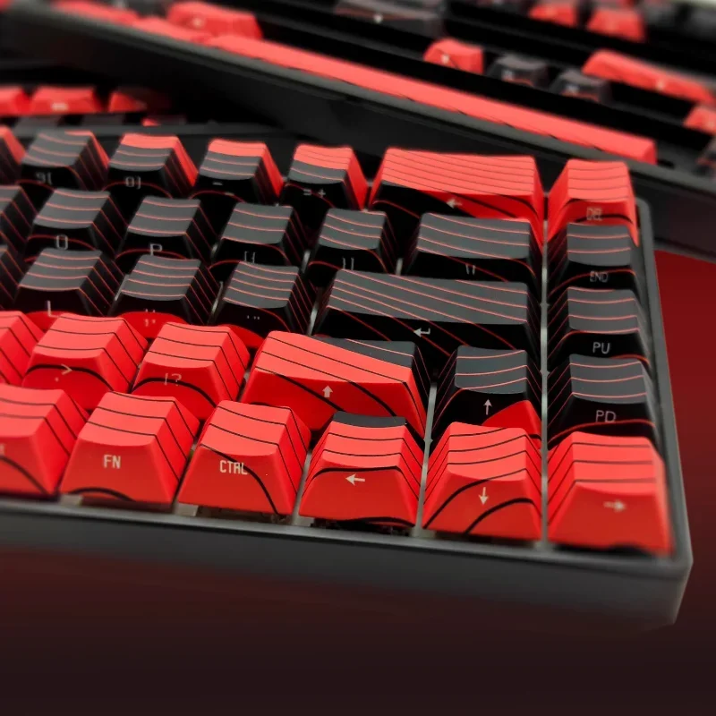 Red-Black Contour Keycap Set PBT Side-engraved Custom Cherry Profile Keycaps for MAD60/68 Mechanical Keyboard Gaming Accessories
