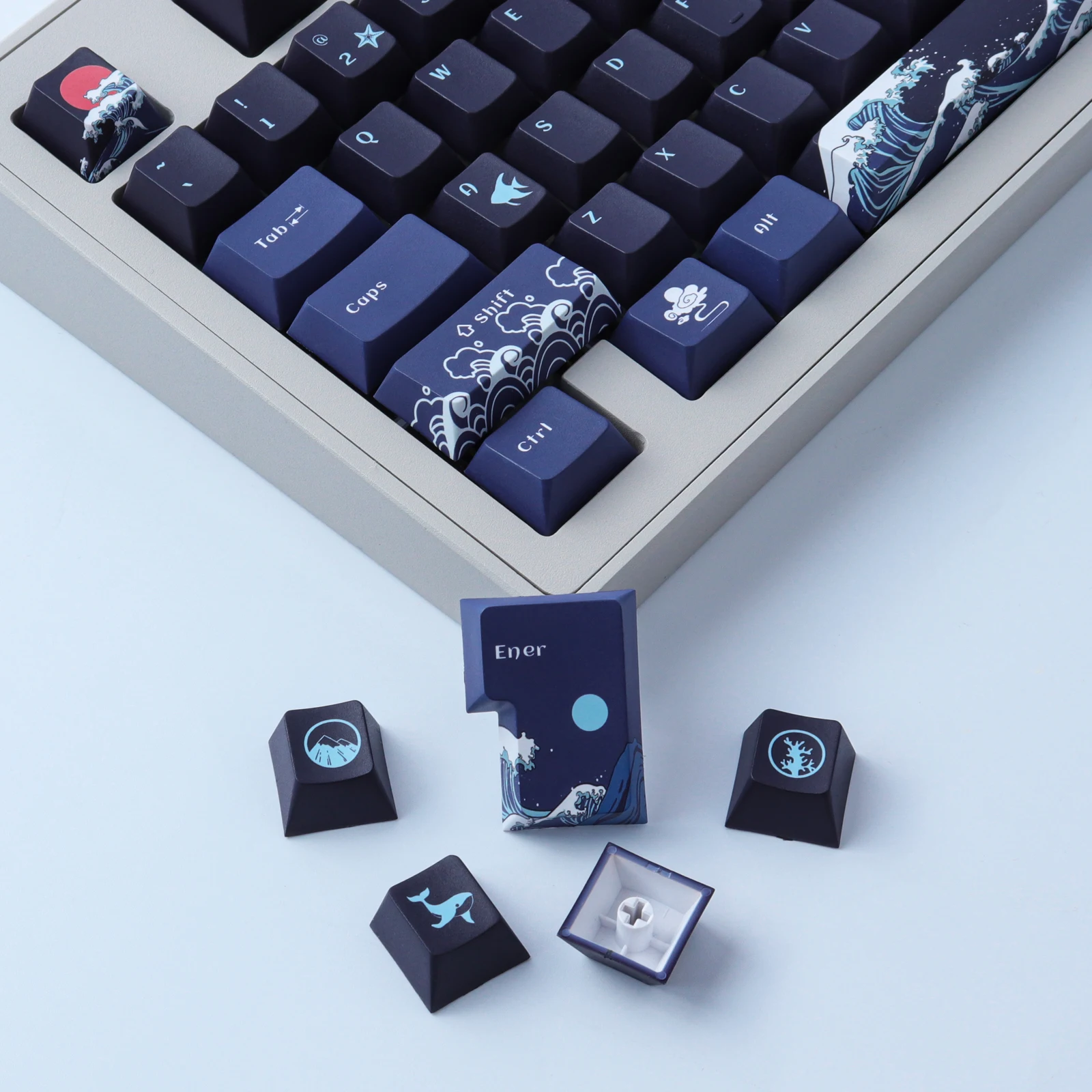 Comprar Juego de teclas coralina Sea para teclado mecánico MX Switch, teclas subcama con tinte PBT, perfil de cereza, 129 teclas