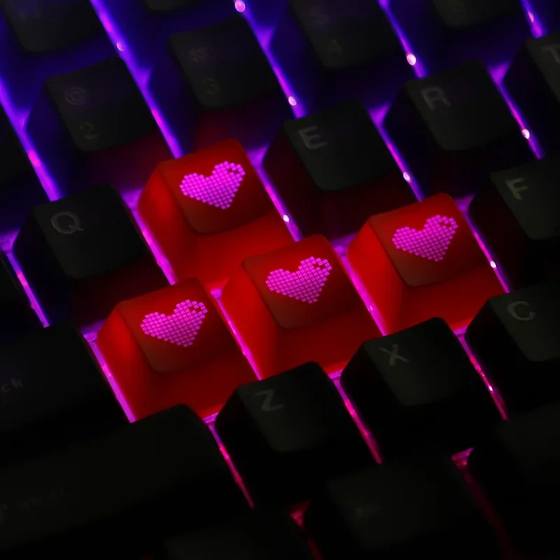 Juego de teclas de corazón de píxel rojo de tapas de teclas de flecha Esc WASD para teclado mecánico