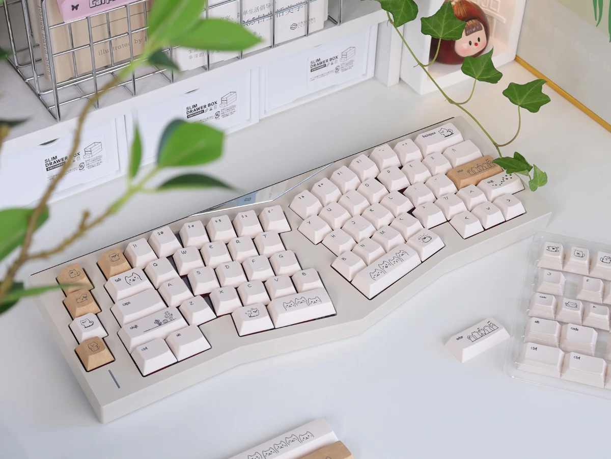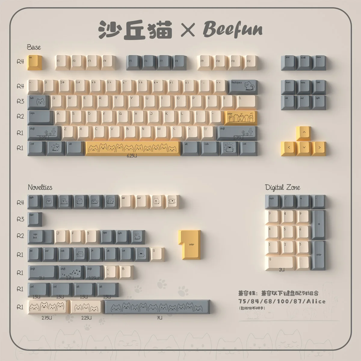 Comprar Juego de teclas Dune Cat, 144 teclas, perfil Cherry, sublimación PBT, teclas grises minimalistas para teclado mecánico, barra espaciadora 2.25U 2.75U