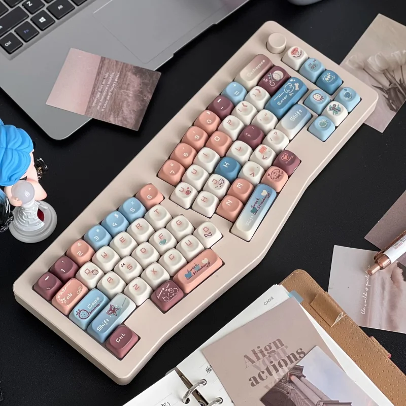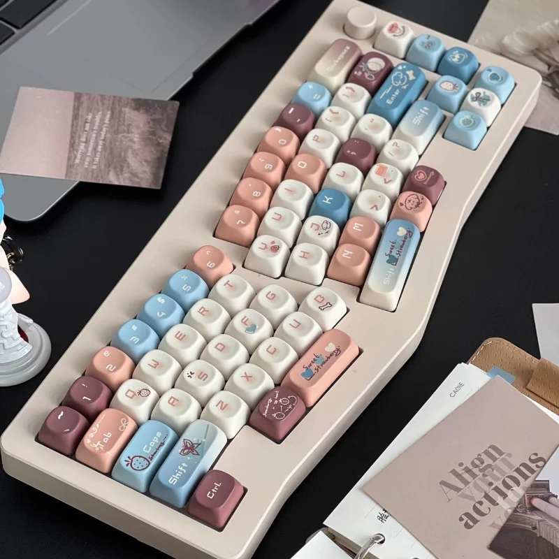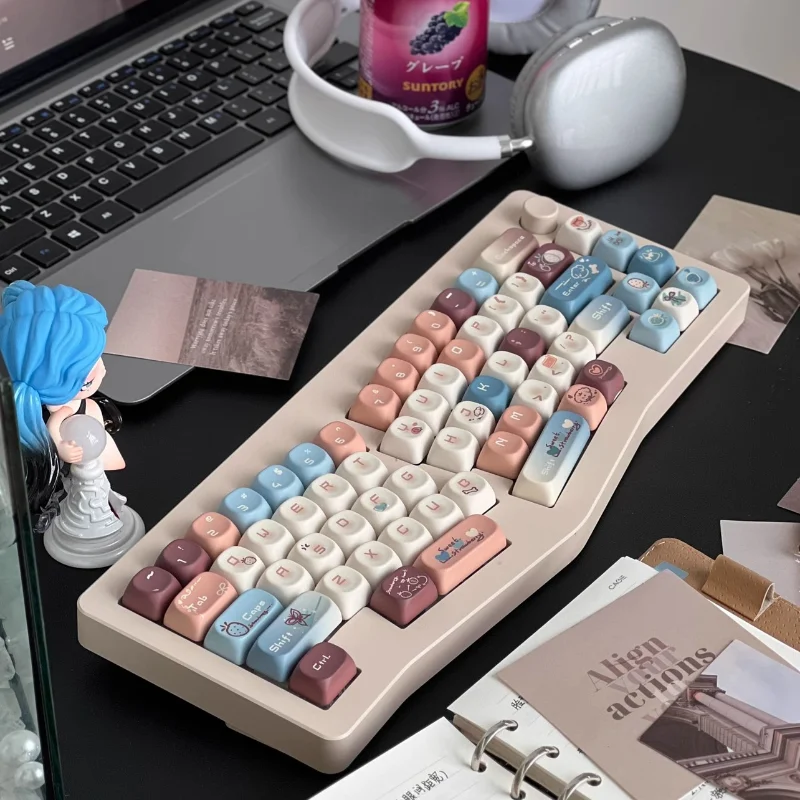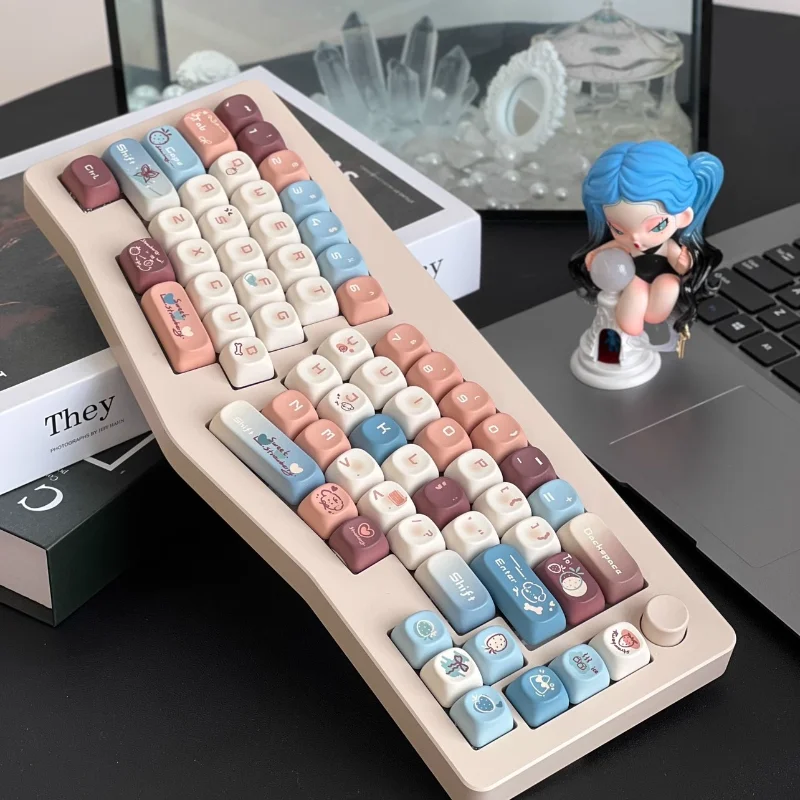 MiFuny-Juego de teclas estilo Maillard, teclas PBT simples y bonitas, teclas de perfil Noa para teclado mecánico, regalo personalizado de dibujos animados para juegos