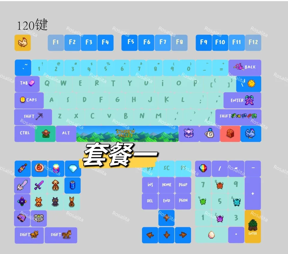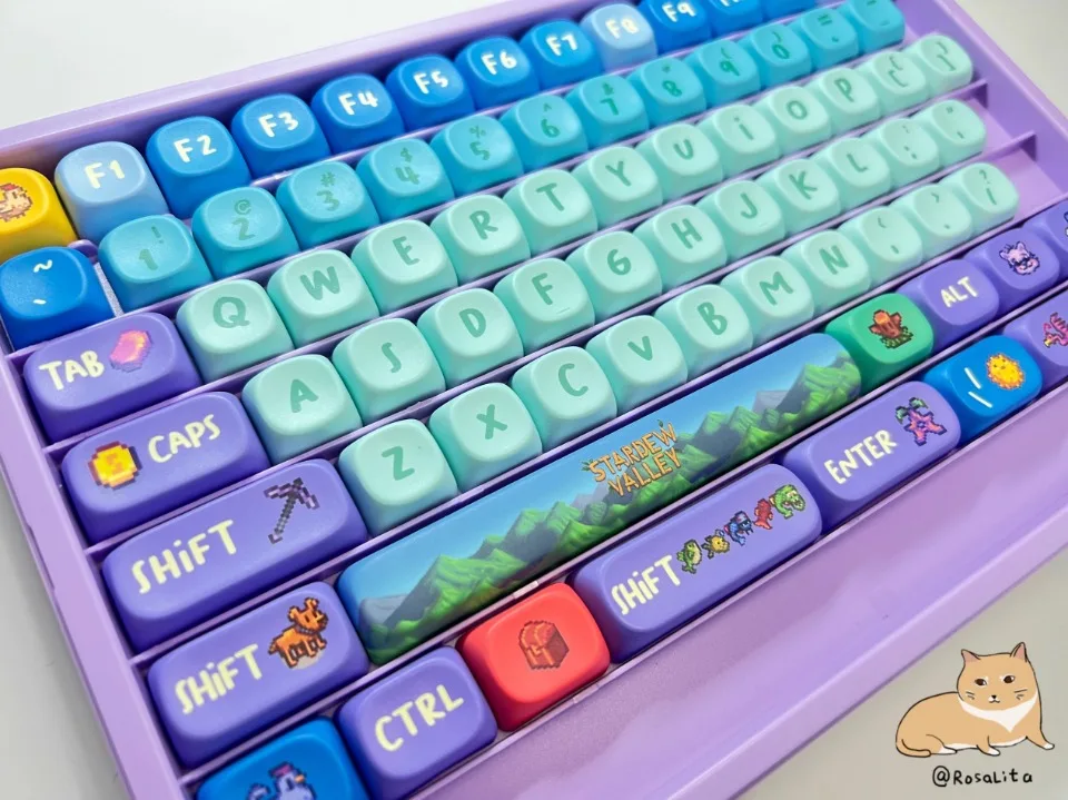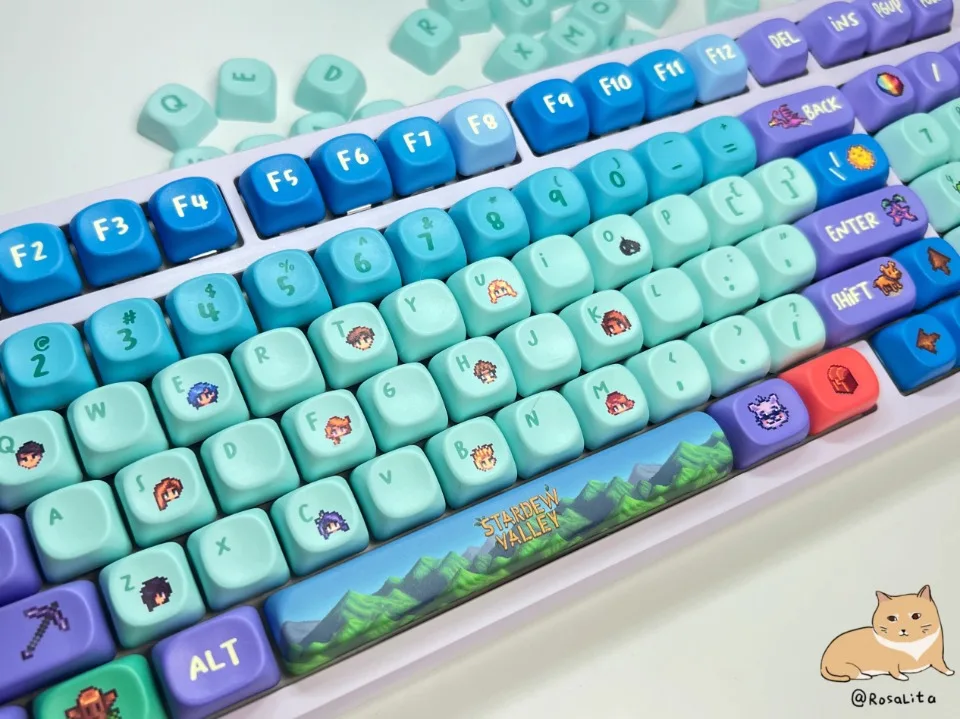 Juego de teclas estilo Pixel, tapa de teclado Stardew Valley personalizada PBT de 120 teclas, tapa de tecla de perfil MOA para teclado mecánico, regalo