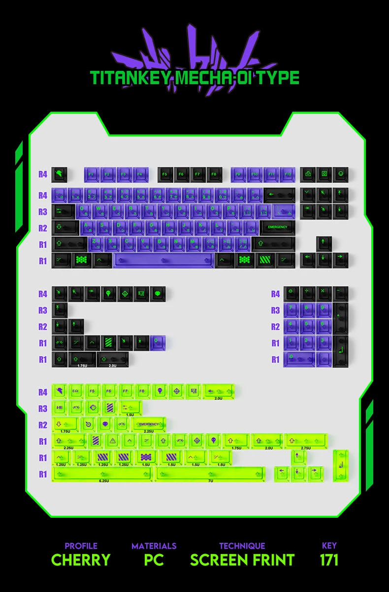 Juego de teclas EVA-01 totalmente transparente para PC, 171 teclas, alta transparencia y resistentes al desgaste, teclas originales de altura de fábrica