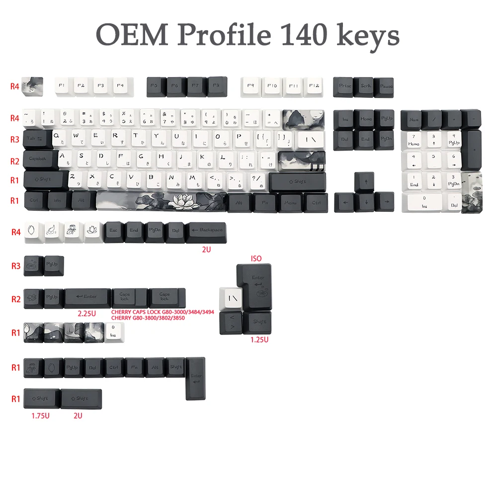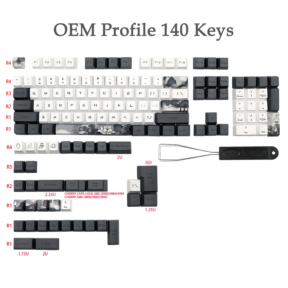 Número de teclas: 140 teclas, incluye cambio 1,75U 2U, barra espacial de 6,25U