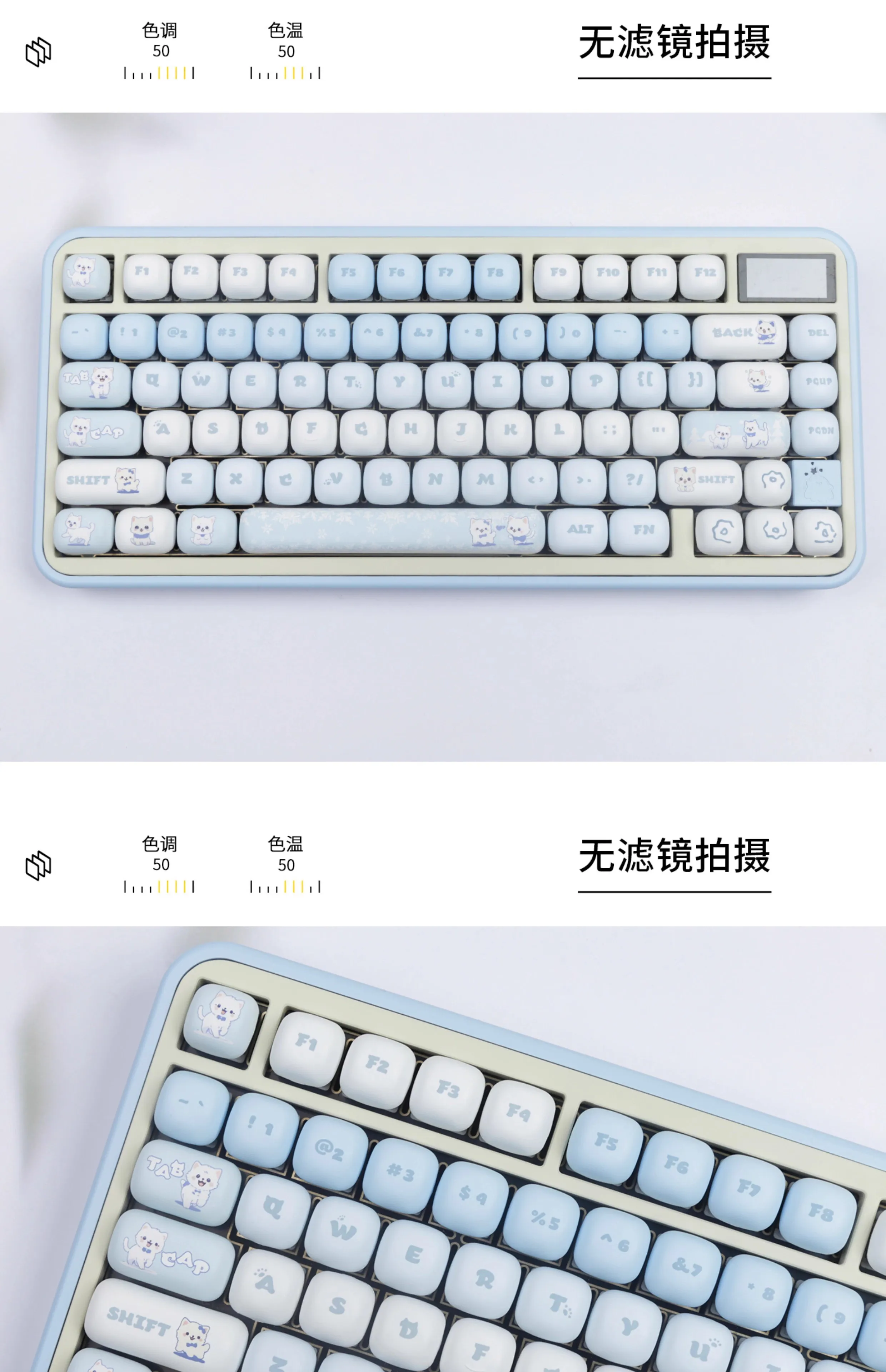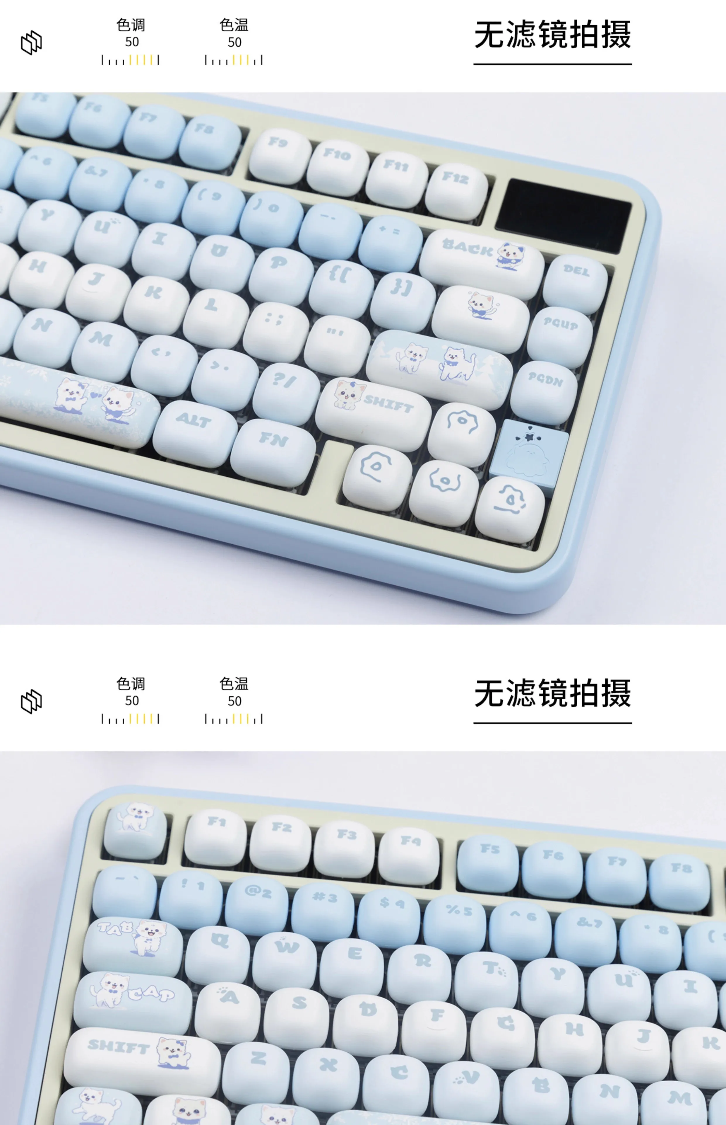 Juego de teclas de gato azul MOG, altura Circular, eje magnético, Teclado mecánico para juegos, sublimación MAC MU68 Fire 68 98 99 104108