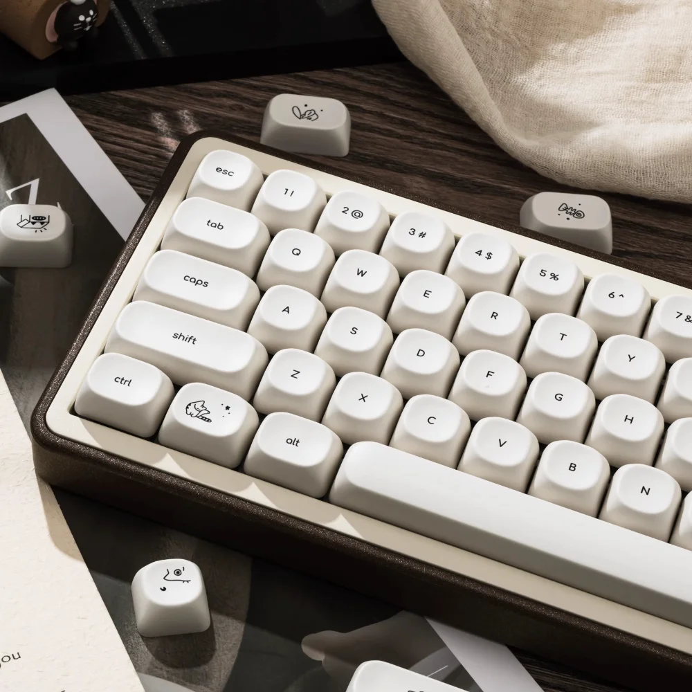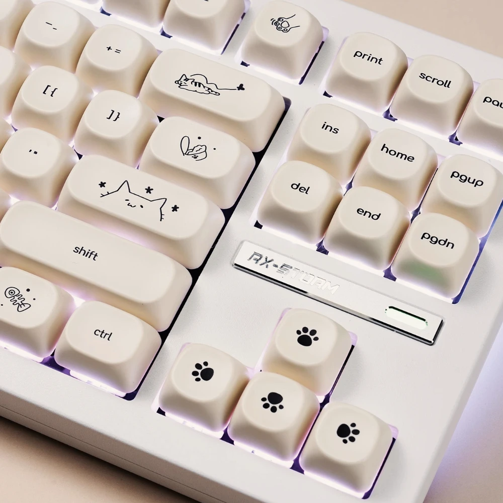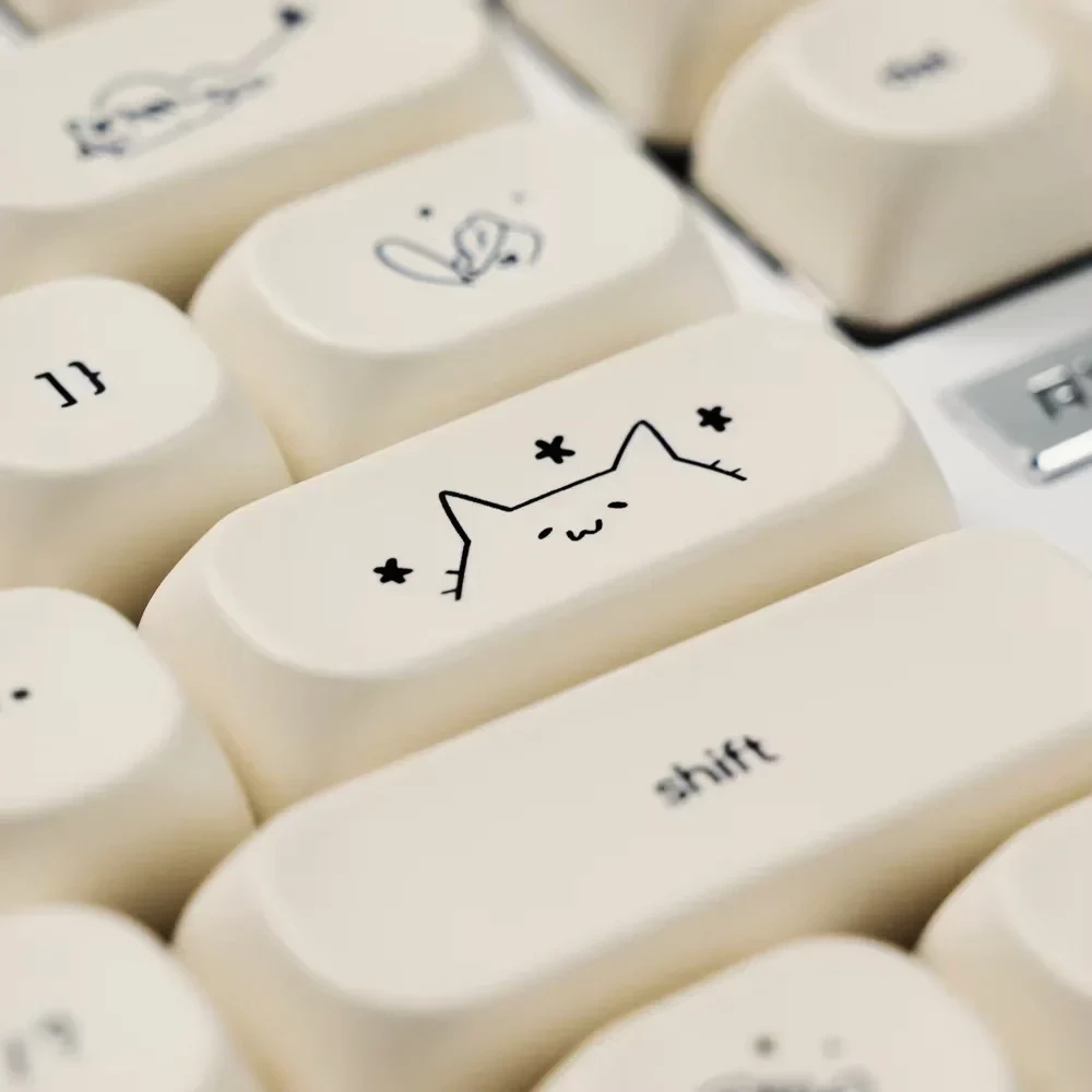 Happy kitty cat keycap set PBT heat sublimation 124 keys MOA height milky white For MX switch 60/84/90/104/108 layout mechanical keyboards