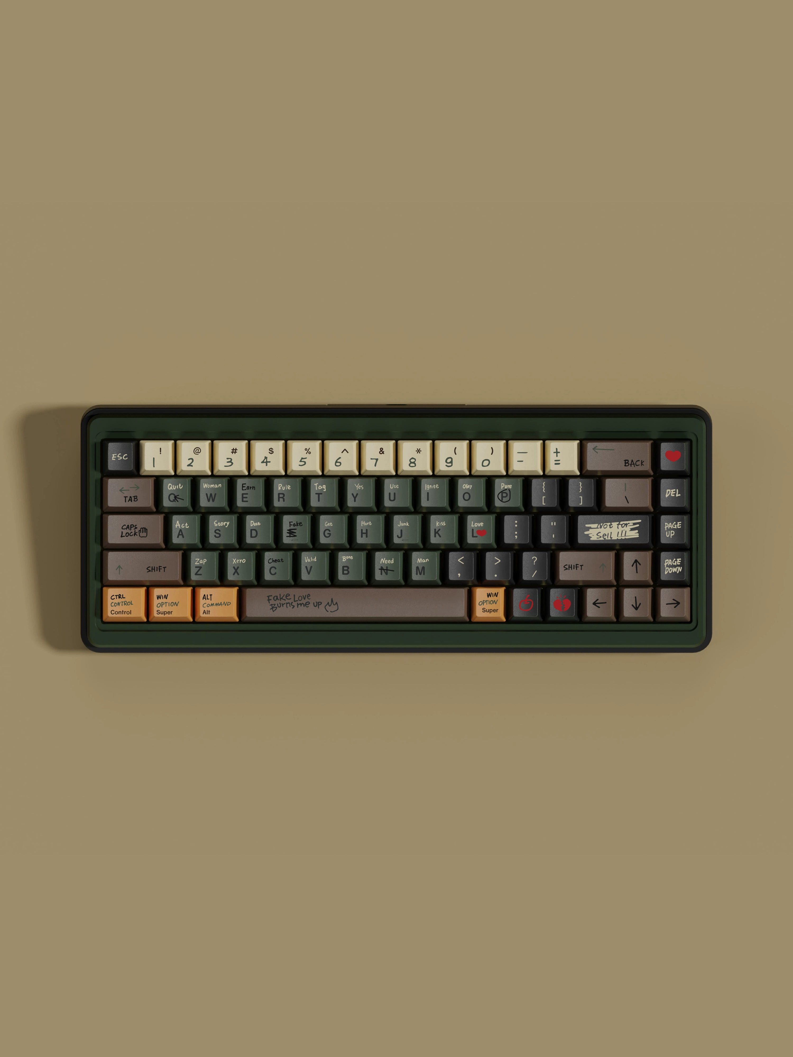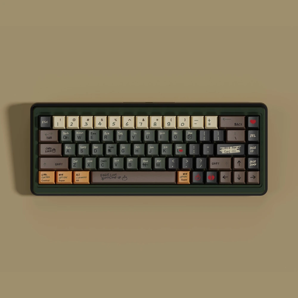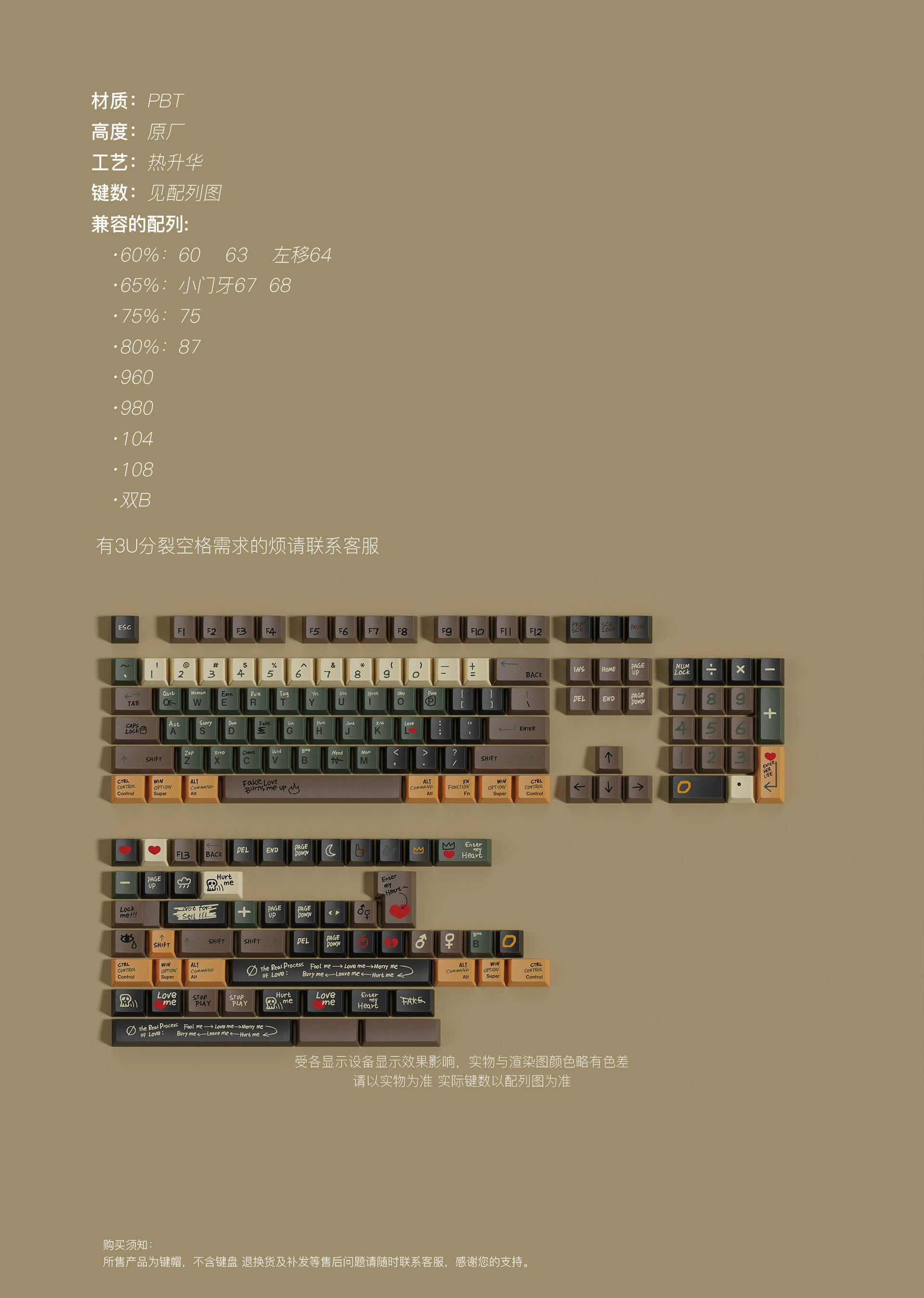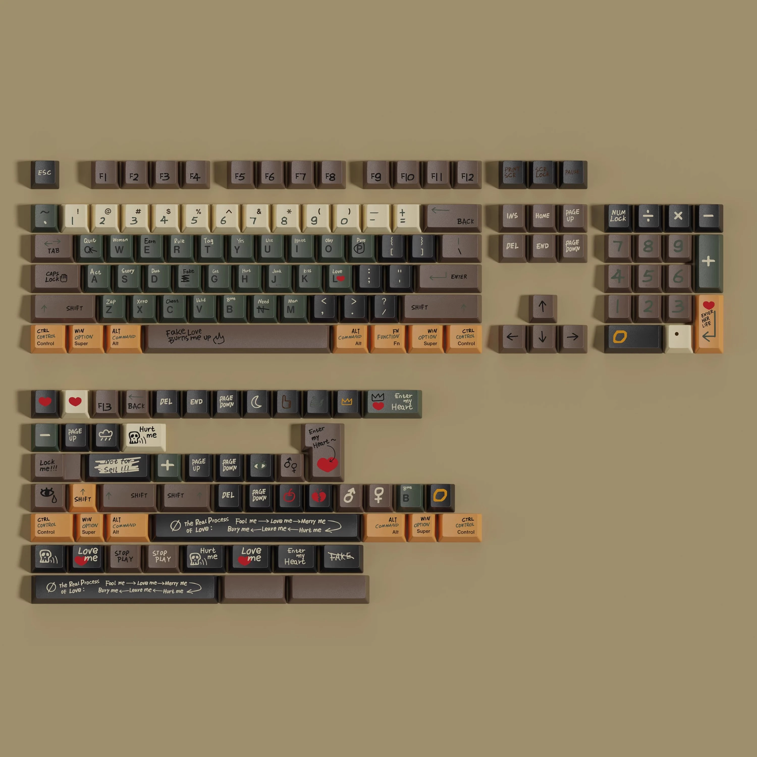 Juego de teclas Love Story, teclas PBT con subcama de tinte a prueba de luz, teclas de perfil de cereza para teclado MX Switch, barra espaciadora dividida, doble B, 1 Juego