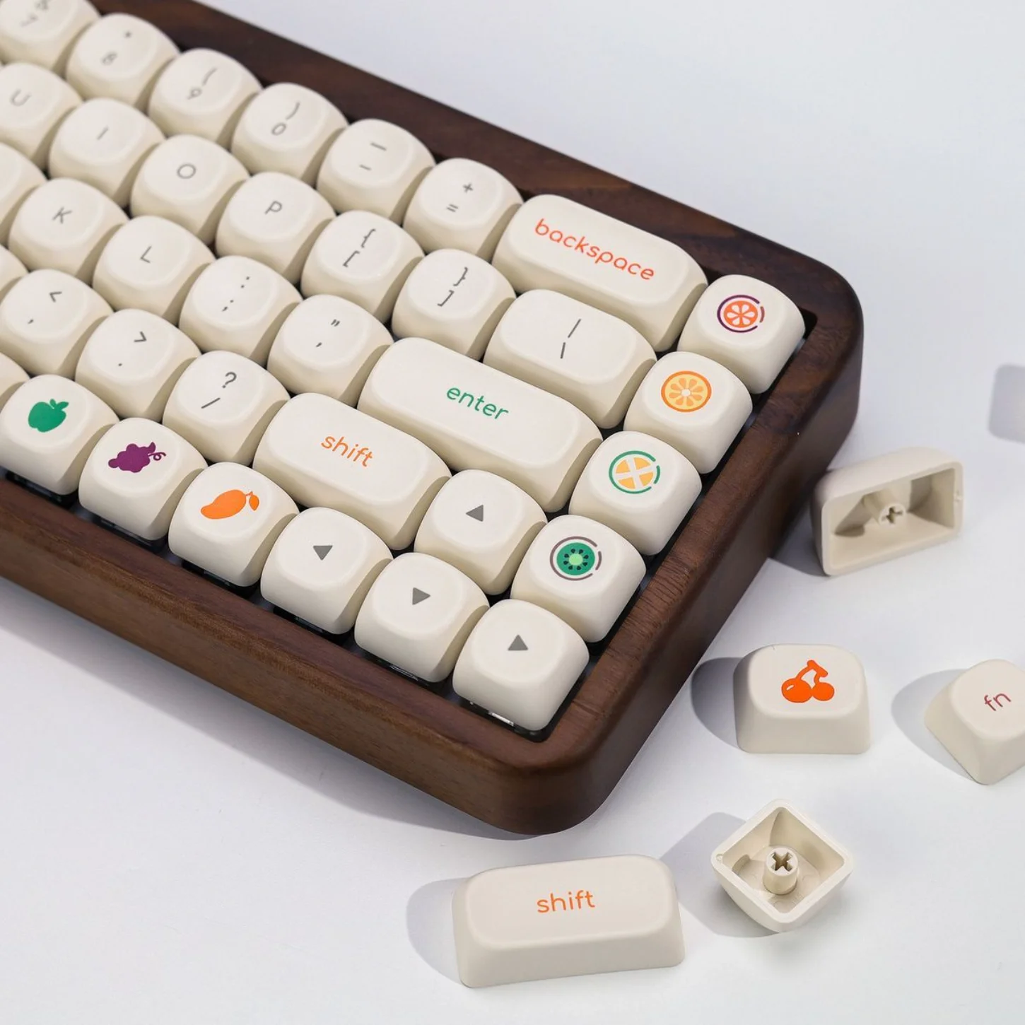 Comprar Juego de teclas MOA de melocotón y fruta, teclas PBT de 130 teclas, color blanco leche, teclas simples adecuadas para teclado mecánico 60/64/84/98/108