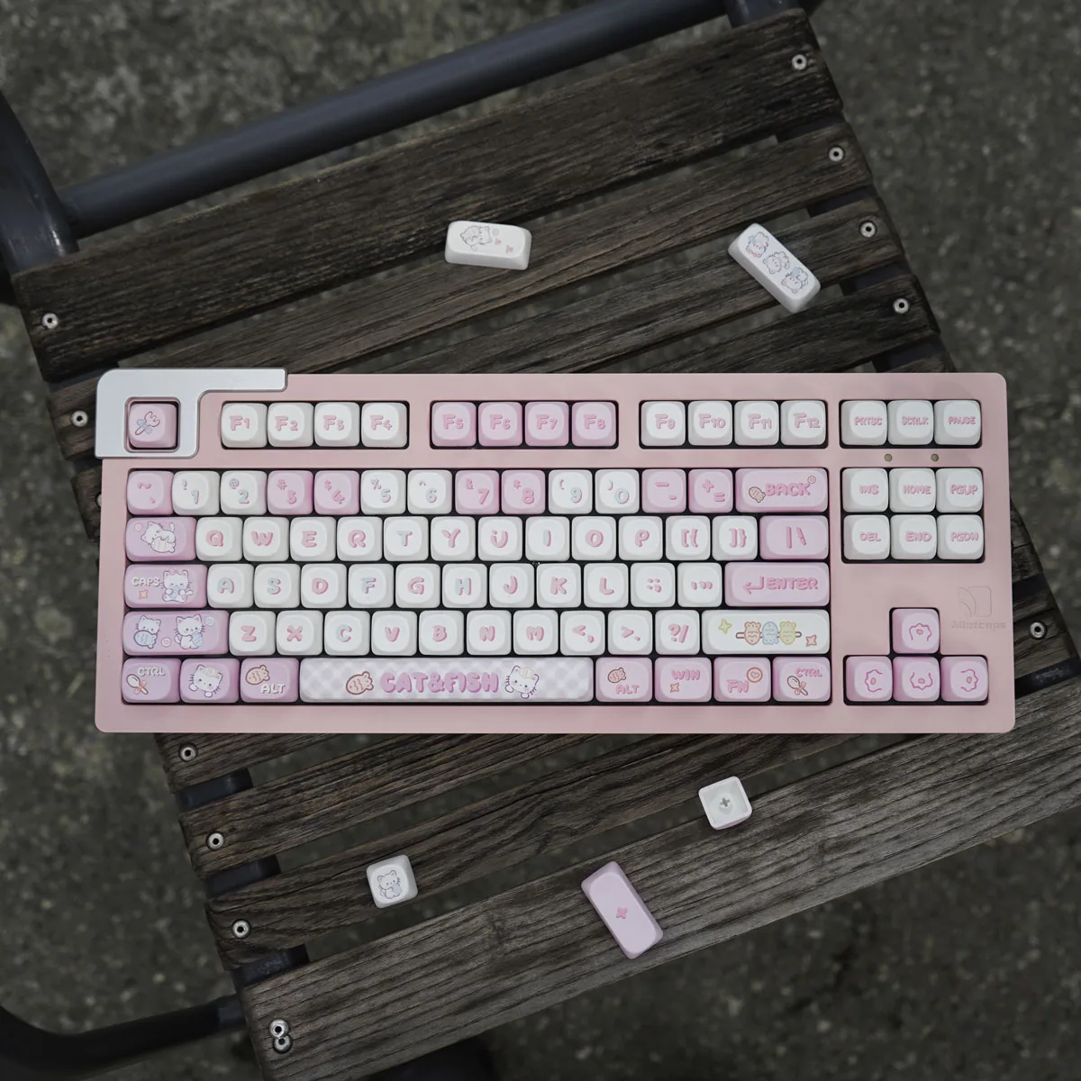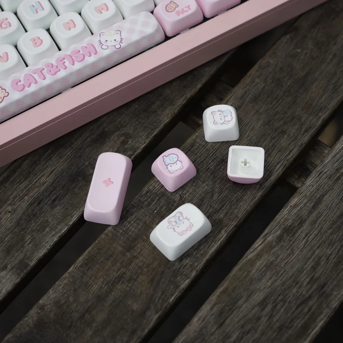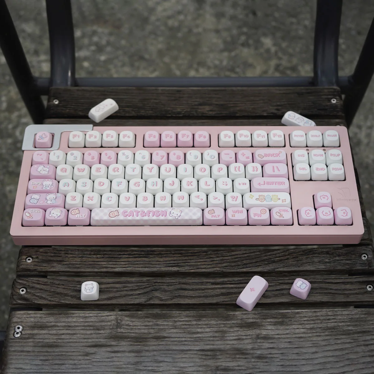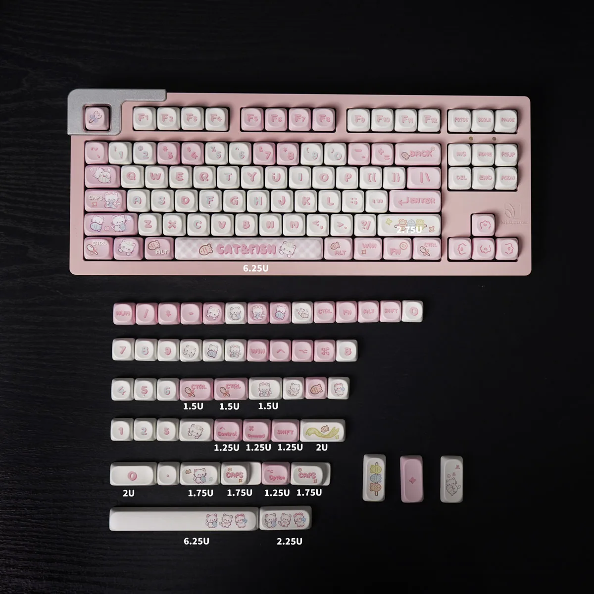 Comprar Juego de teclas MOA PBT 140 teclas de gatito y Fish Story Girl para teclado mecánico 60/64/84/98/108 interruptor MX