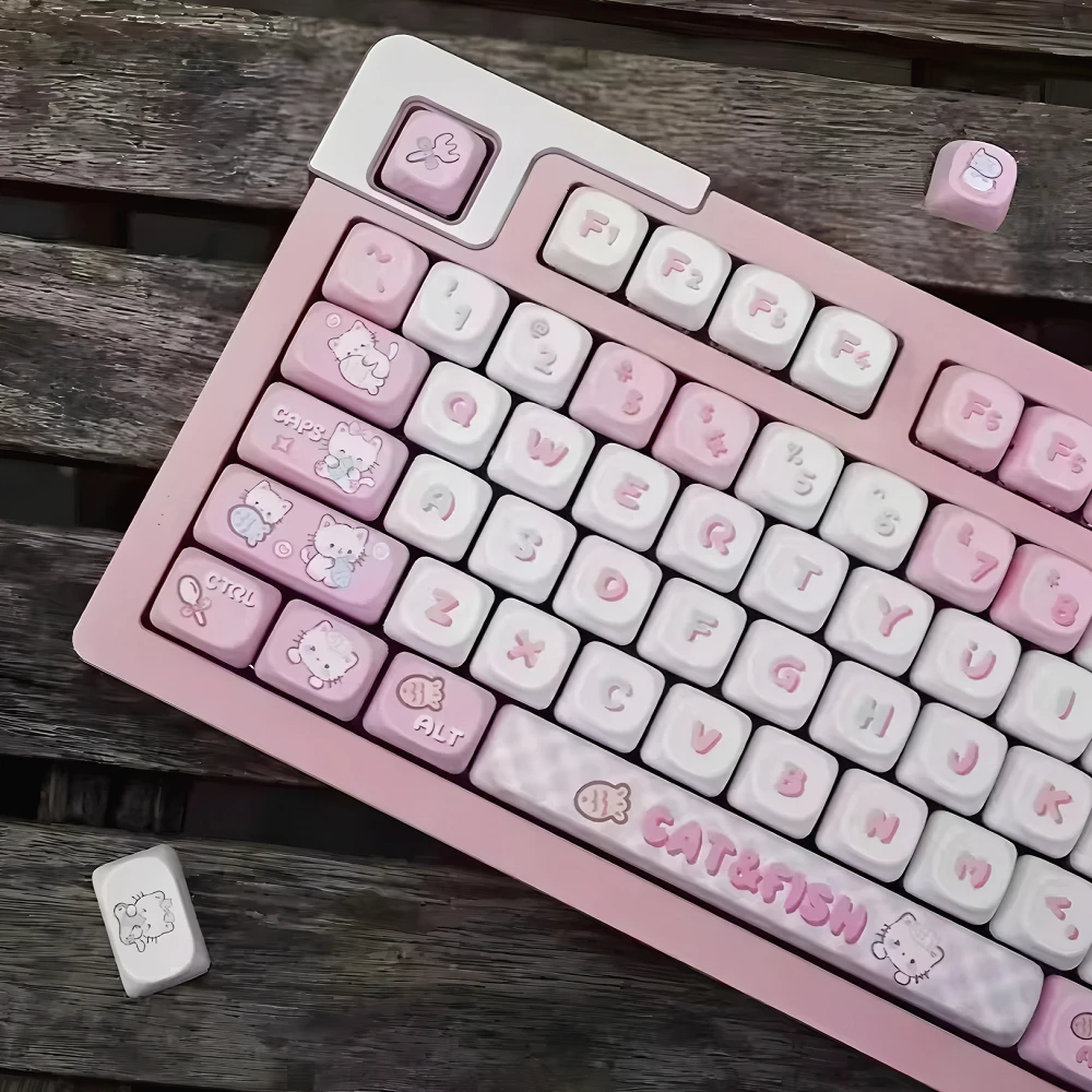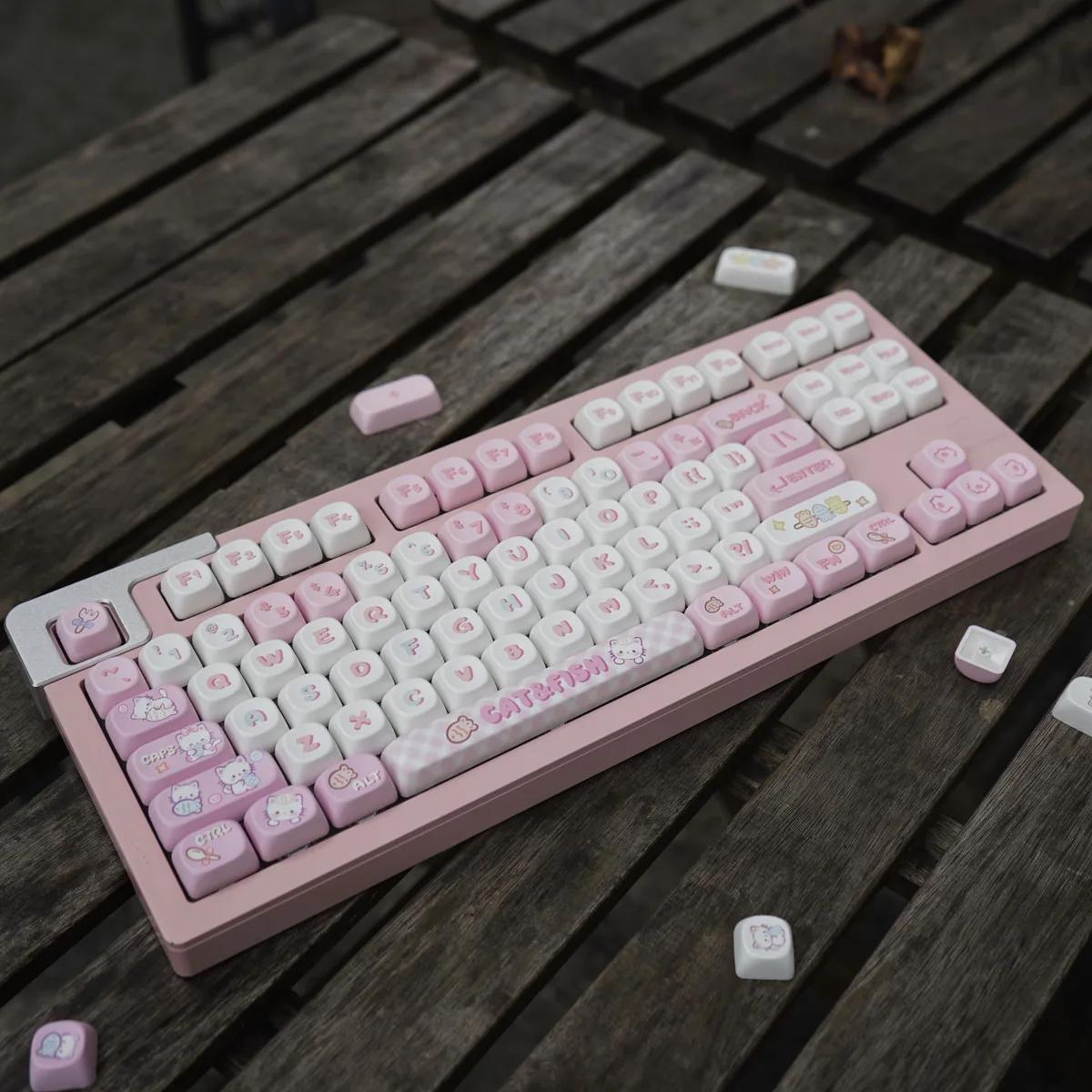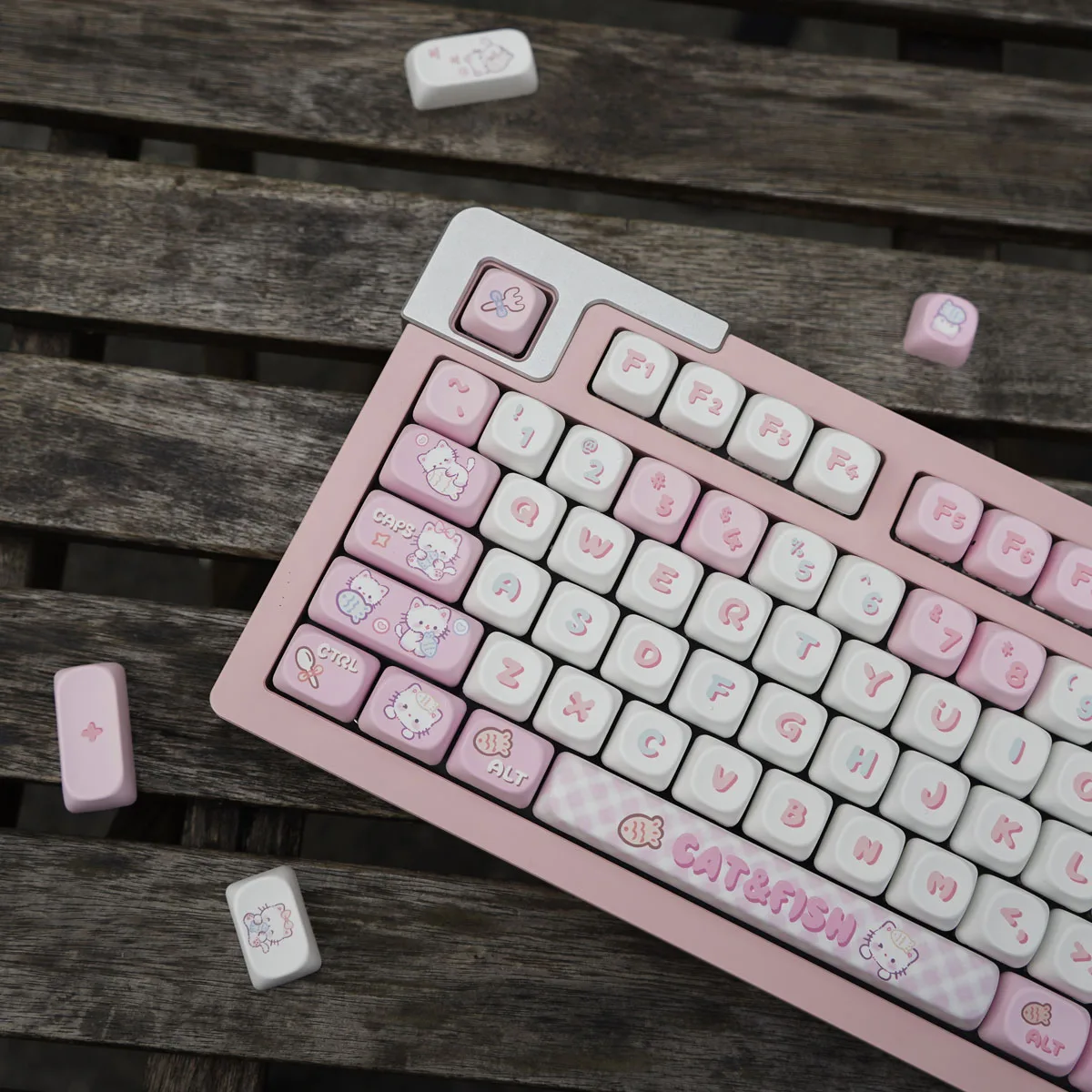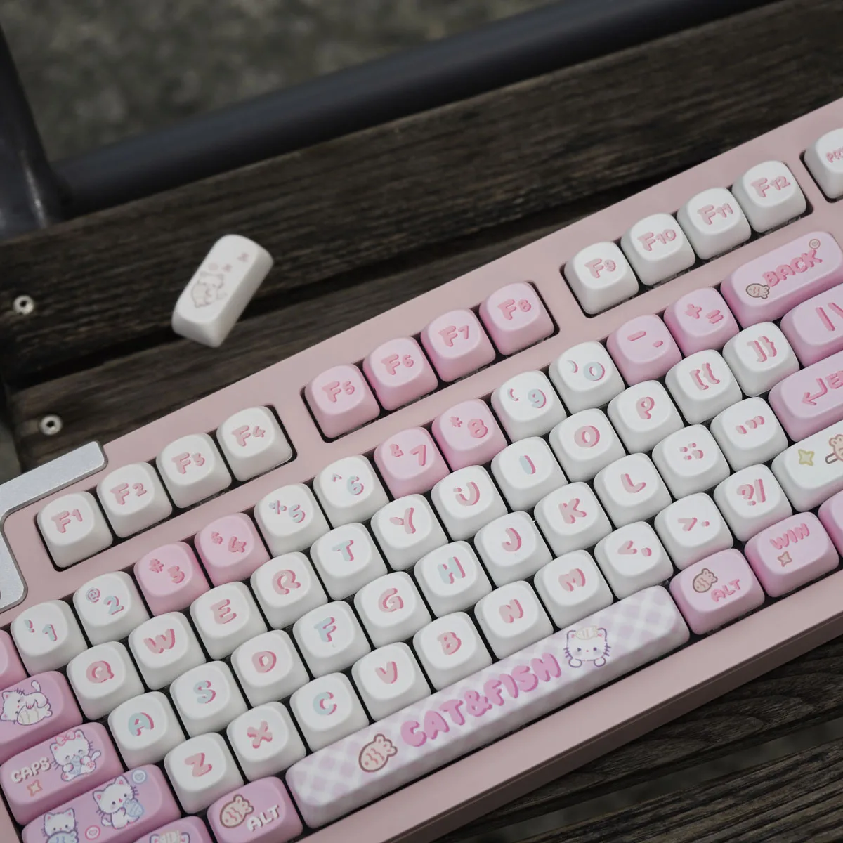 Comprar Juego de teclas MOA PBT 140 teclas de gatito y Fish Story Girl para teclado mecánico 60/64/84/98/108 interruptor MX