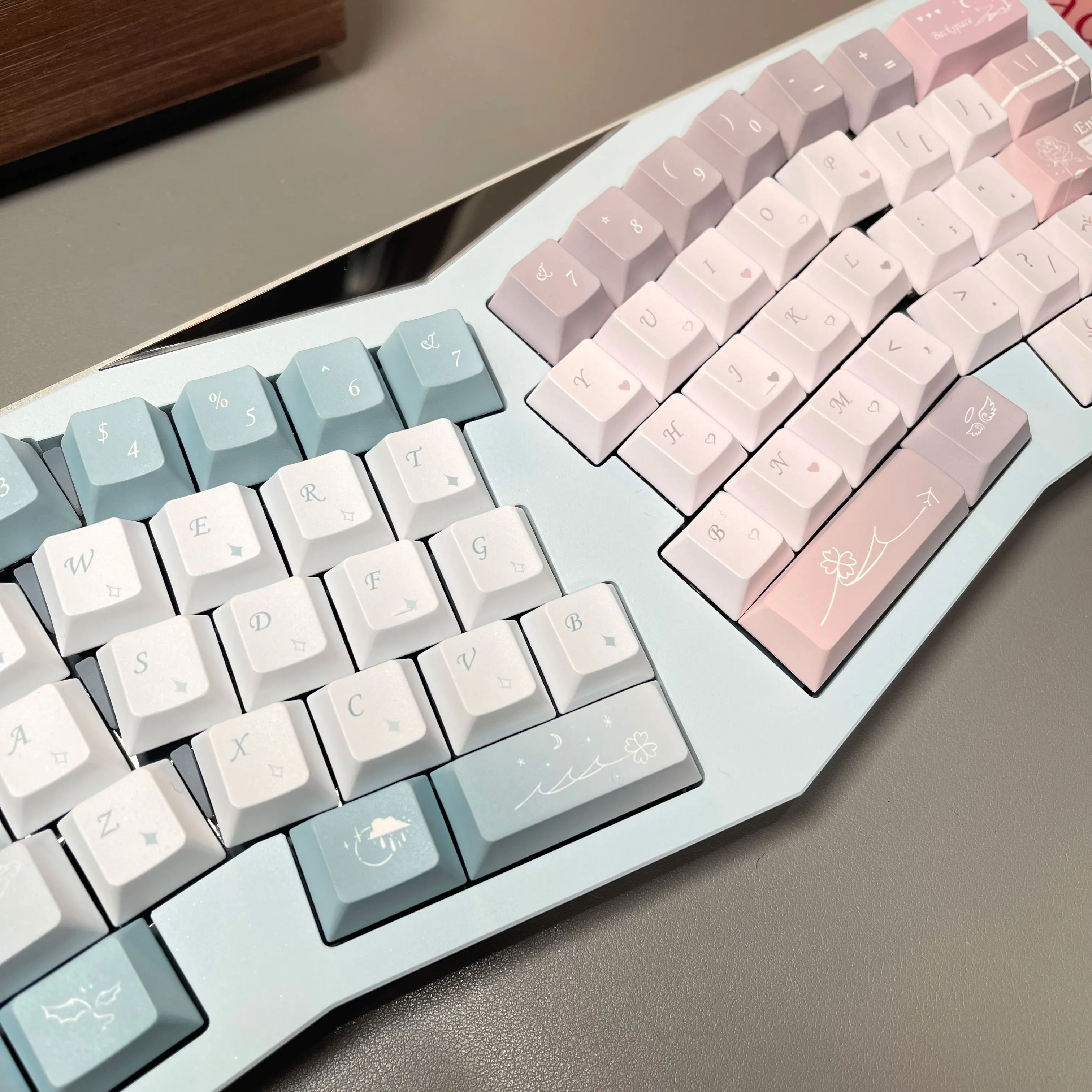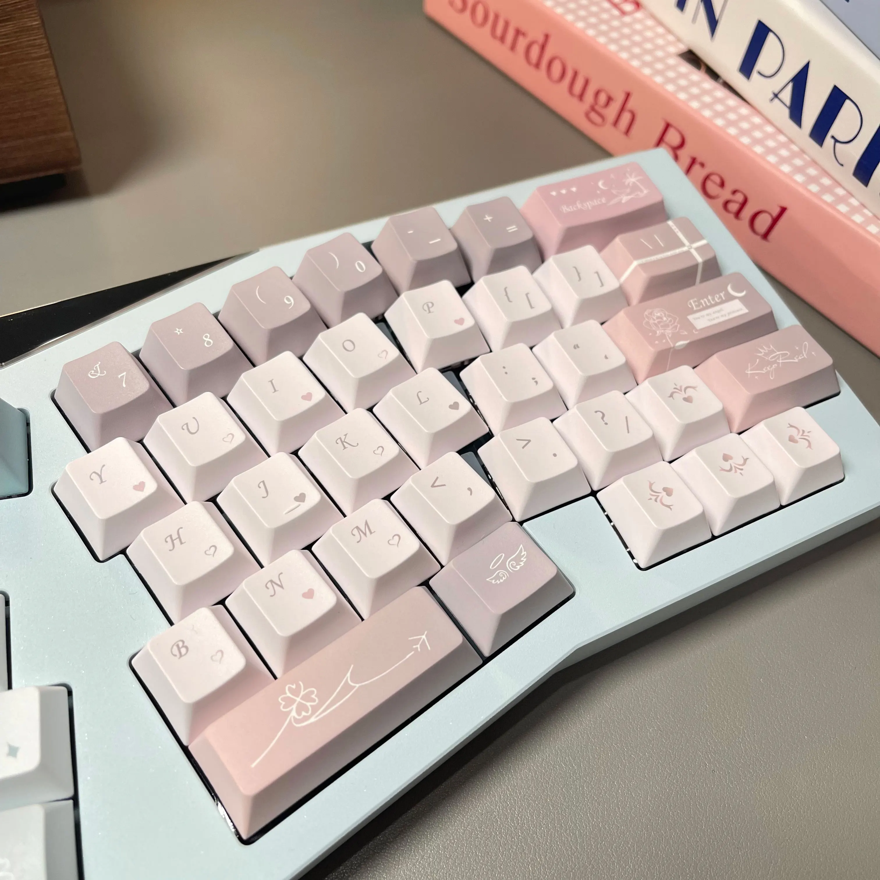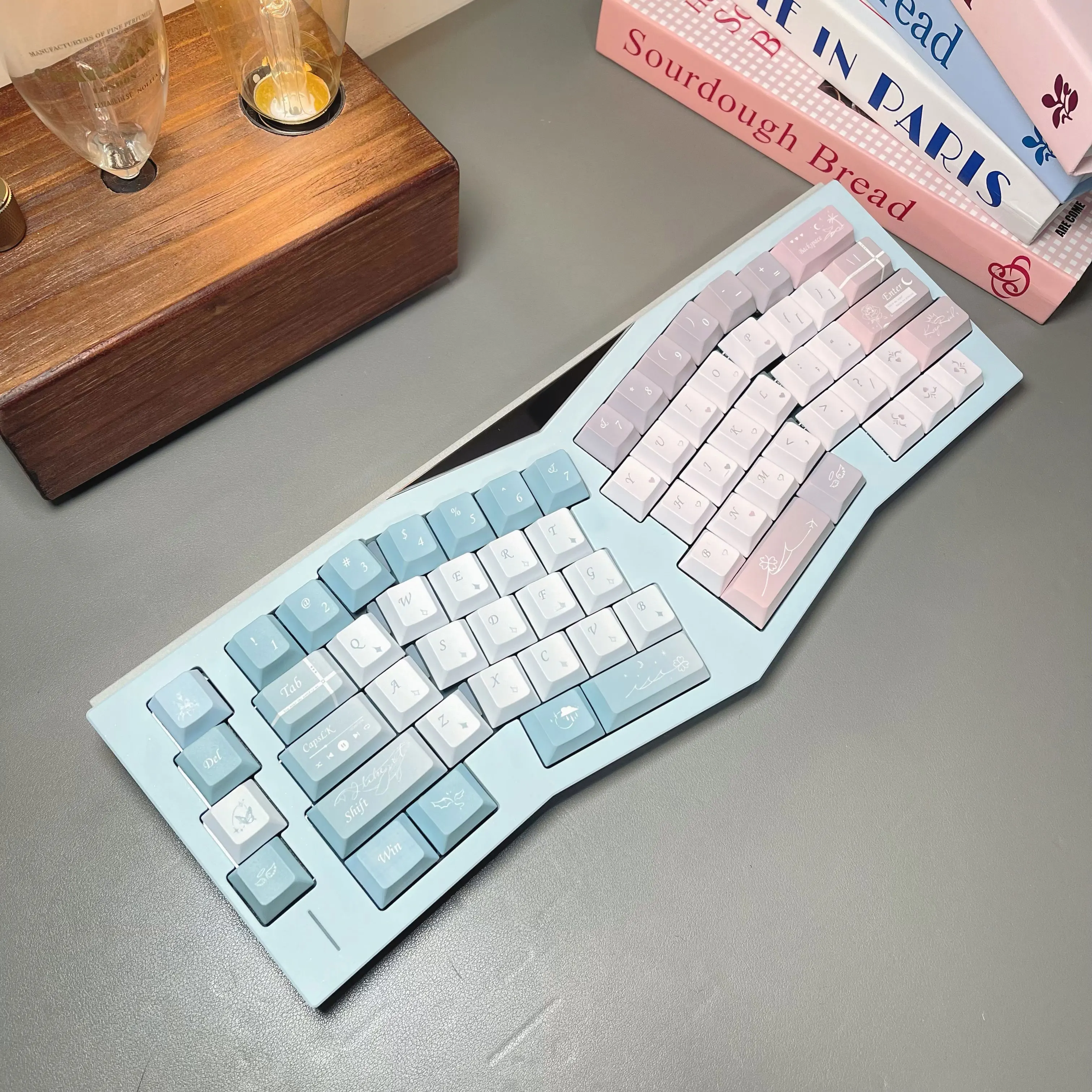 Comprar Juego de teclas moradas degradadas con perfil de cereza, bonitas teclas MOA DYE-SUB PBT para teclado mecánico MX 61/64/68/87/88/99/104