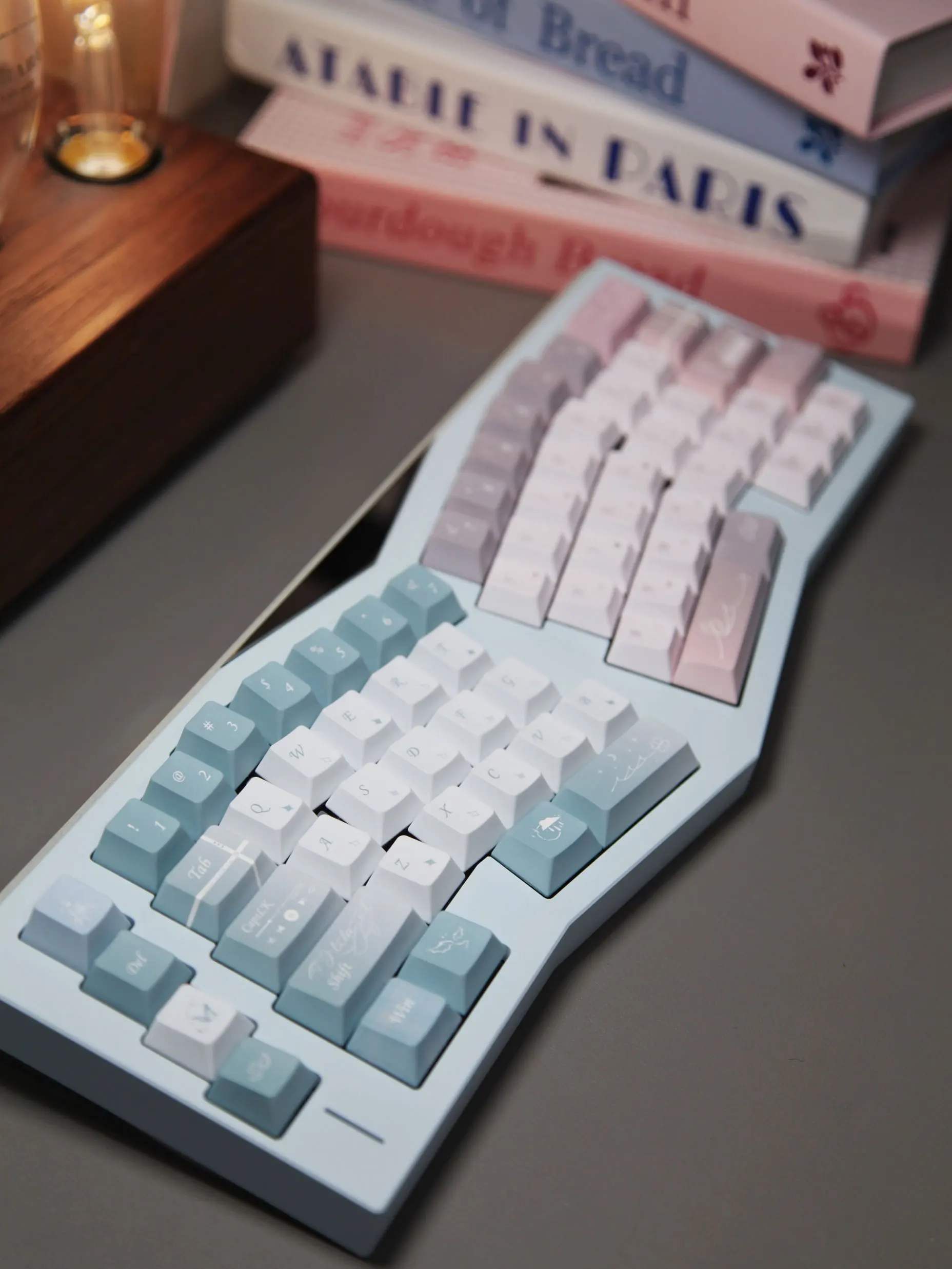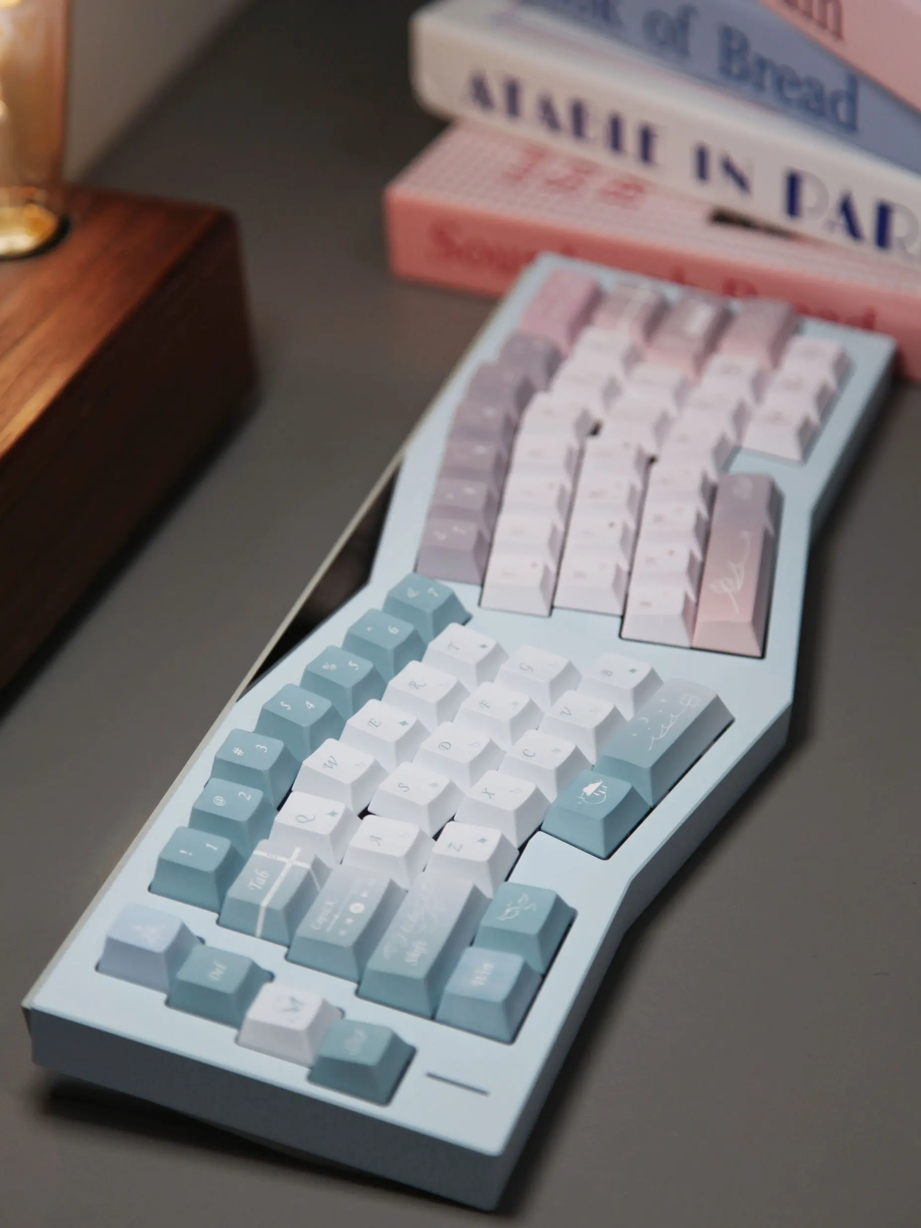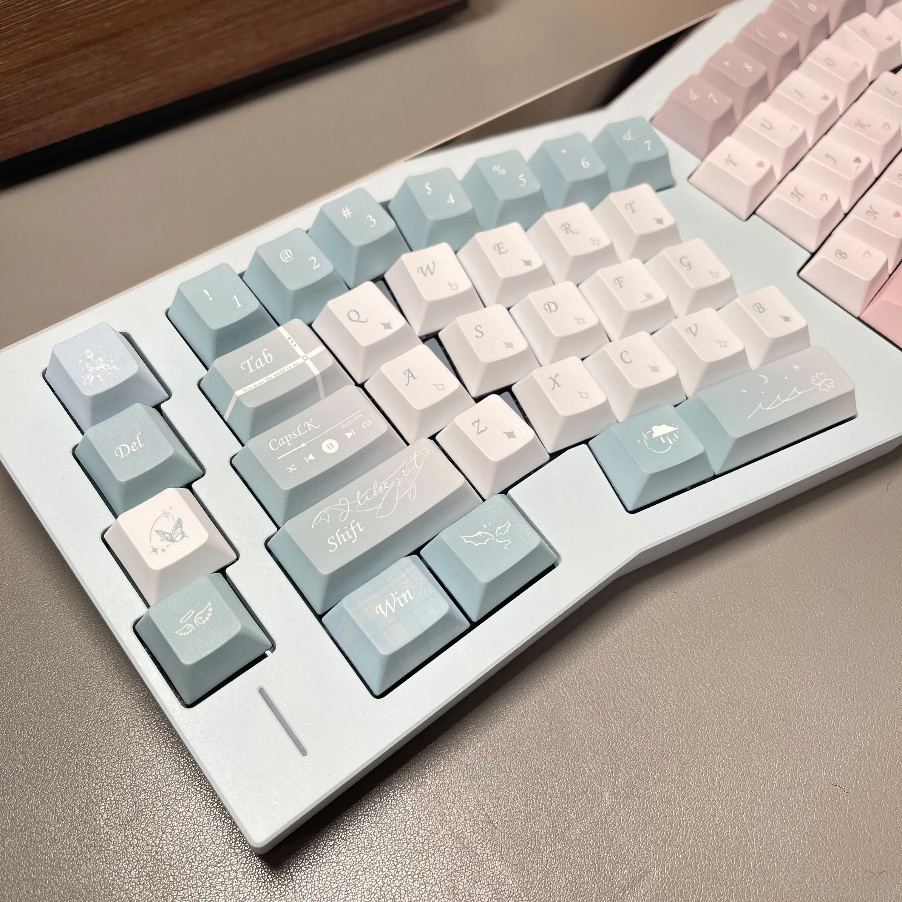 Comprar Juego de teclas moradas degradadas con perfil de cereza, bonitas teclas MOA DYE-SUB PBT para teclado mecánico MX 61/64/68/87/88/99/104