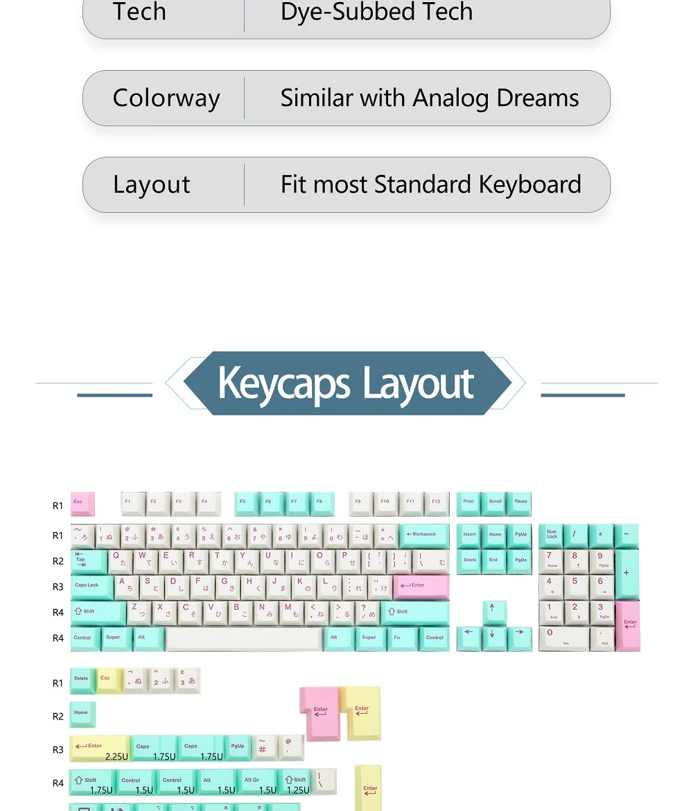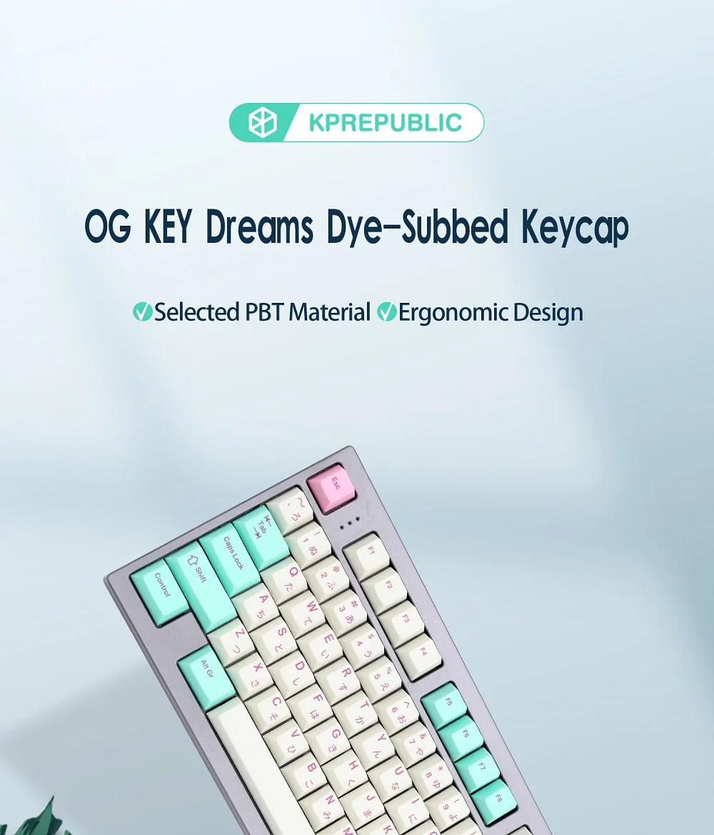 Comprar Juego de teclas OG Dream Dye Sub PBT grueso para teclado gh60 87 tkl 104 ansi xd64 bm60 xd68 bm65 bm68 Beige cian analógico Dream