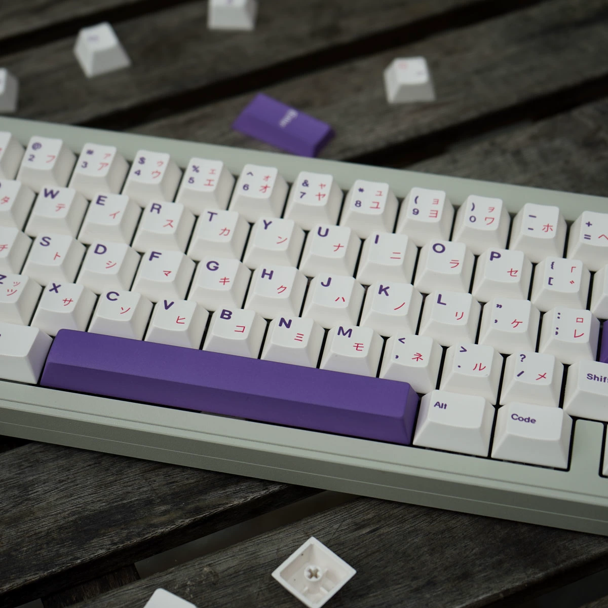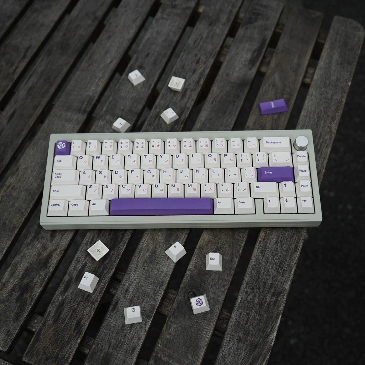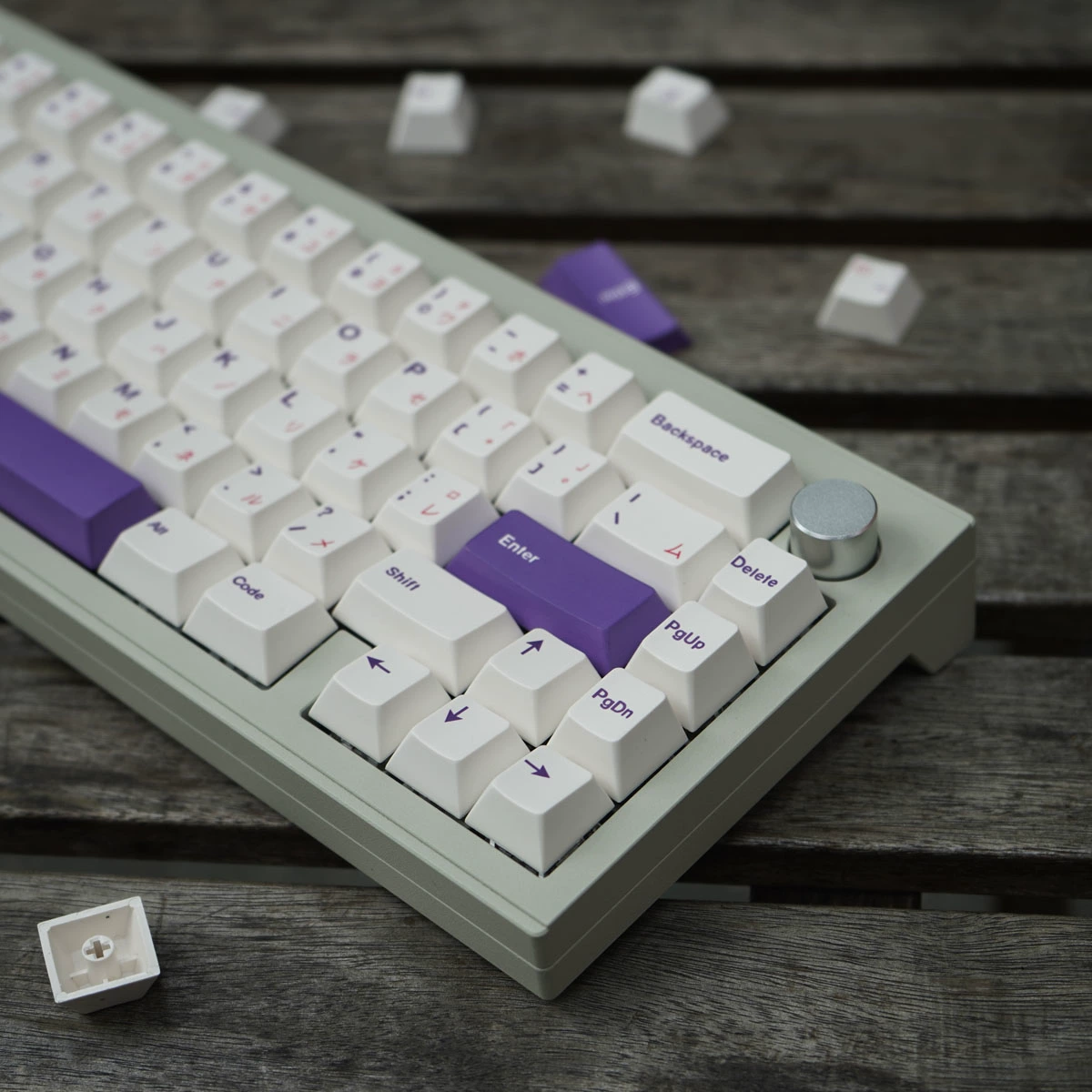 Total de 146 teclas, incluye 1.75U, cambio 2U, 1.5U ctrl alt, barra espaciadora ALICE (No se muestra en la imagen), Es compatible con 61 、 63 64 、 65 67 68 、 80 84 、 87 、 96 、 980 、 104 、 108, etc. diseño de teclado mecánico con interruptores MX