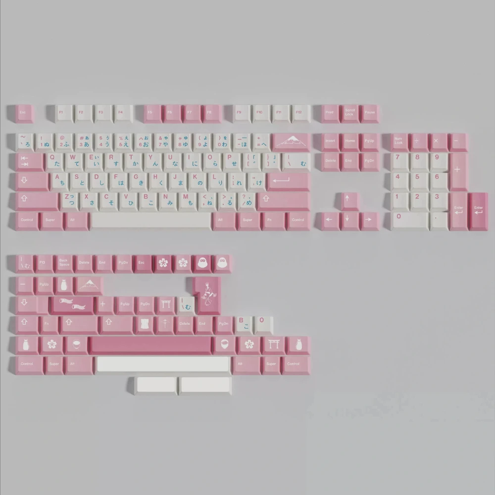 Comprar Juego de teclas PBT Sakura Pink, perfil de cereza, tapa de tecla de sublimación de tinte PBT para teclado mecánico MX 2.25U 2.75U, barra espaciadora dividida