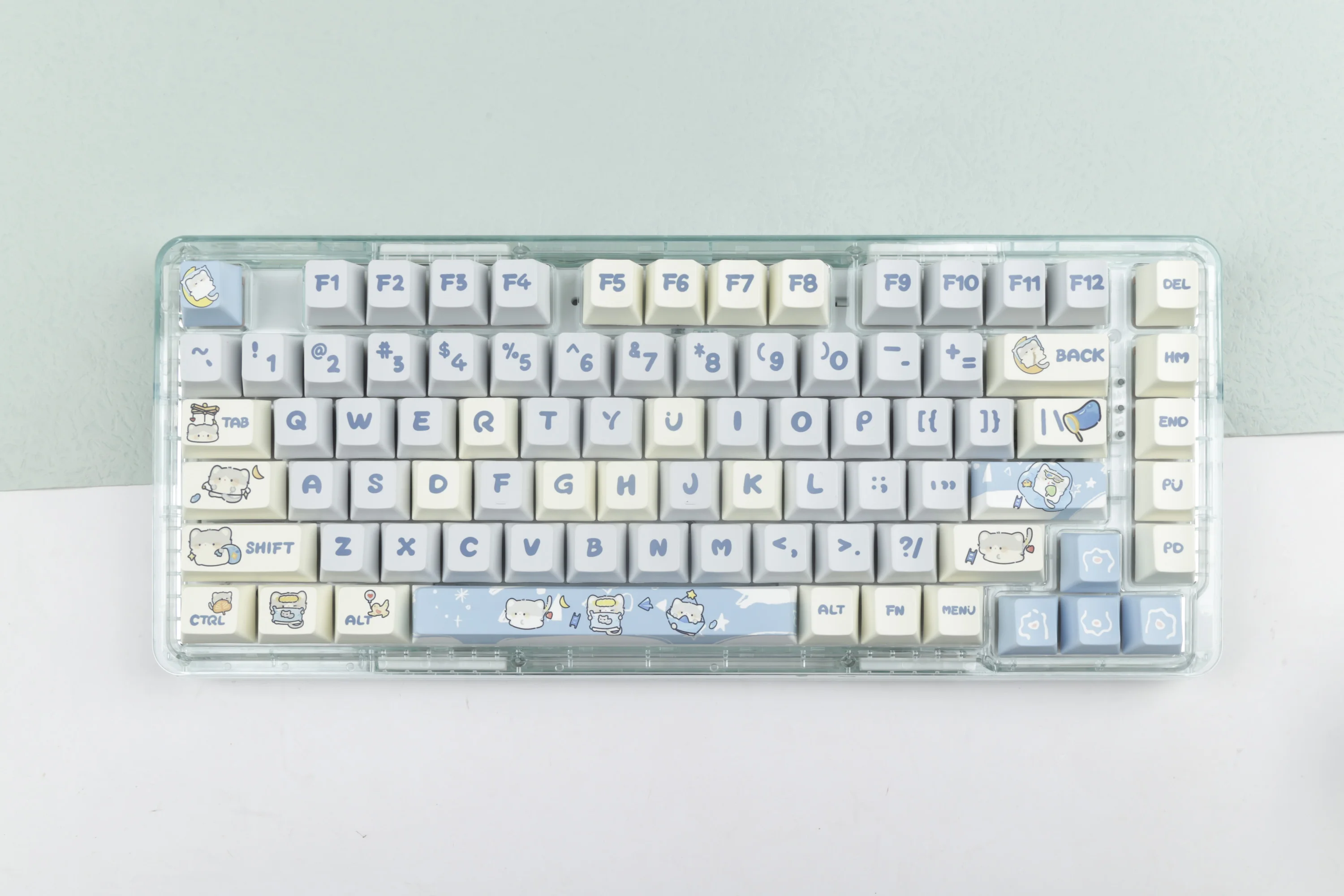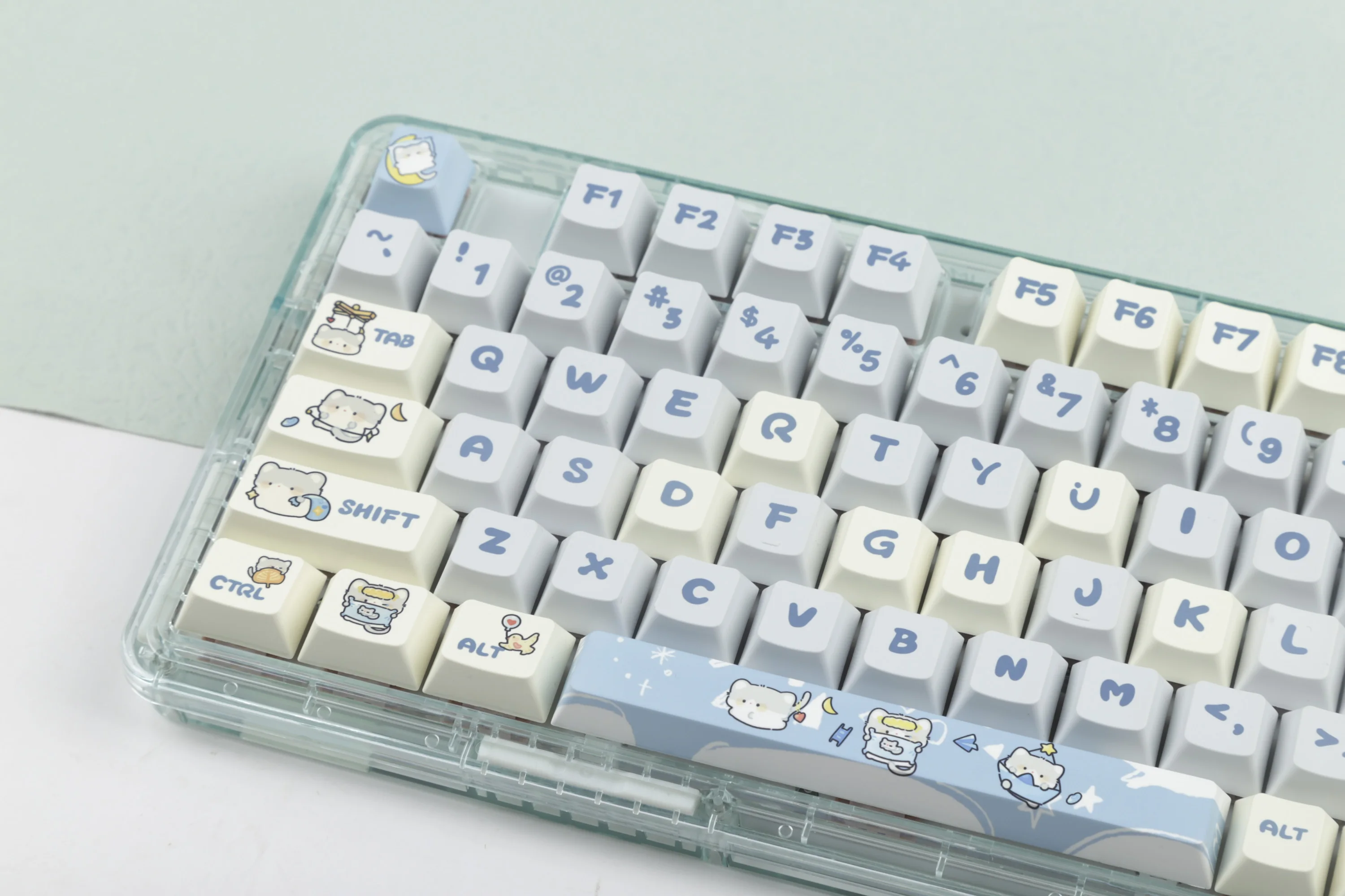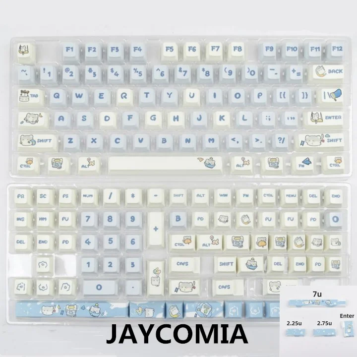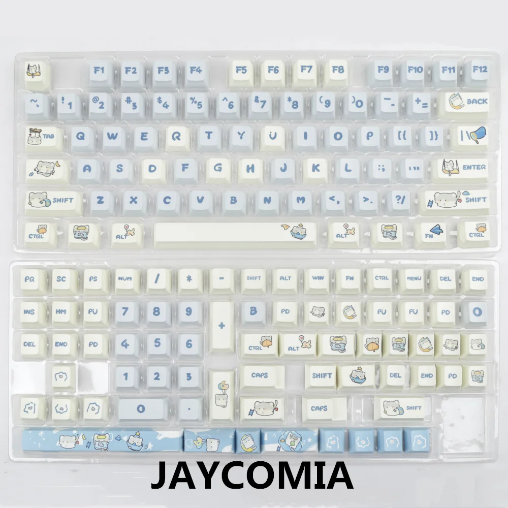 Comprar Juego de teclas PBT para teclado mecánico Cherry MX Switch, Set de 145 teclas, perfil Cherry DYE-SUB Daydream cat Fresh Blue White