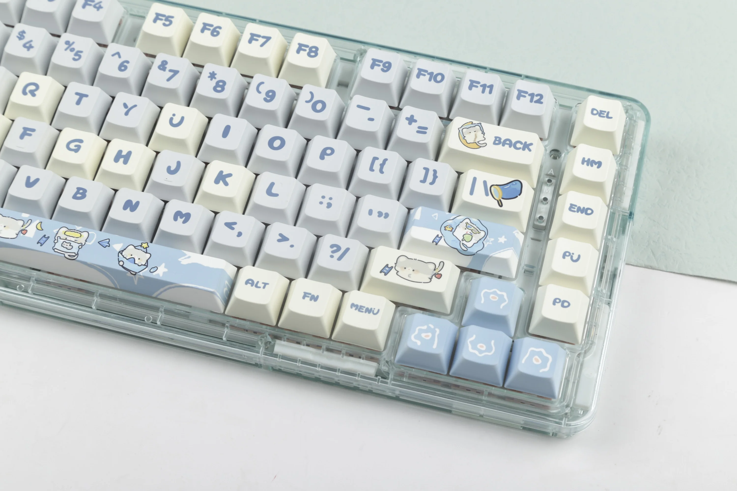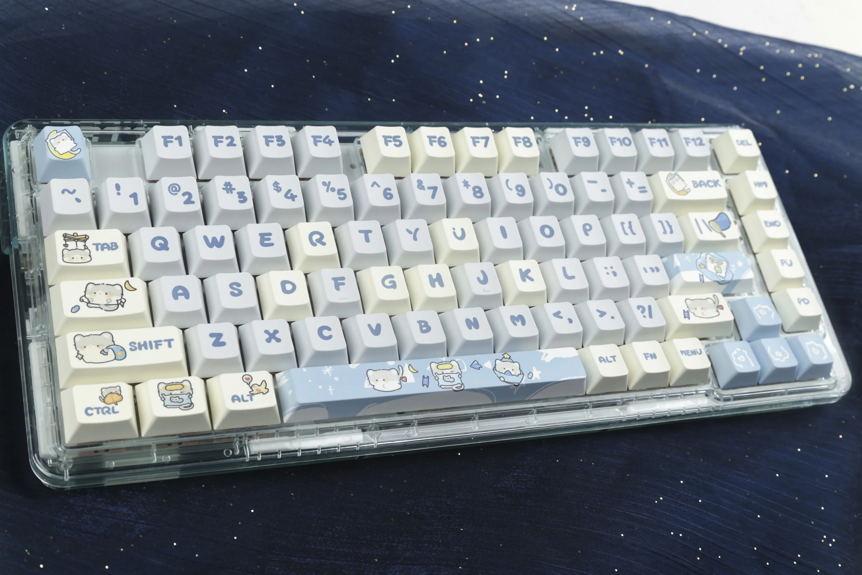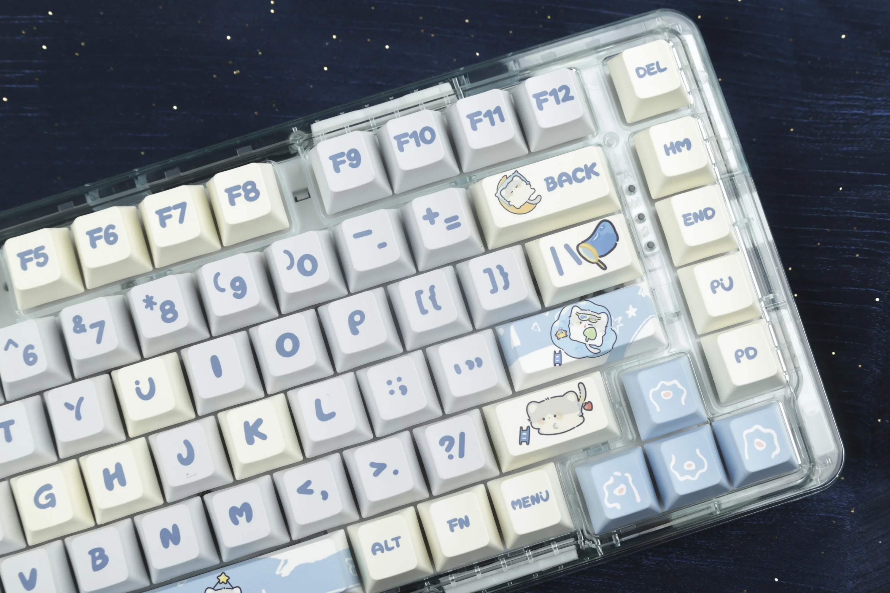 Comprar Juego de teclas PBT para teclado mecánico Cherry MX Switch, Set de 145 teclas, perfil Cherry DYE-SUB Daydream cat Fresh Blue White