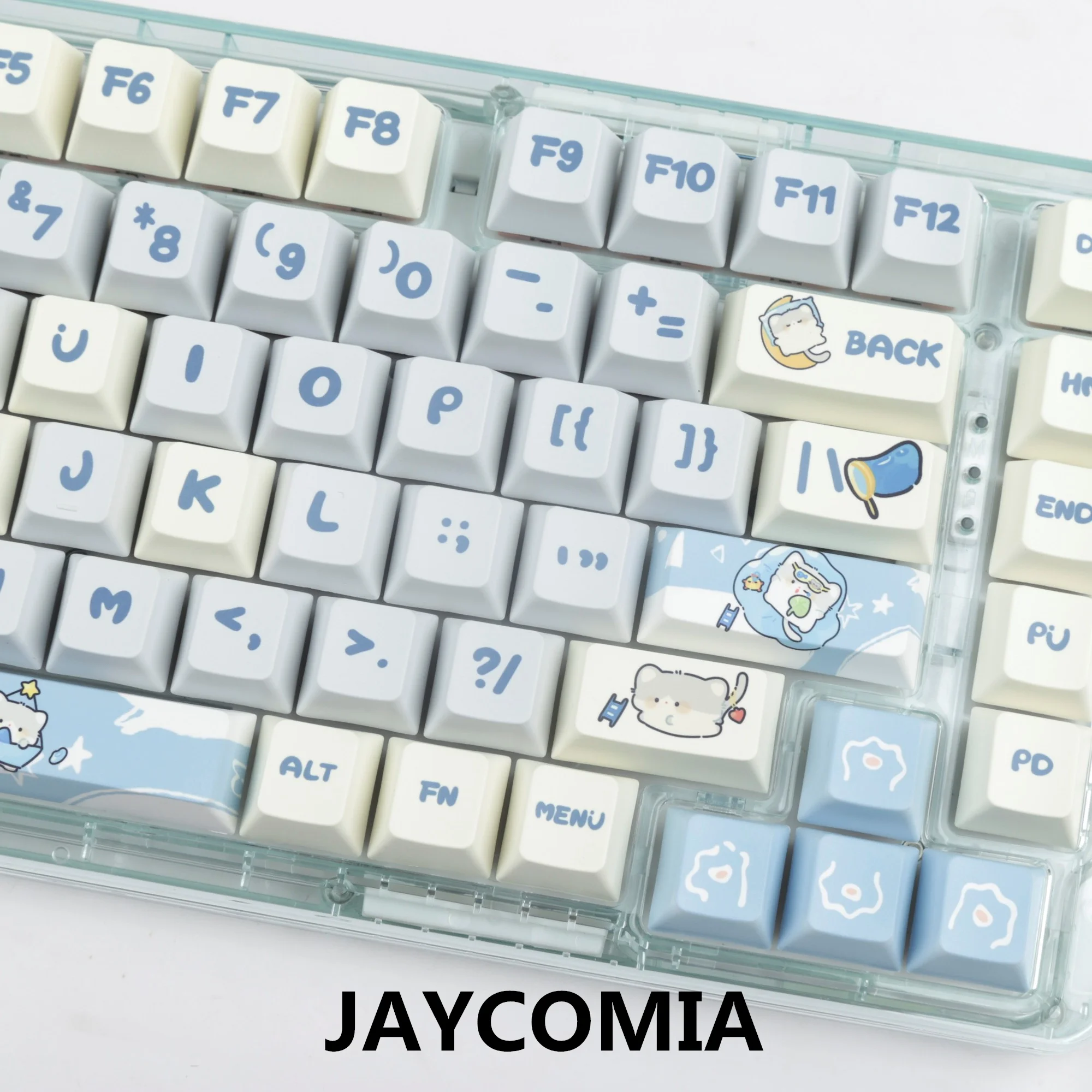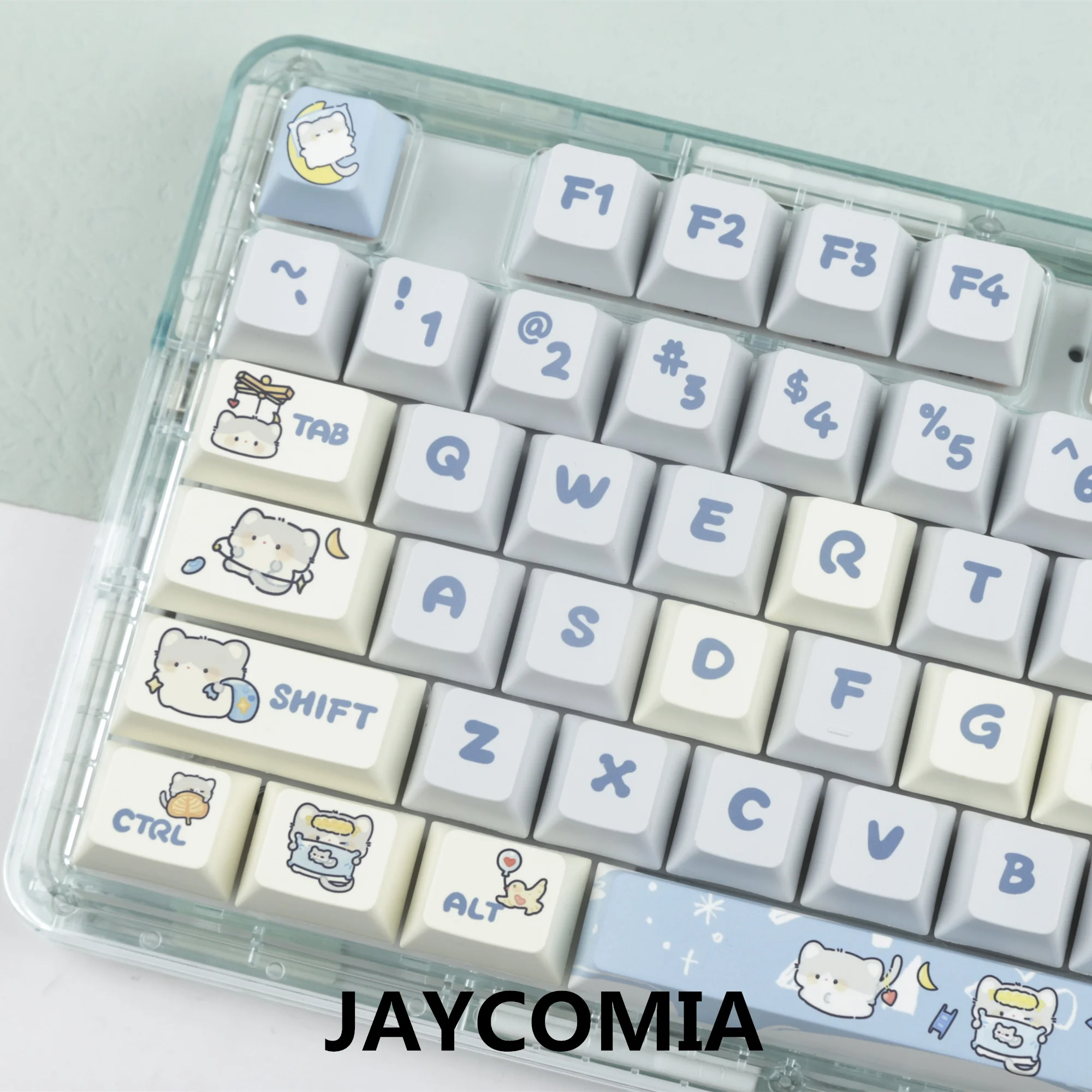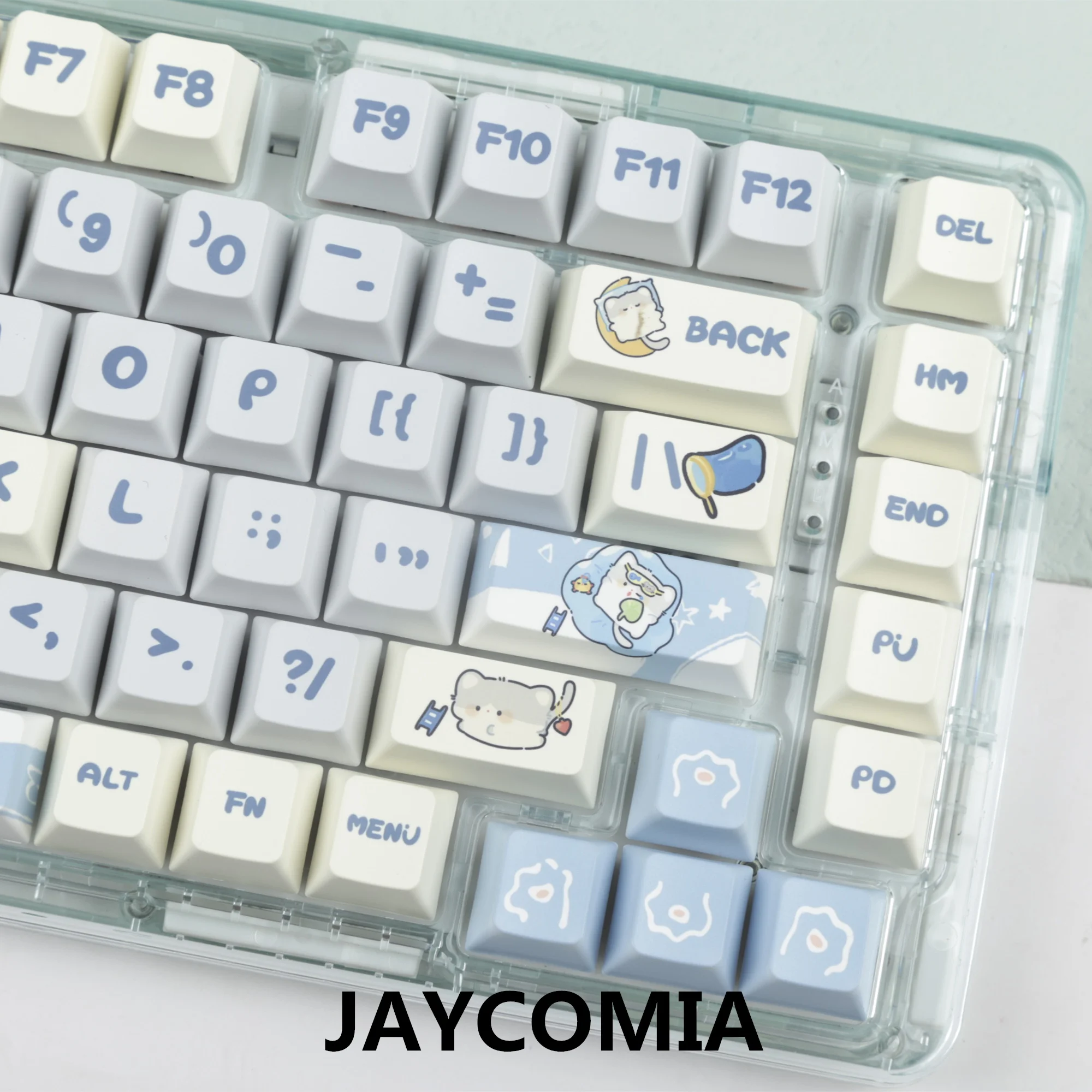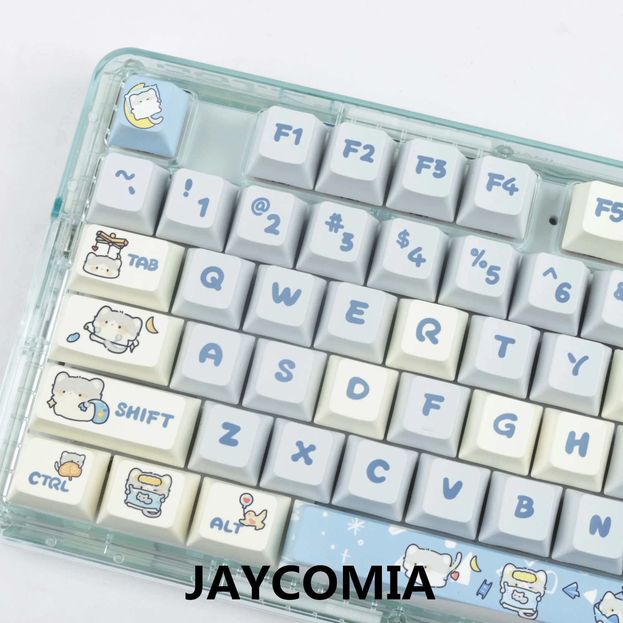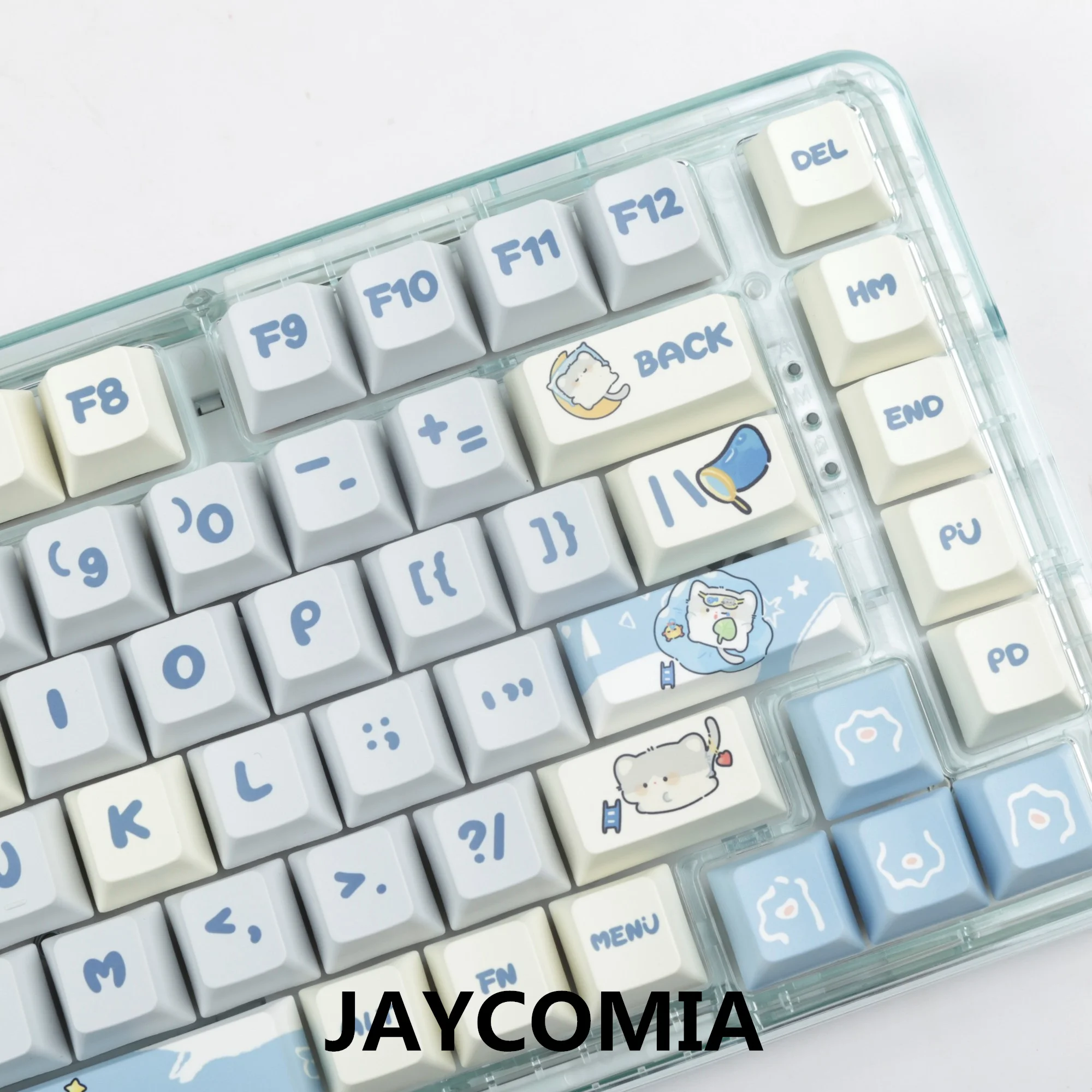 Comprar Juego de teclas PBT para teclado mecánico Cherry MX Switch, Set de 145 teclas, perfil Cherry DYE-SUB Daydream cat Fresh Blue White