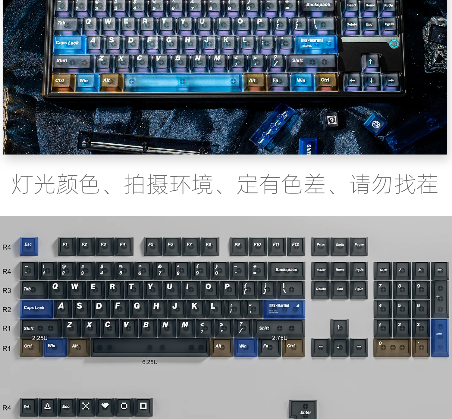 Provide keycaps in different sizes such as 61/64/68/84/87/96/98/100/104/108 to meet the needs of different users.