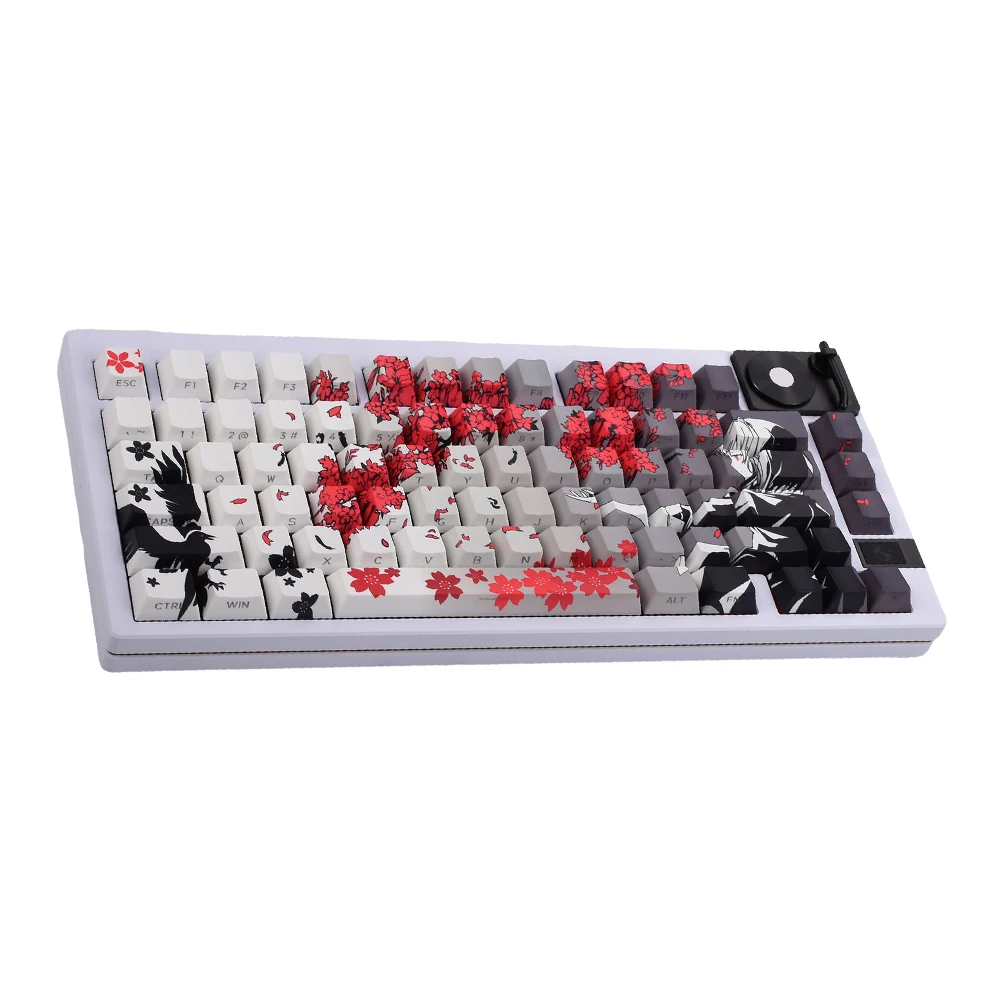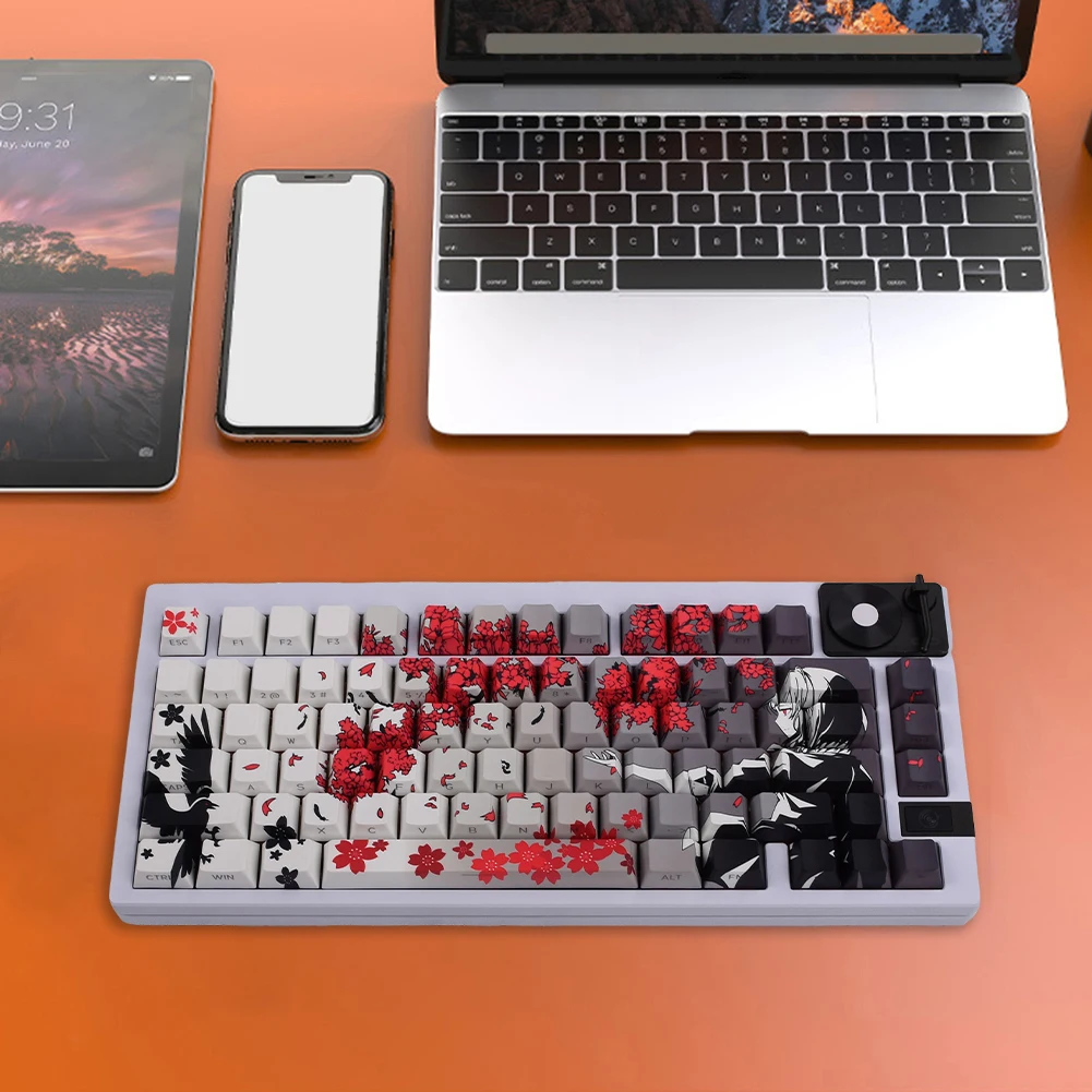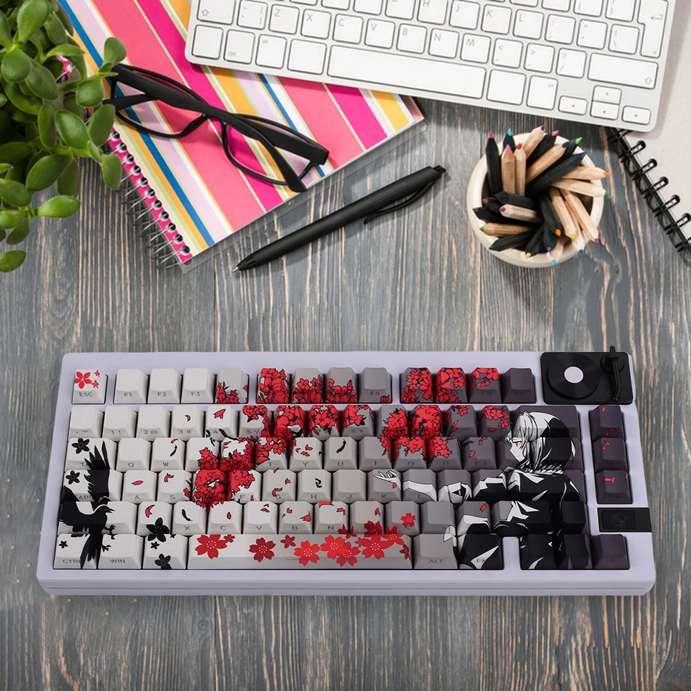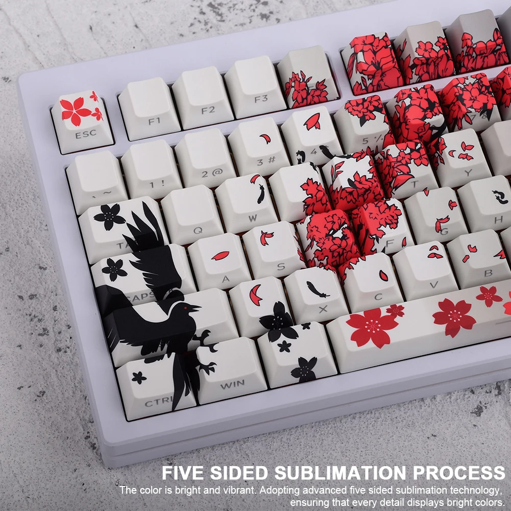 Juego de teclas 129 Key Raven Sakura, teclas de sublimación térmica, teclas PBT, tapas de teclado personalizadas, teclas personalizadas para teclados mecánicos 60/75/80/87/98/104/108