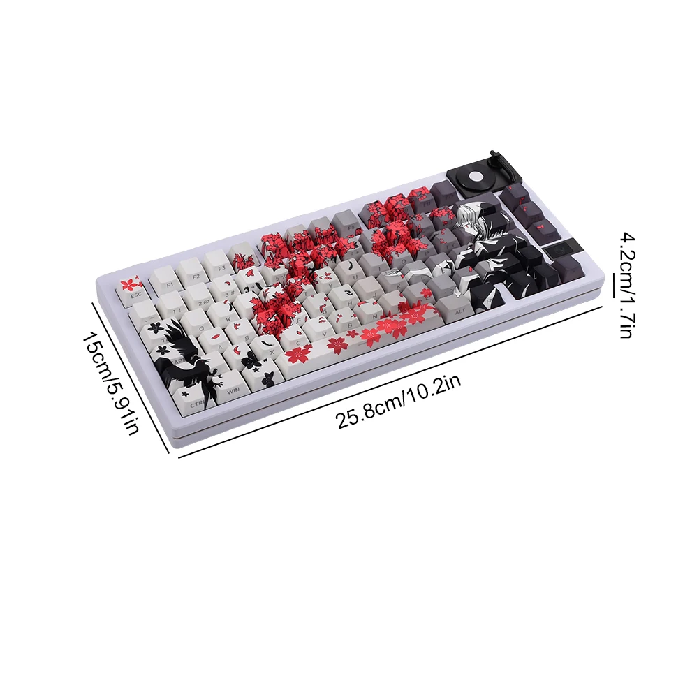 Característica:1. Vibrant Raven Sakura Keycaps Set:Con una avanzada tecnología de sublimación térmica de cinco lados, el juego de teclas Raven Sakura garantiza que cada detalle muestre colores vivos. El estricto control de calidad garantiza tonos naturales y uniformes para una experiencia visual mejorada.