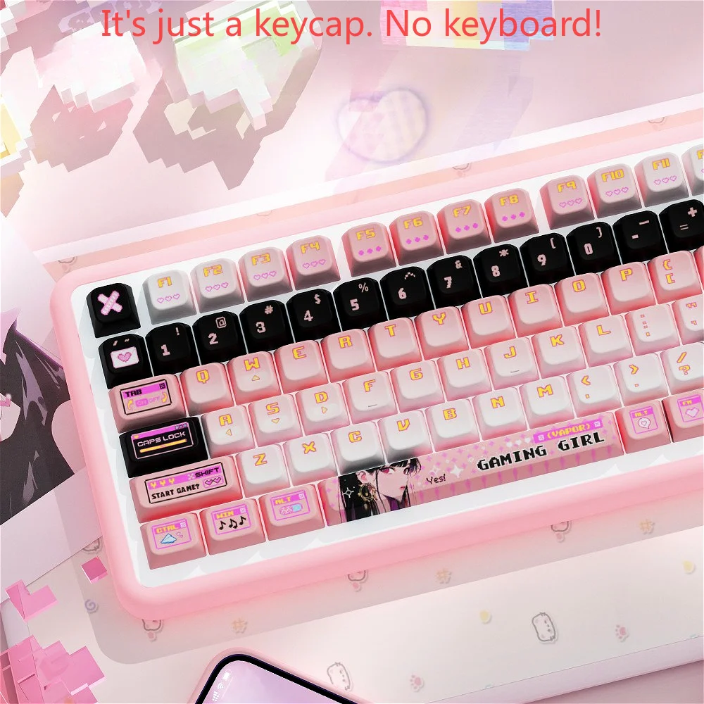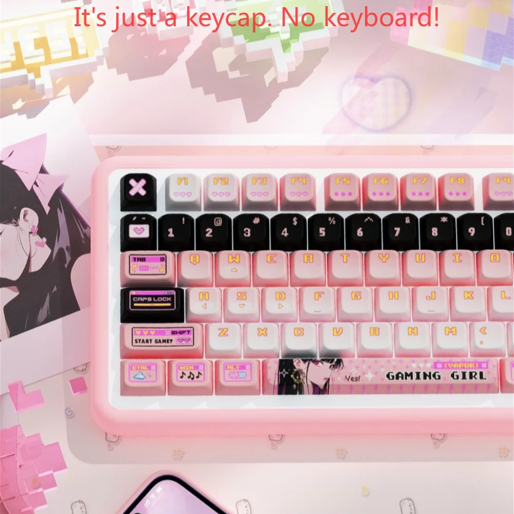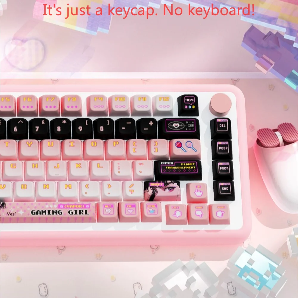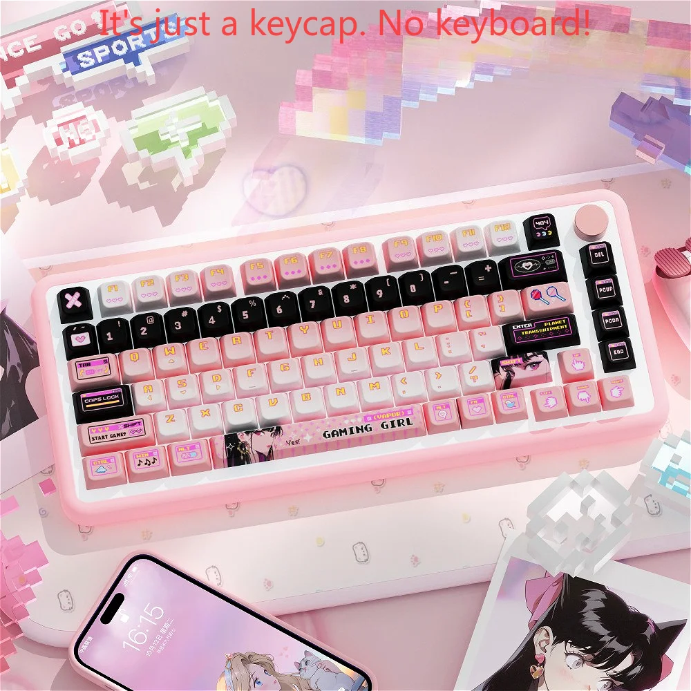 Comprar Juego de teclas personalizadas Tokyo Neon Black Pink MDA PBT 138 teclas de doncella para teclado mecánico para jugar 61/68/75/84/96/100
