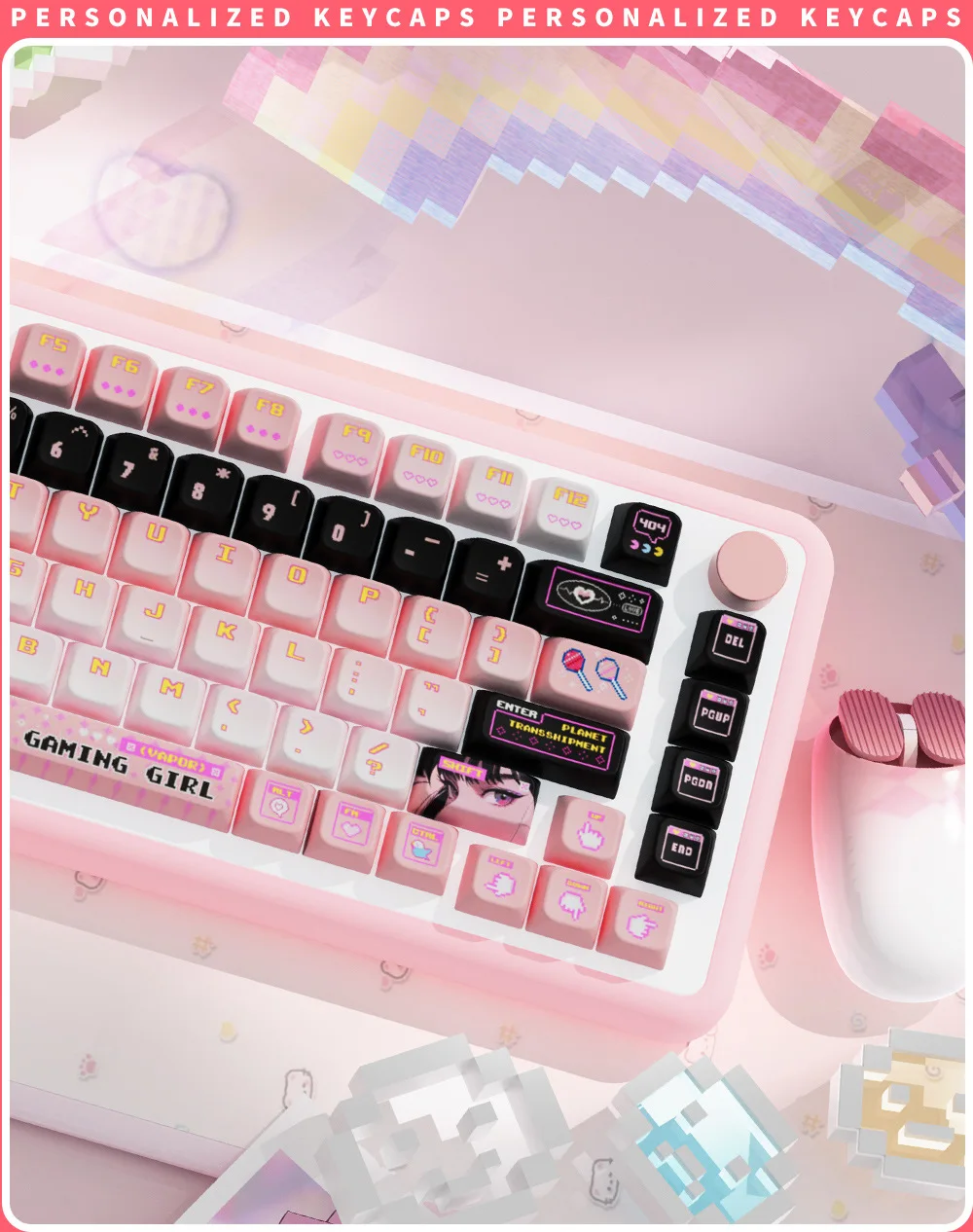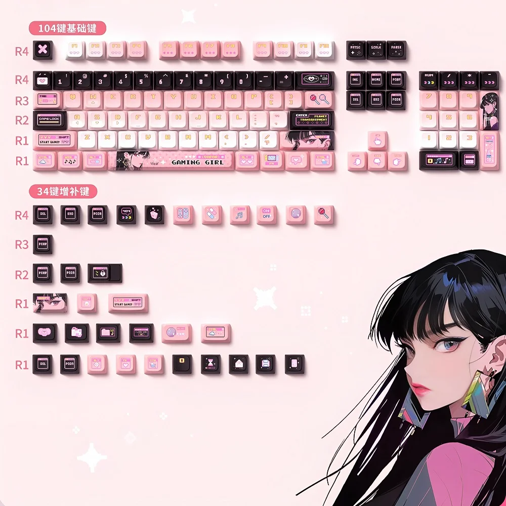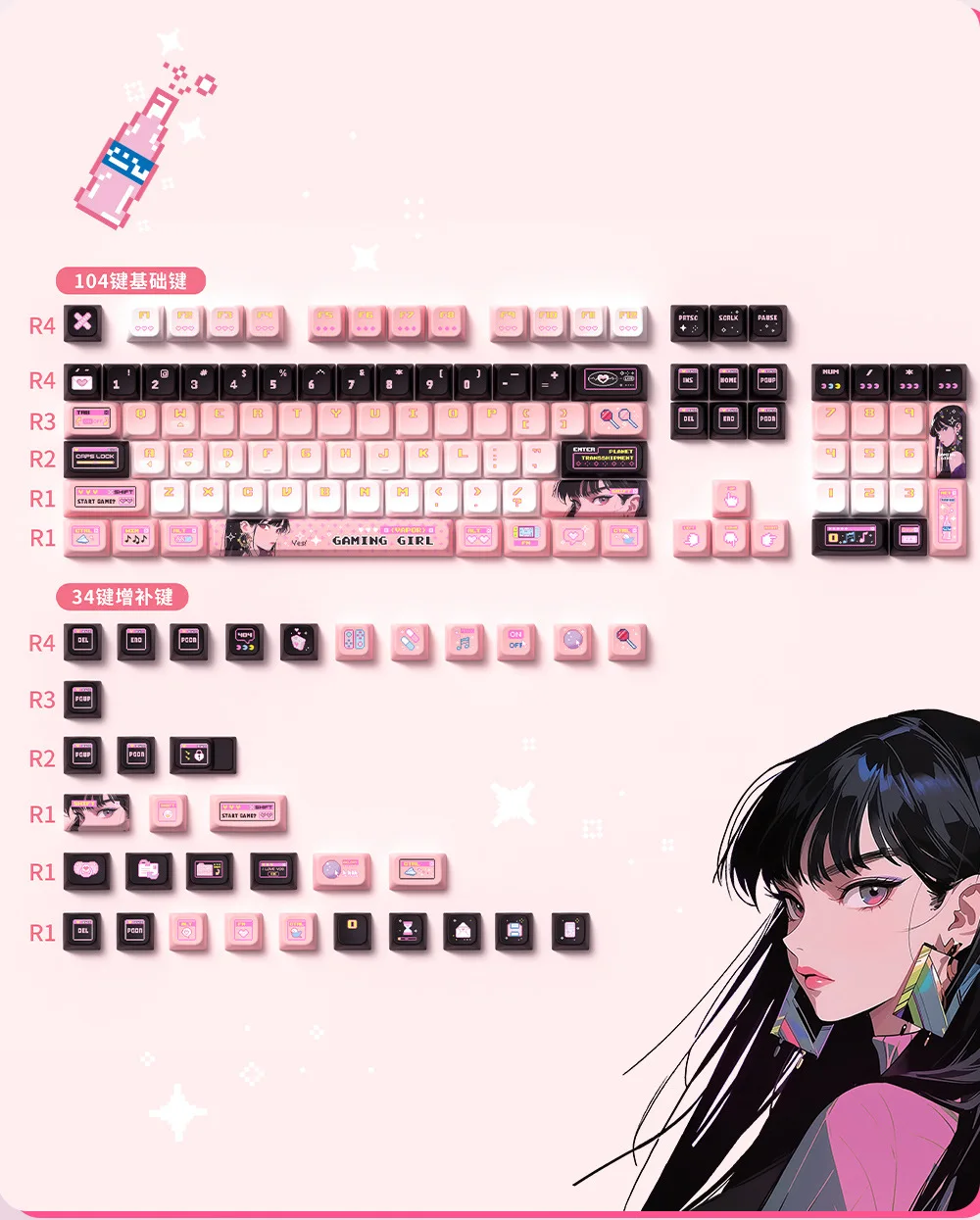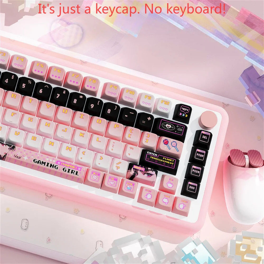 Comprar Juego de teclas personalizadas Tokyo Neon Black Pink MDA PBT 138 teclas de doncella para teclado mecánico para jugar 61/68/75/84/96/100
