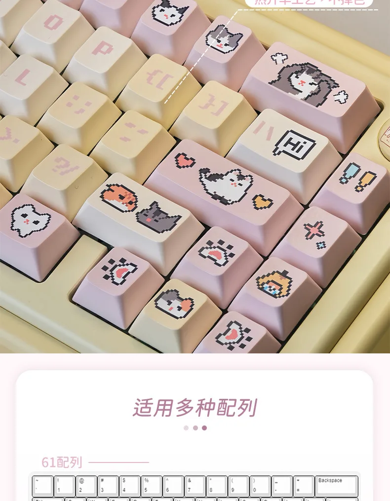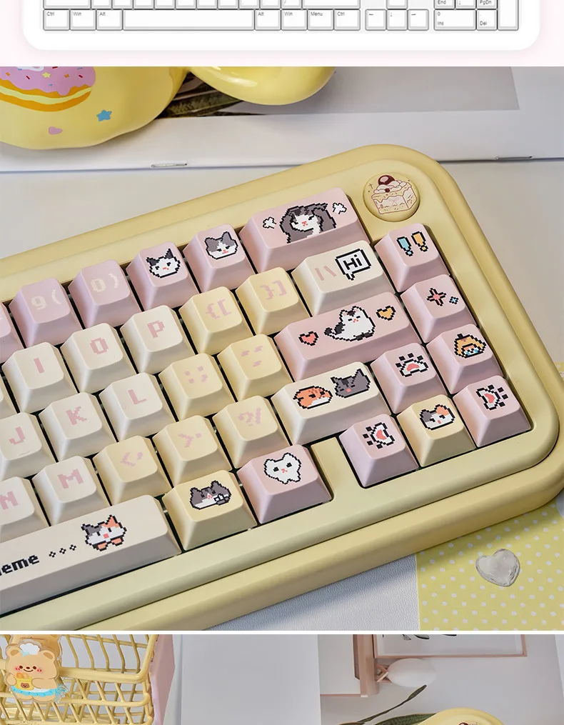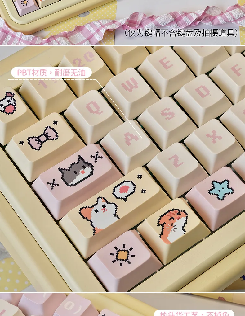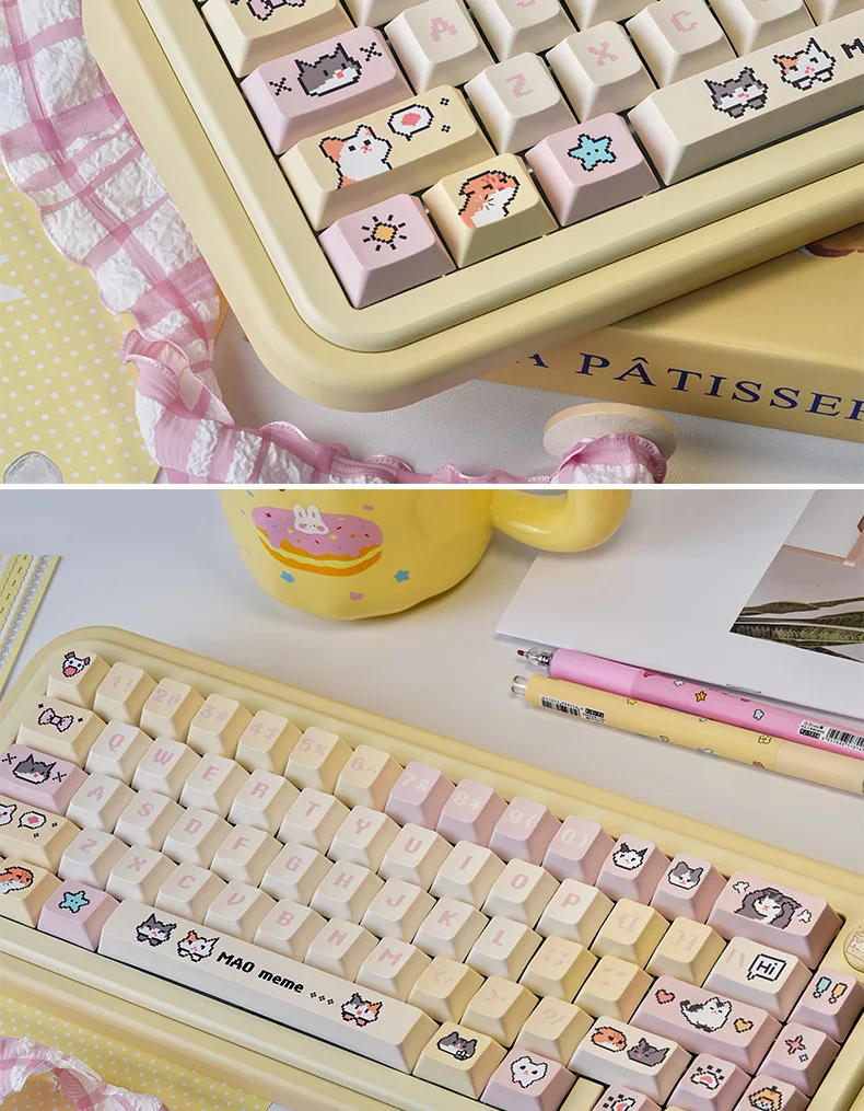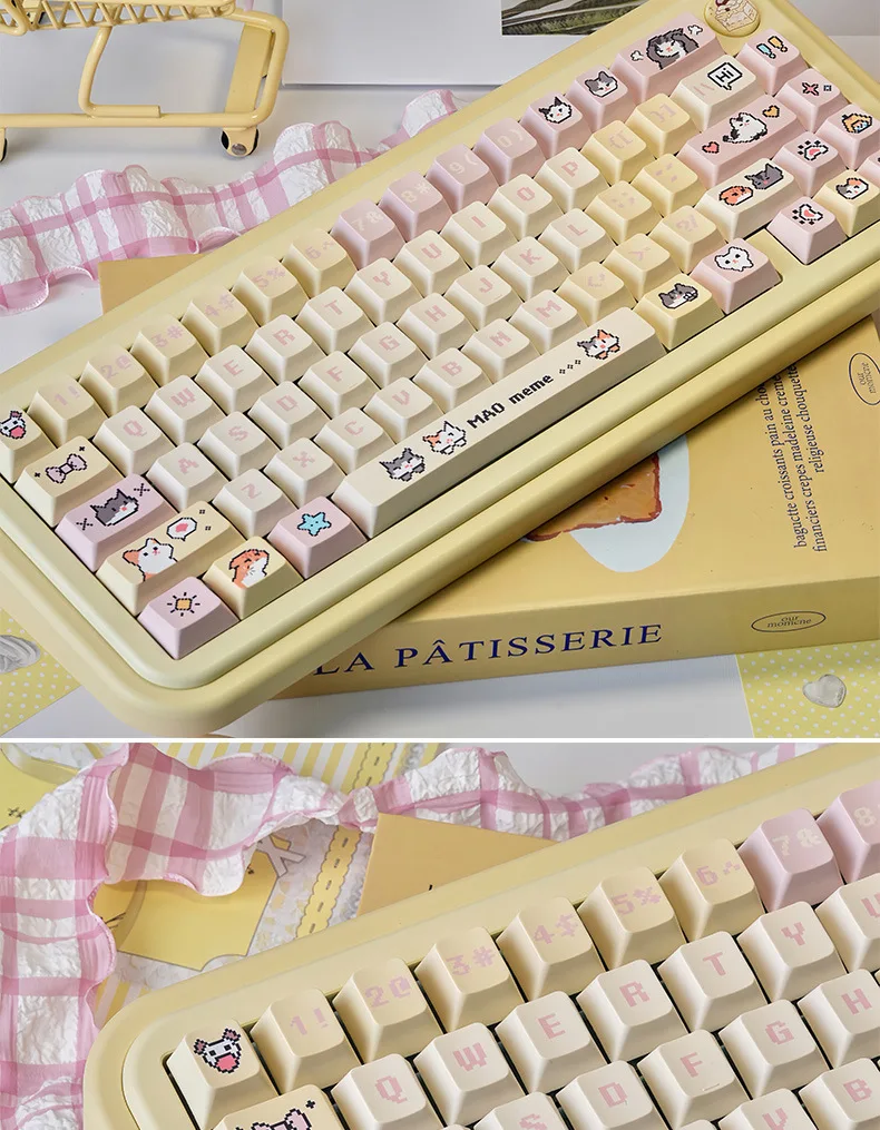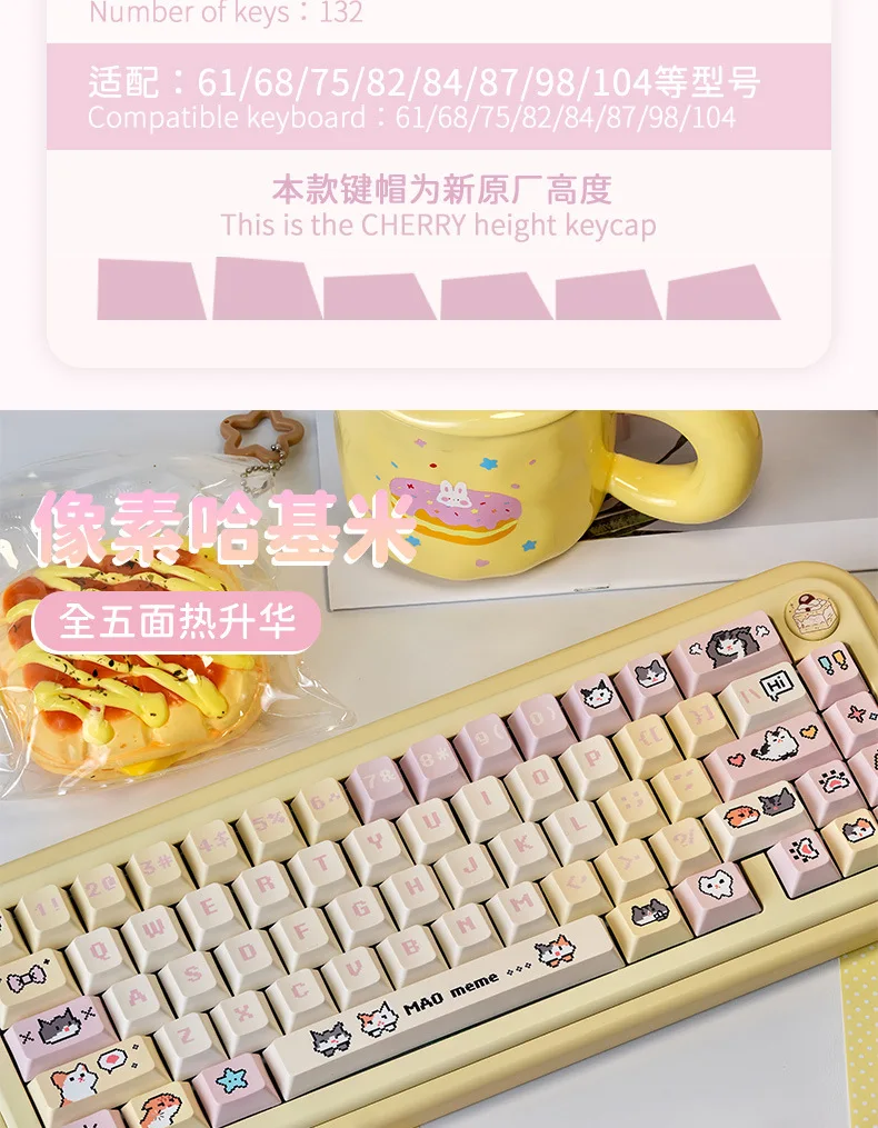 Comprar Juego de teclas Pixel Puppy PBT 132 Cherry Milk amarillo, bonitas teclas adecuadas para teclado mecánico MX Switch 61/68/75/84/96/104