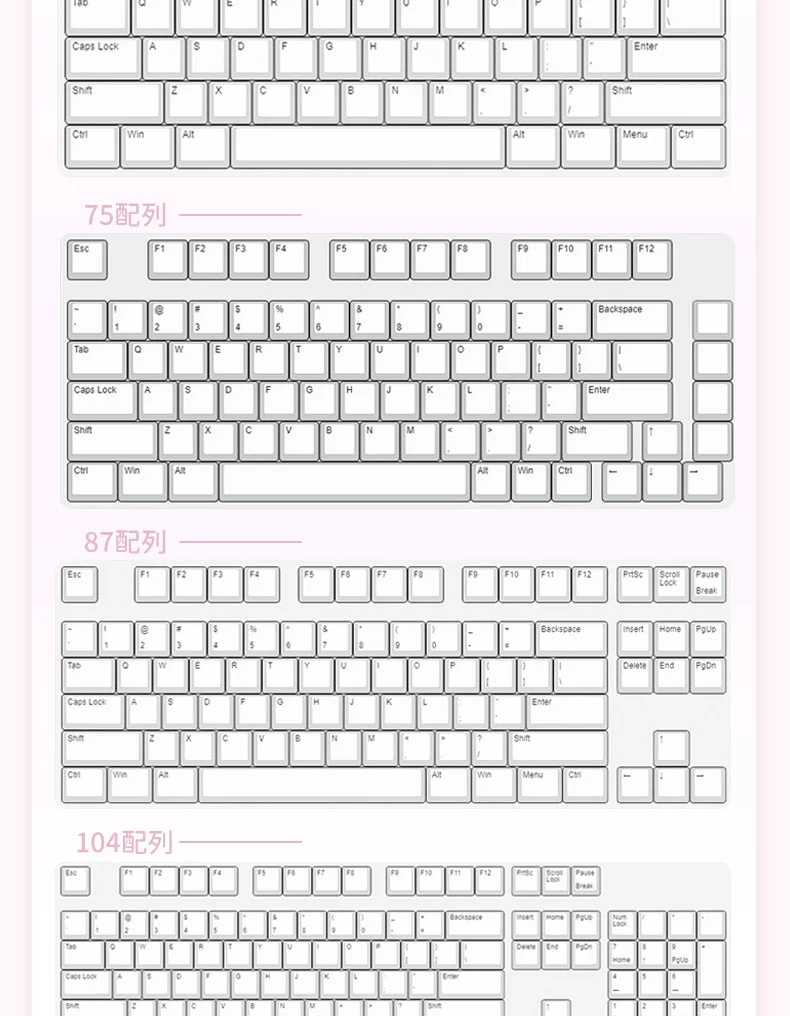 Se adapta a la mayoría de teclados mecánicos de 61/68/84/87/100/104/108 teclas,Adecuado para teclados mecánicos del 60%, 75%, 80%, 96%, 100% y otros.