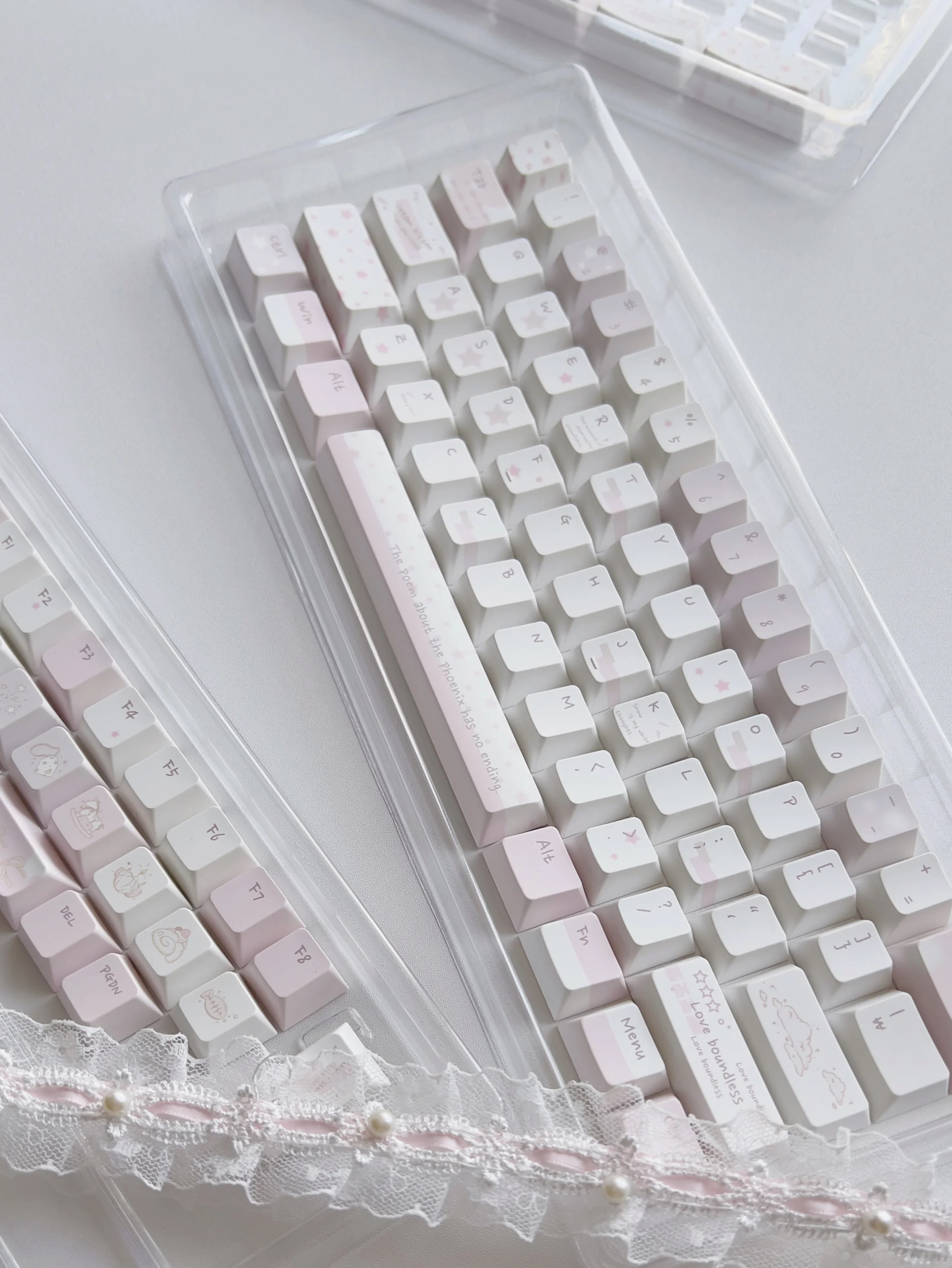 Juego de teclas temáticas lindas y suaves, sublimación Pbt, perfil de cereza, teclas originales personalizadas hechas a mano para teclado mecánico, regalo
